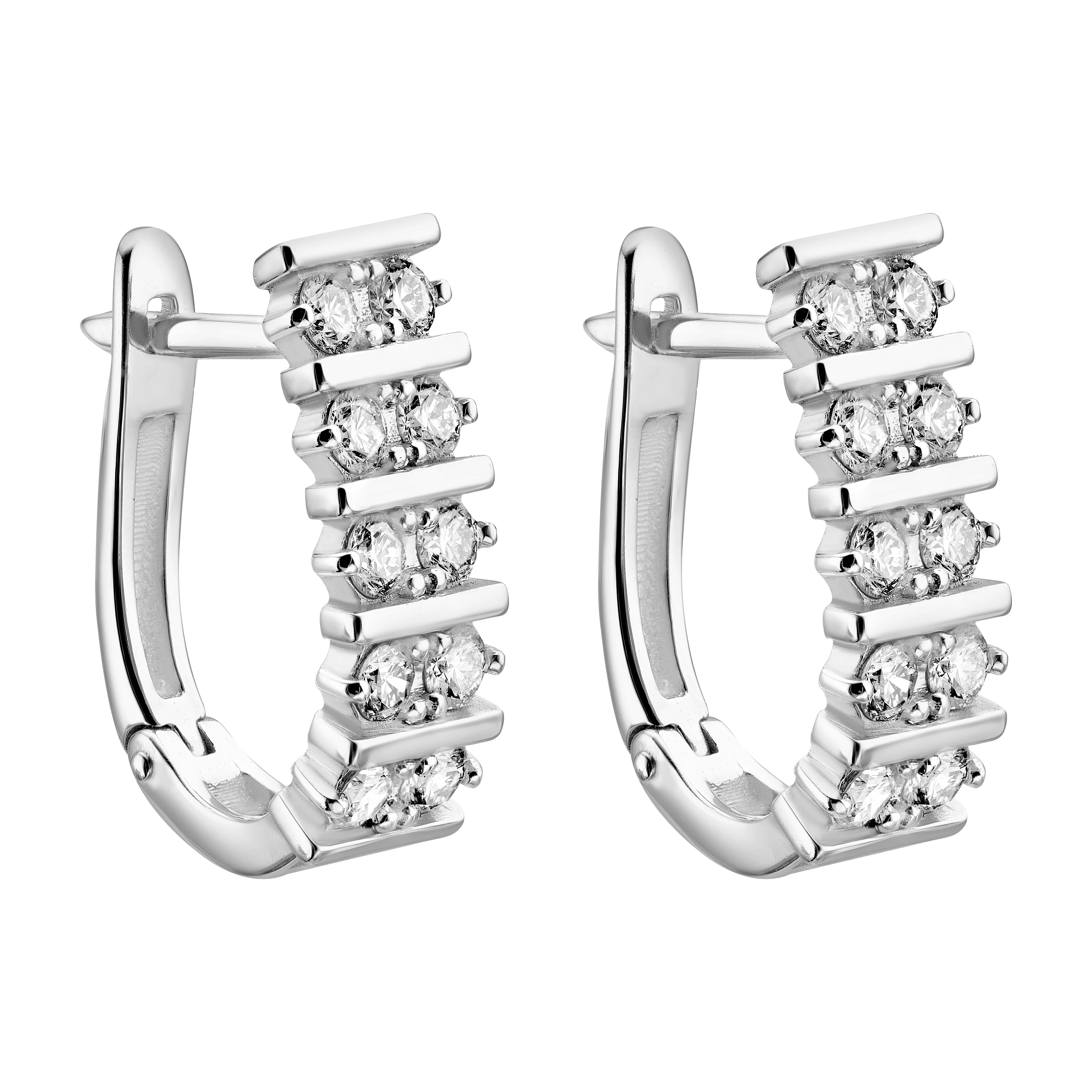 Стильные сережки из белого золота с дорожками с бриллиантов - 1875436