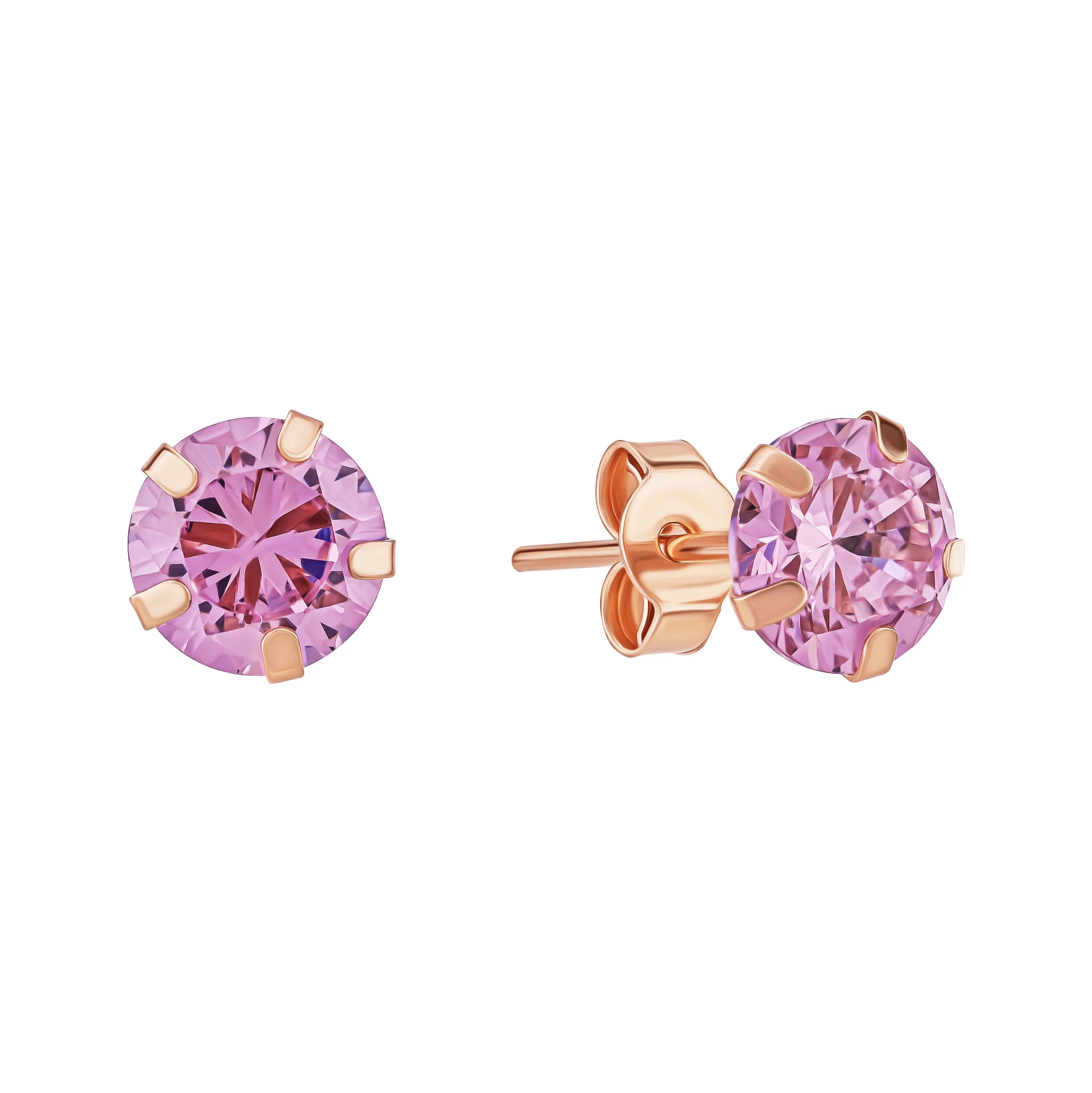 Элегантные сережки-гвоздики в красном золоте с турмалином и фианитами - 1939009