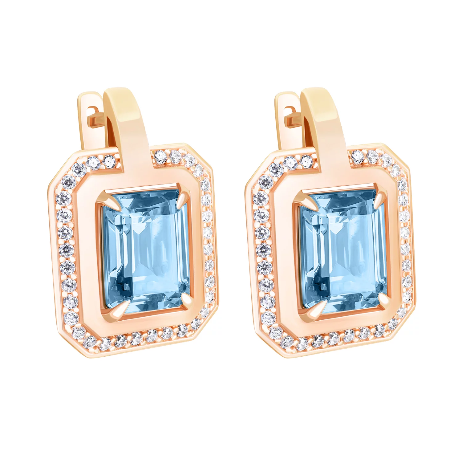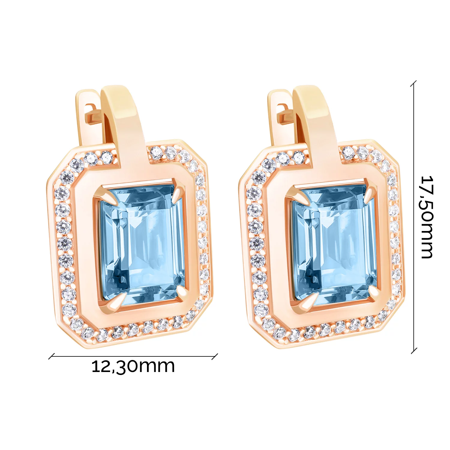 Сережки с подвесами из красного золота с топазом лондон и фианитами - 1919551