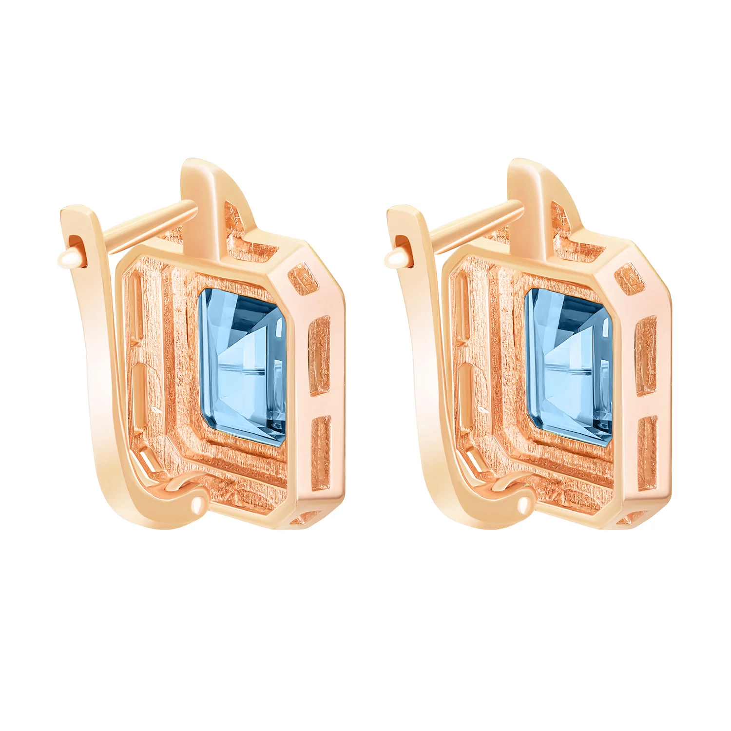 Стильные сережки из красного золота с фианитами и топазом лондон - 1875543