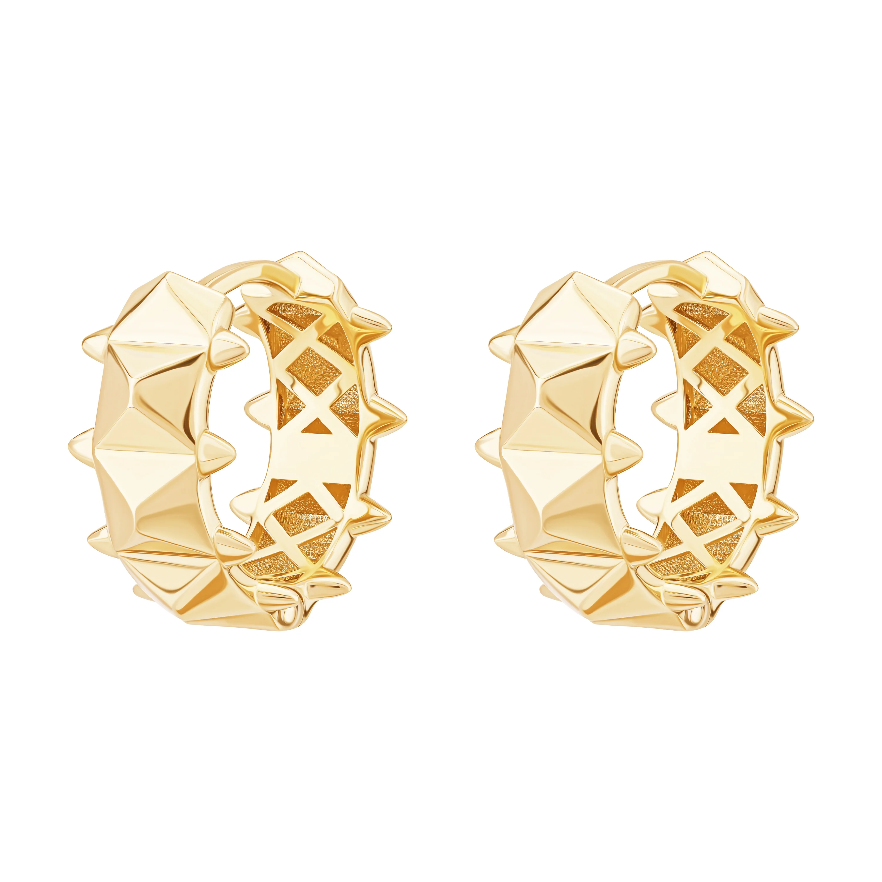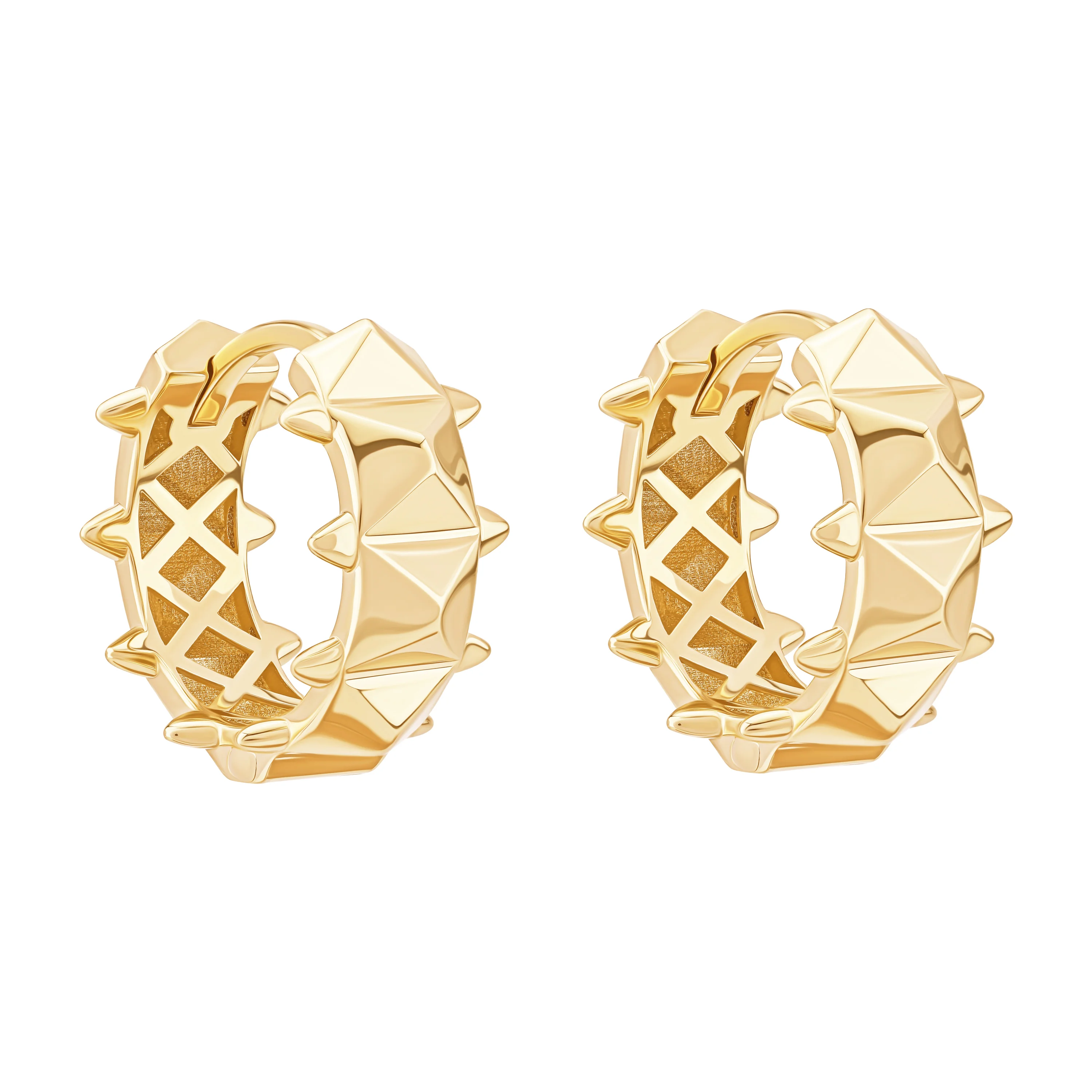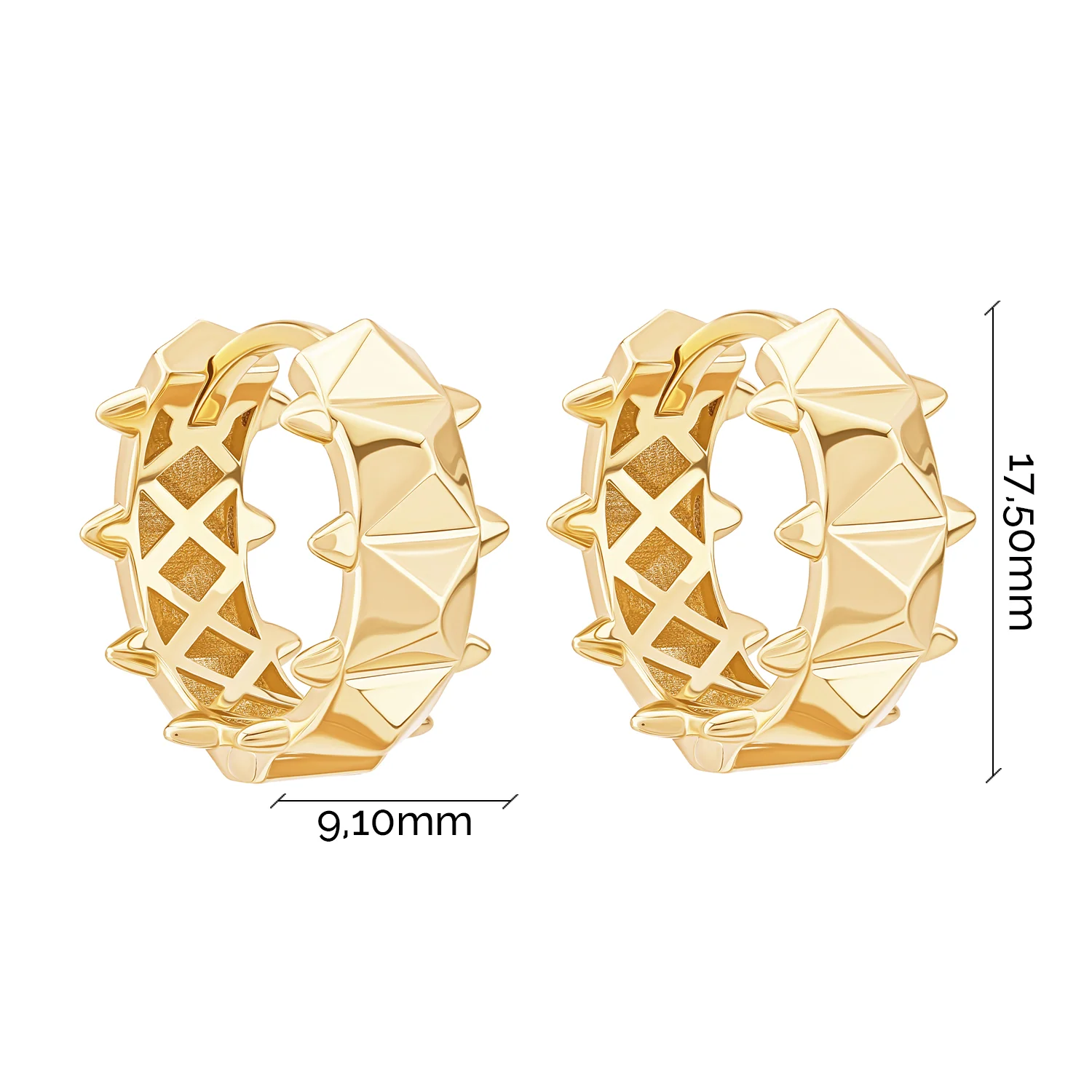 Сережки-кольца с подвесом из красного золота с рельефной текстурой - 1856422