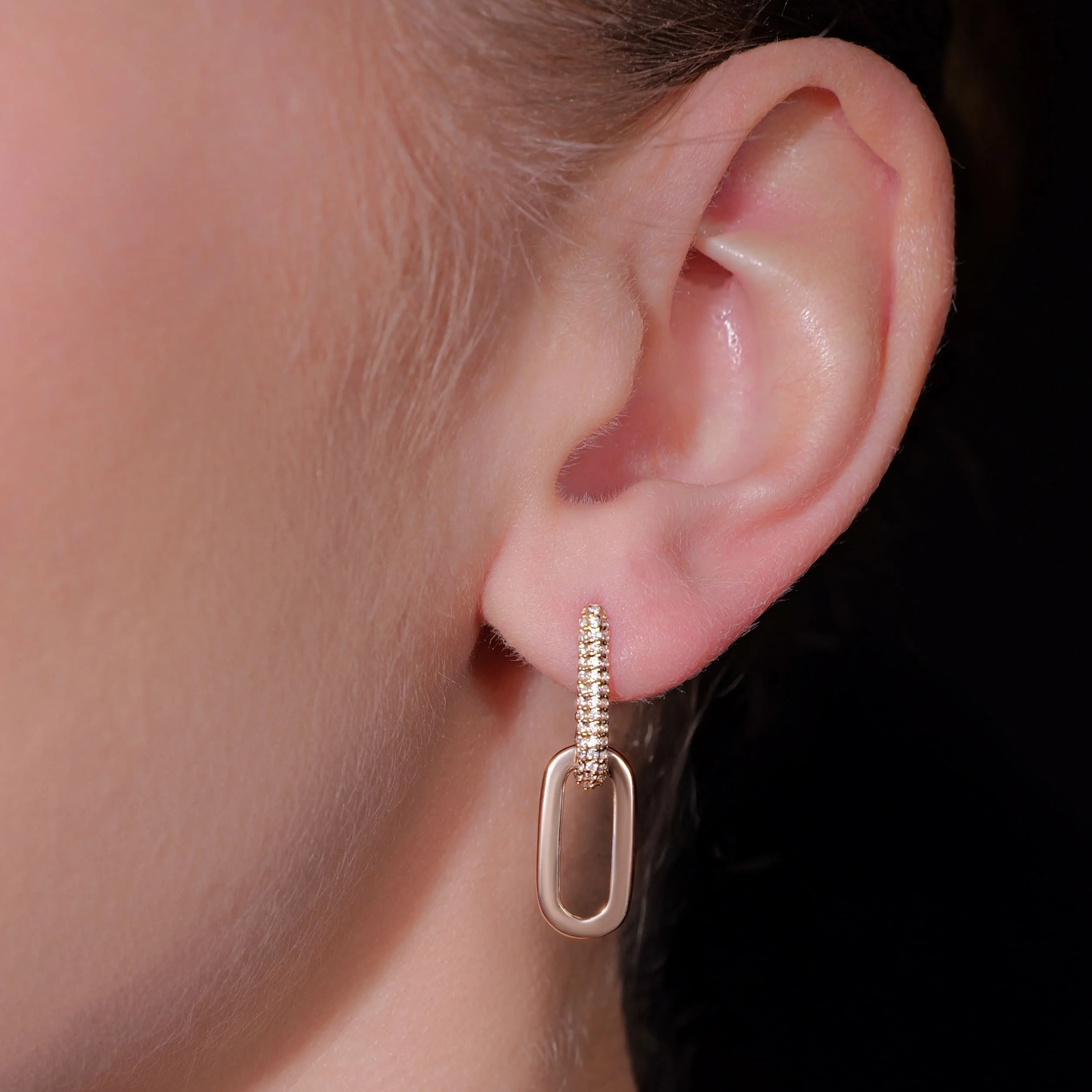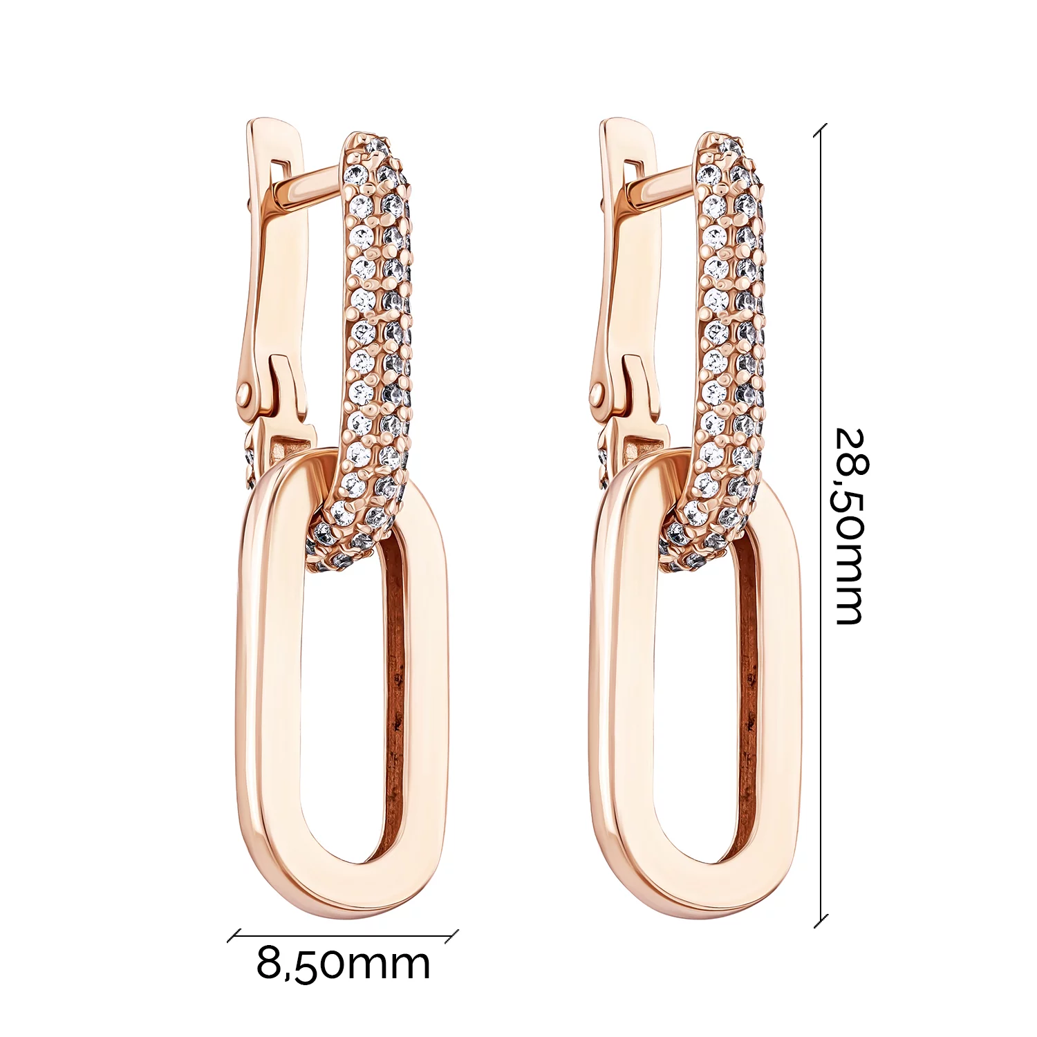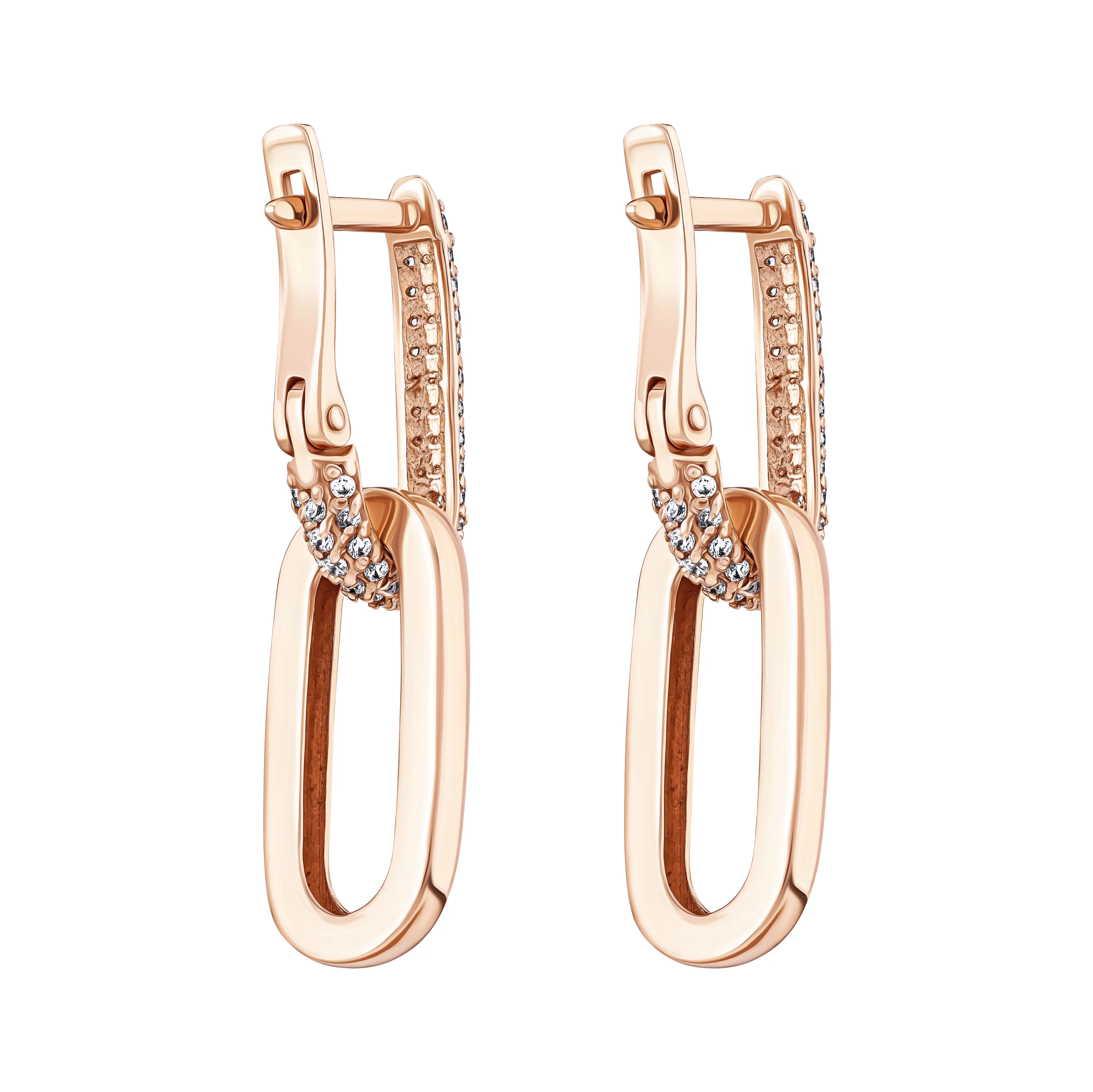Стильные сережки с подвесом из комбинированного золота с фианитами - 1877893