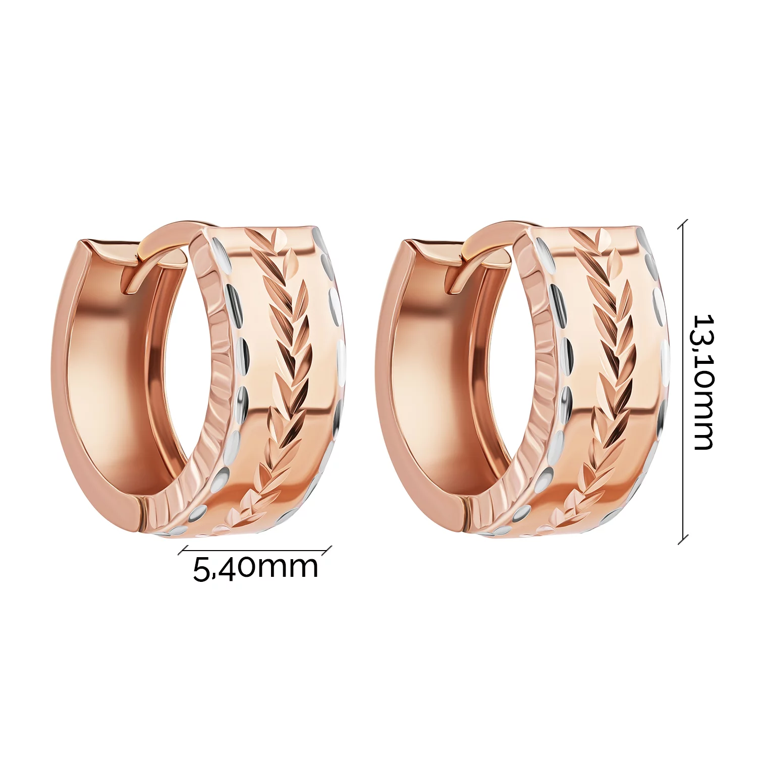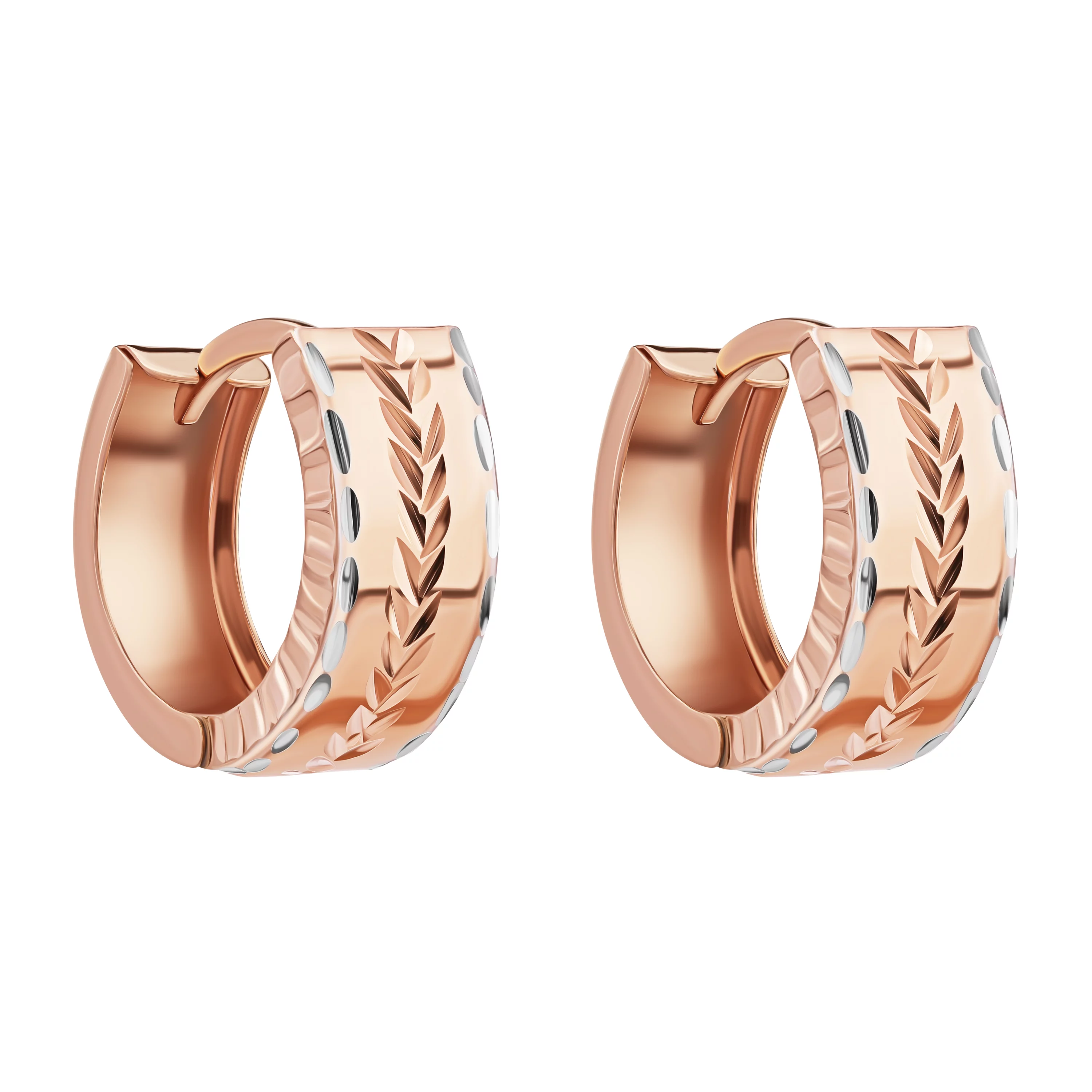 Сережки-кольца из комбинированого золота с алмазной гранью "Тринити" - 1350426