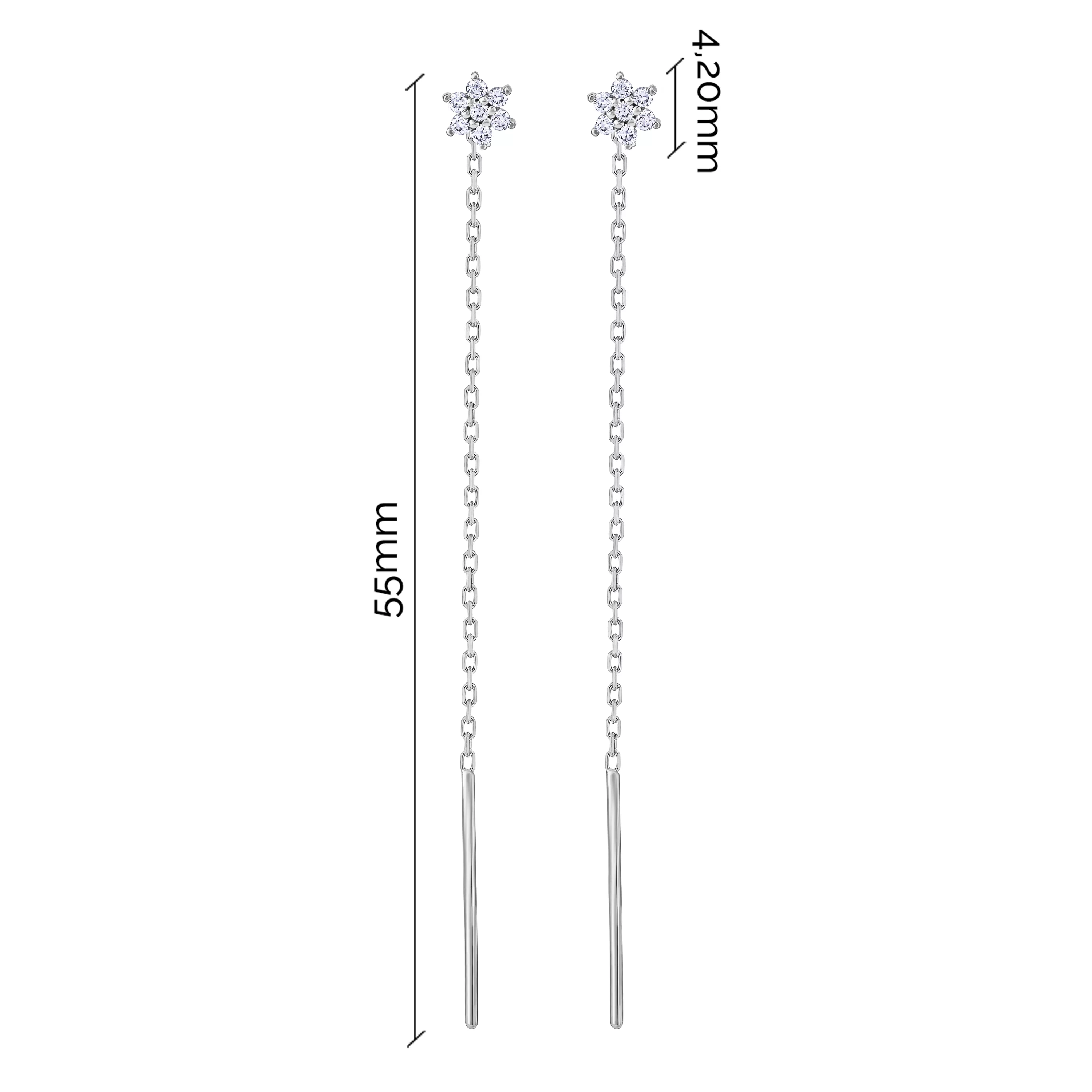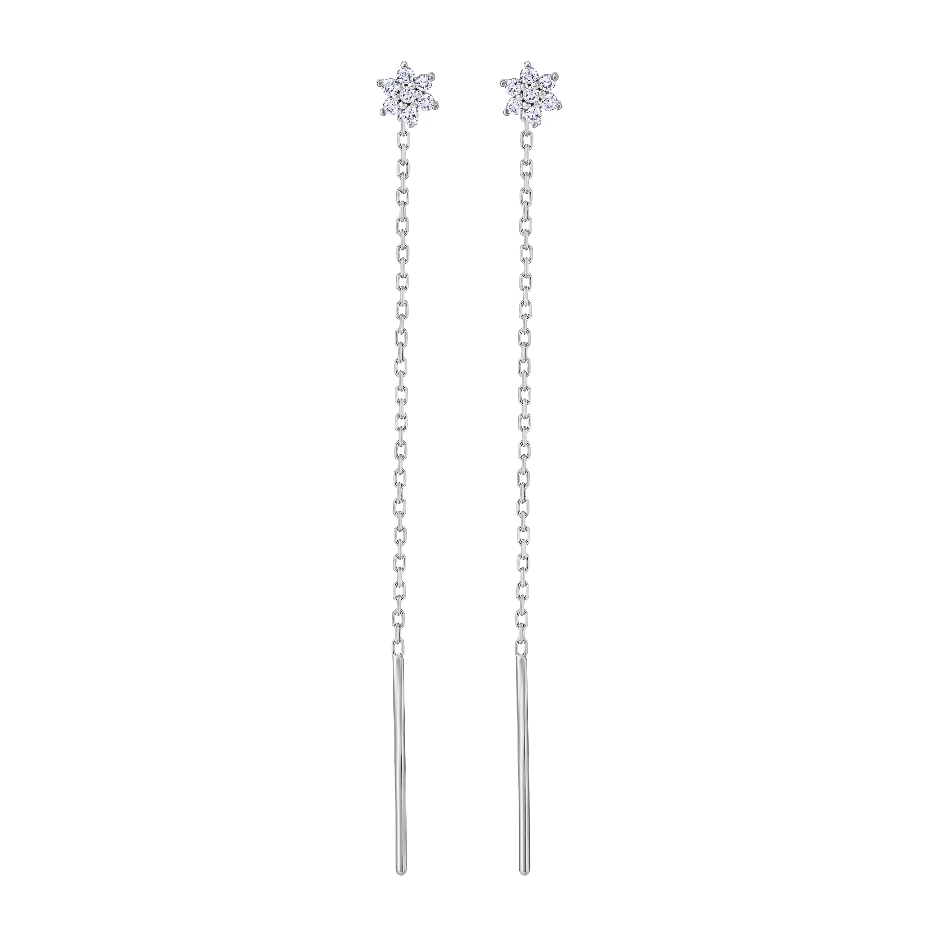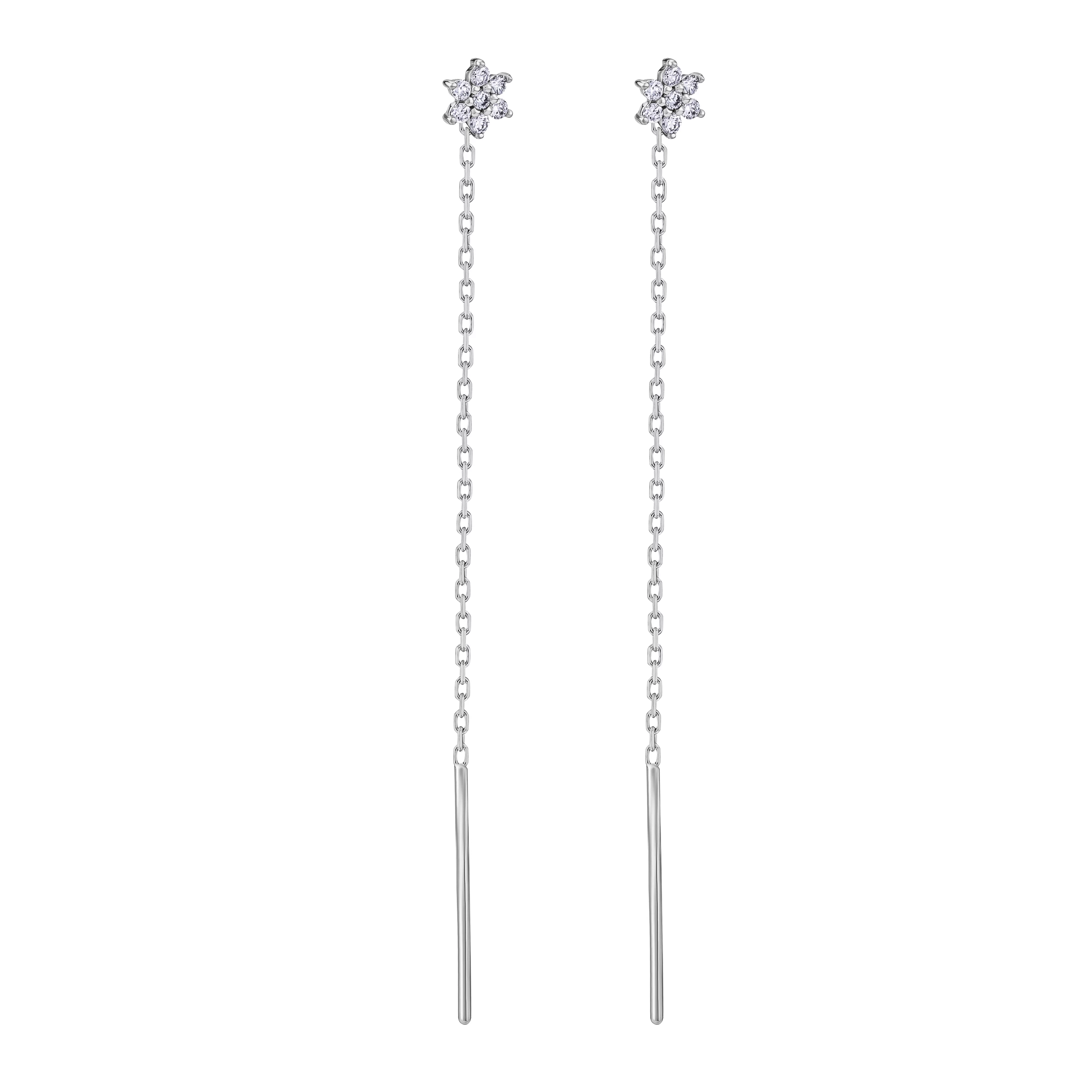 Элегантные сережки-протяжки "Цветок" в белом золоте с бриллиантами - 1859344
