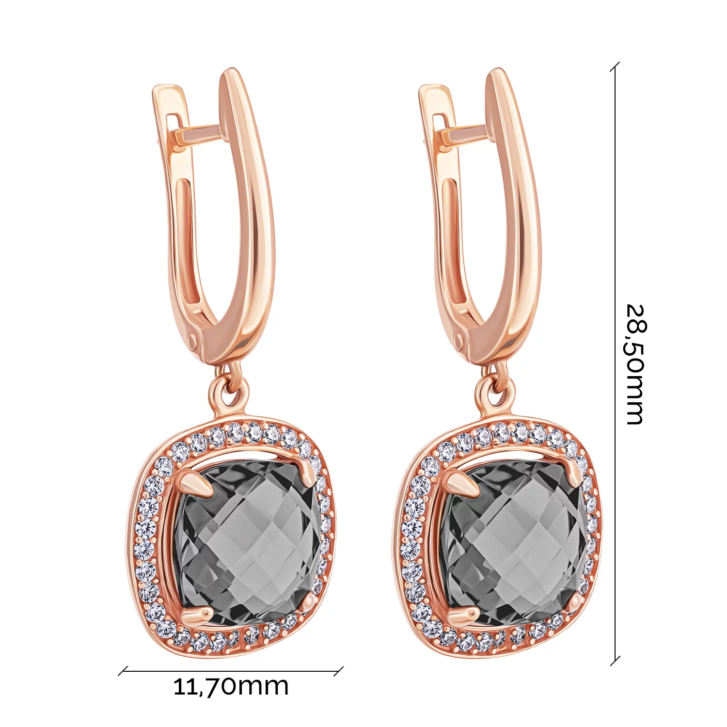 Сережки с подвесами из красного золота с топазом лондон и фианитами - 1919551