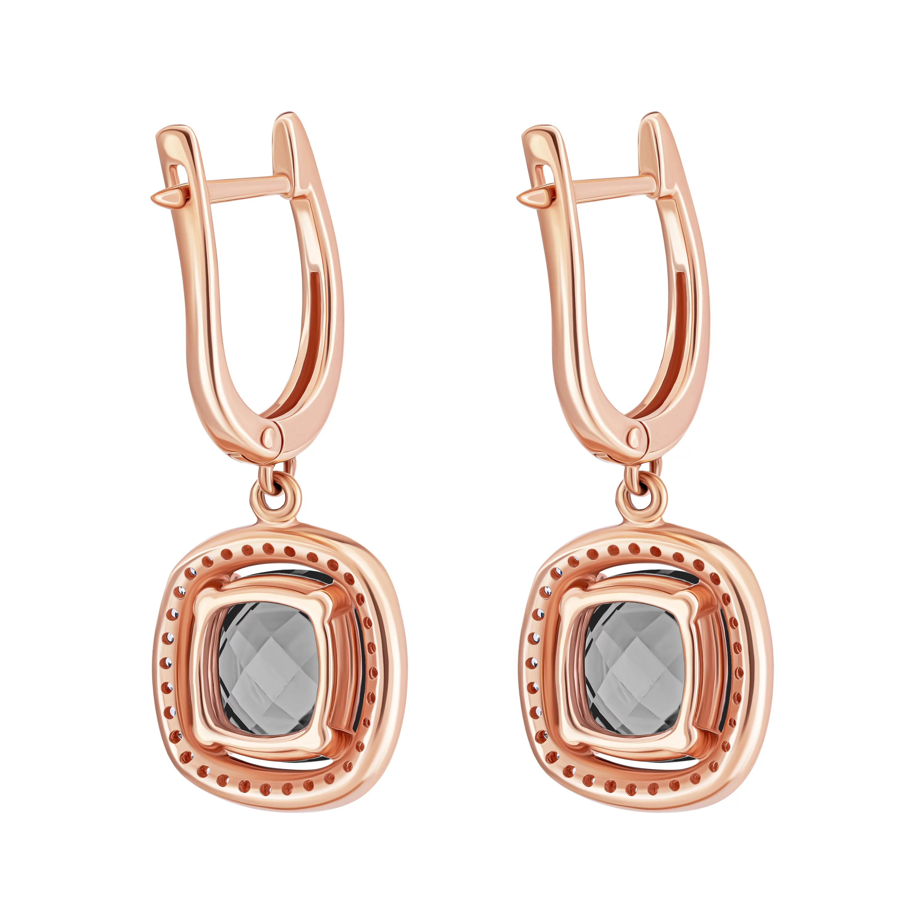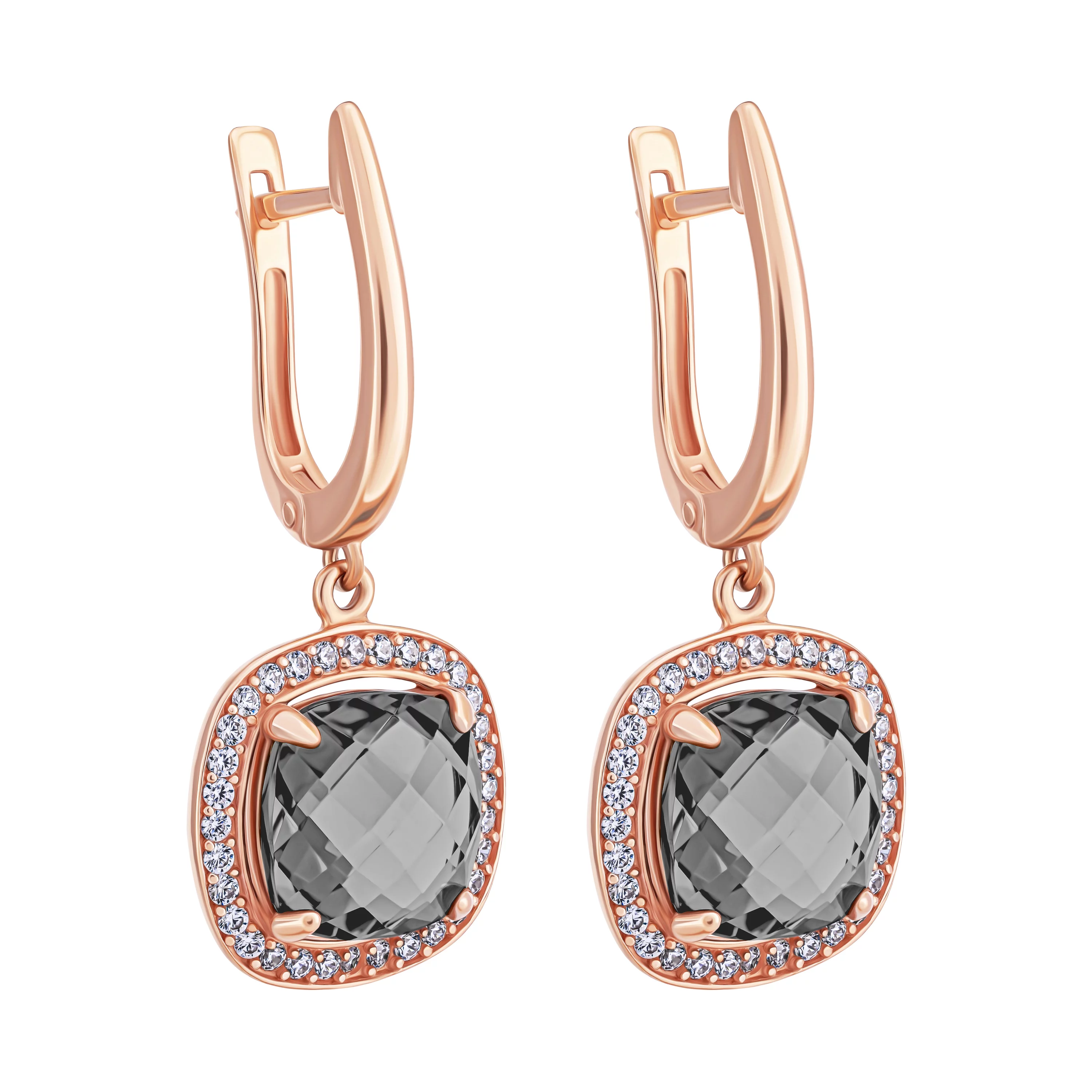 Стильные сережки из красного золота в геометрическом стиле с топазом и фианитами - 1925553