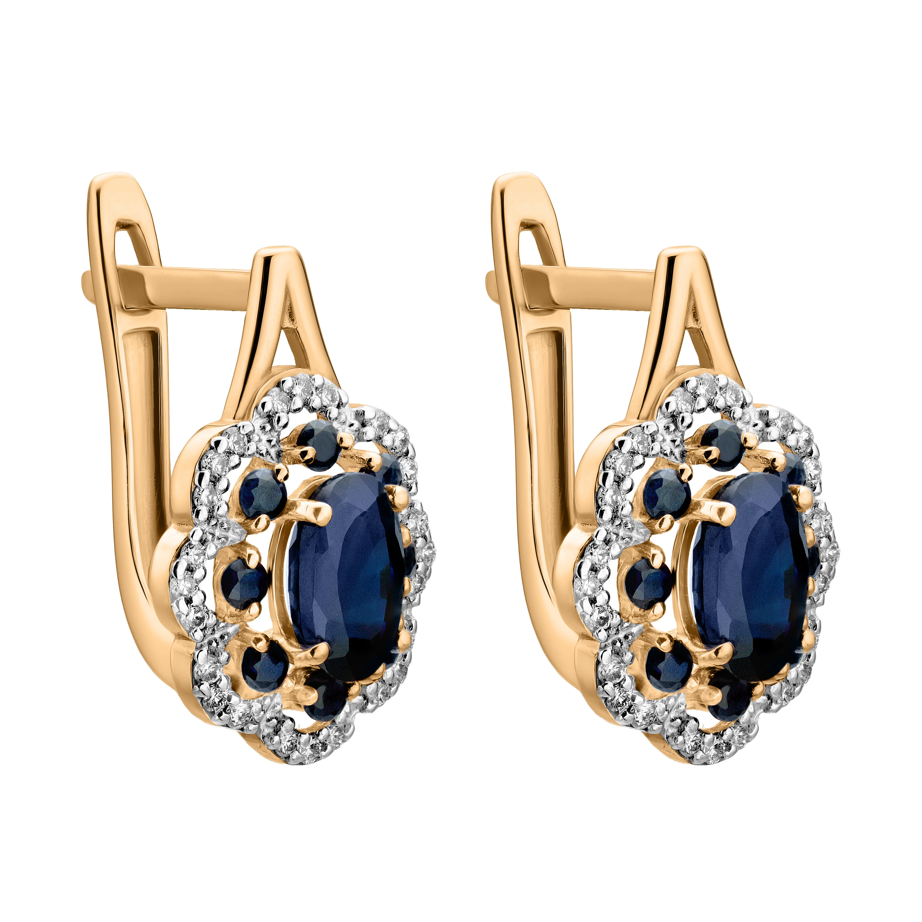 Сережки "Цветок" в красном золоте с бриллиантами и сапфиром - 1871707