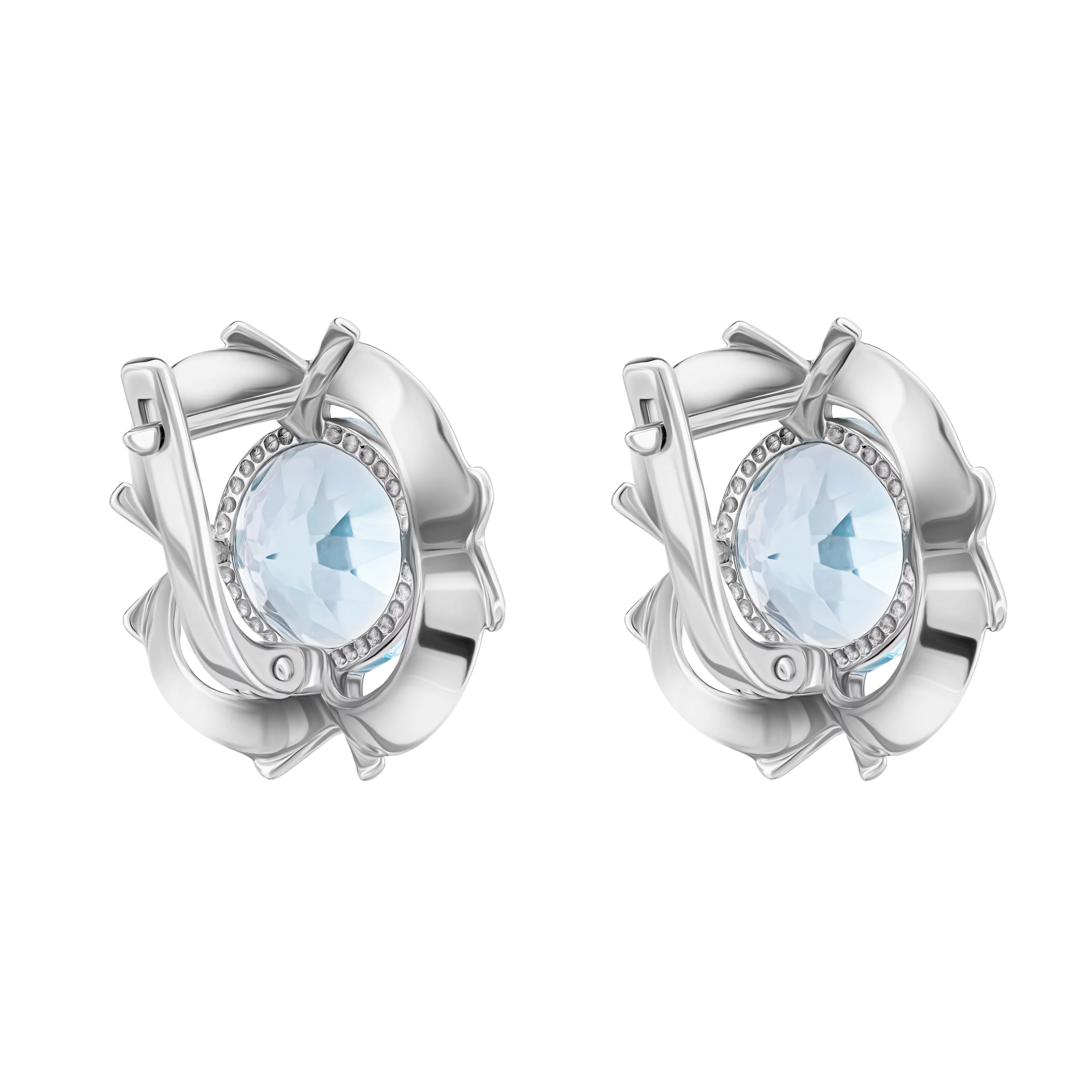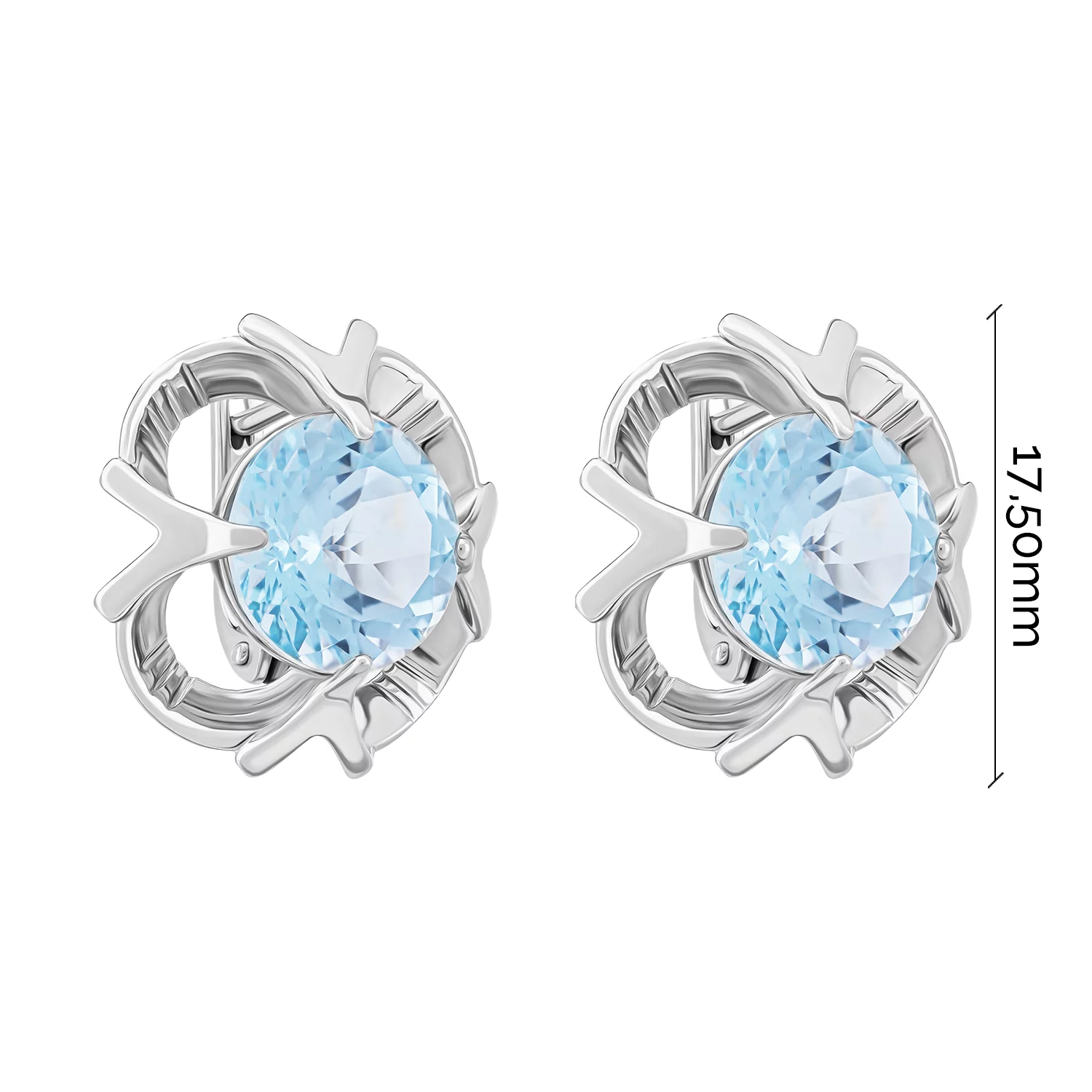 Сережки-гвоздики с топазом лондон и фианитами из красного золота - 1525469