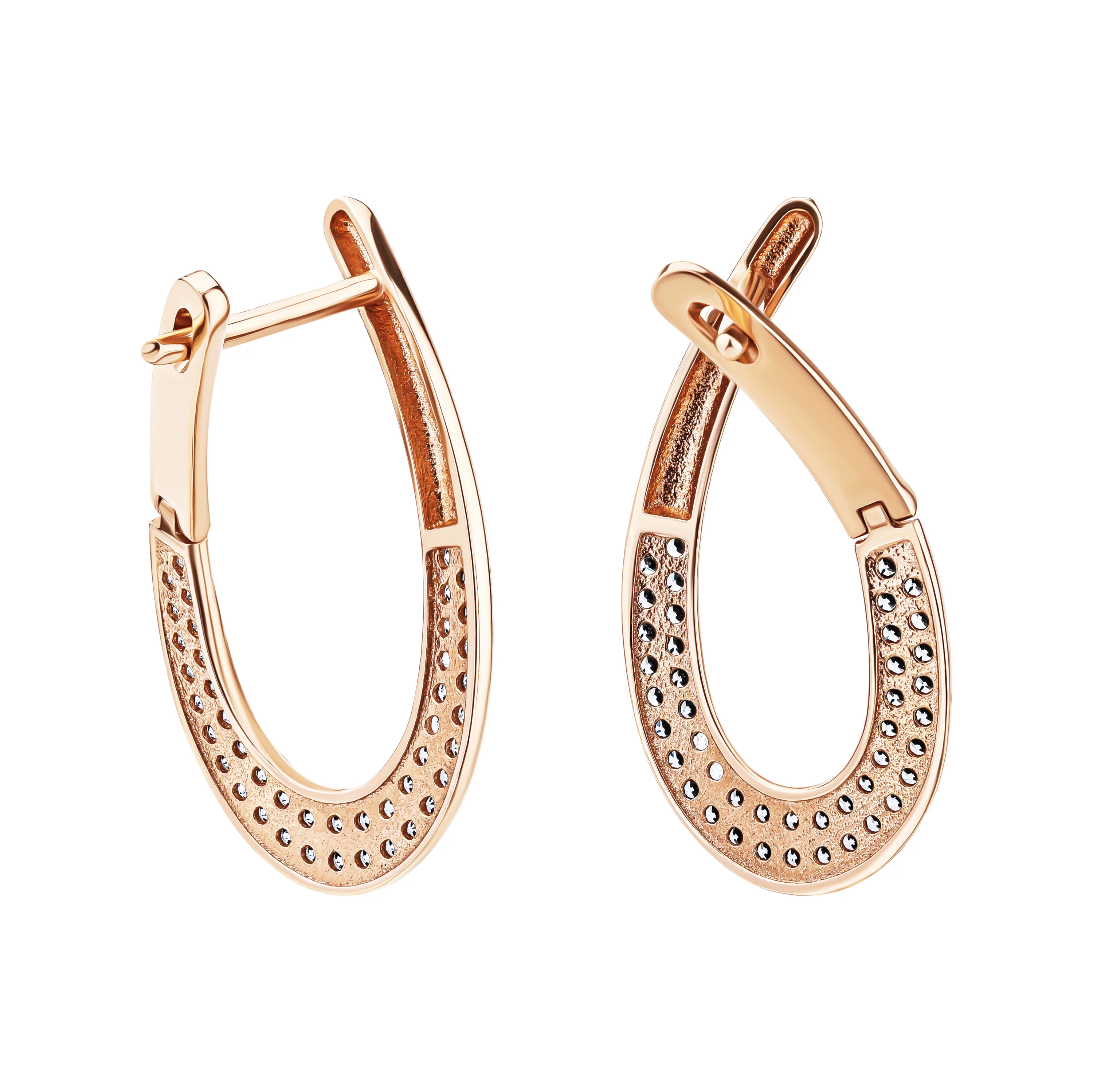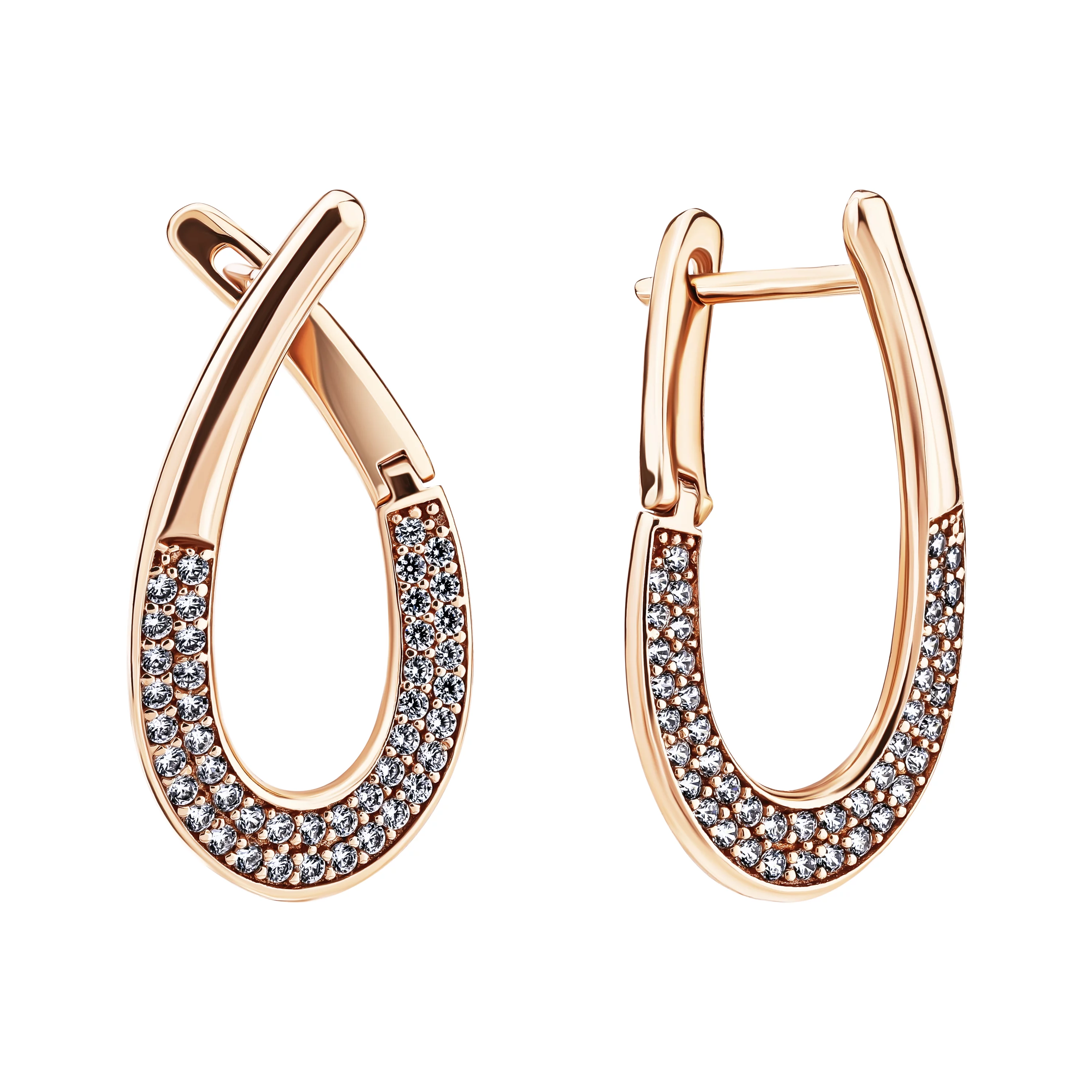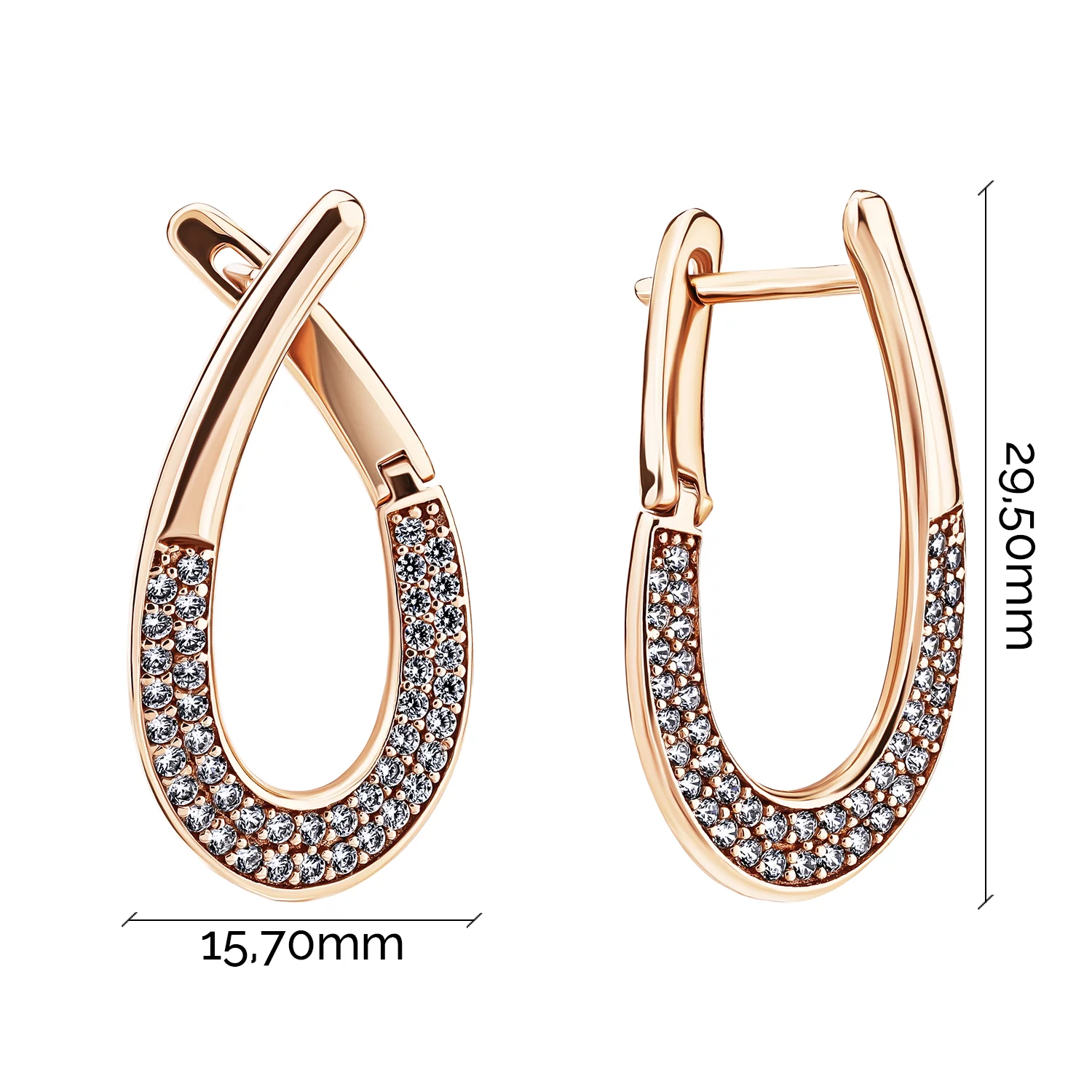 Сережки-гвоздики с топазом лондон и фианитами из красного золота - 1525469