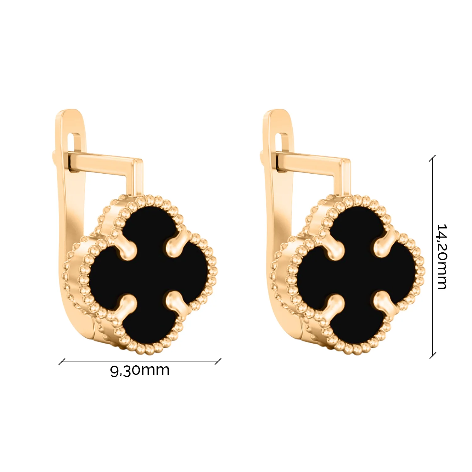 Серьги, которые уверенно становятся хитом продаж. Золотая основа окутывает оникс в цветочный кокон – так называемый “Клевер”. Безупречная градация света, цвета и фактуры – устоять перед таким ювелирным искушением невозможно.