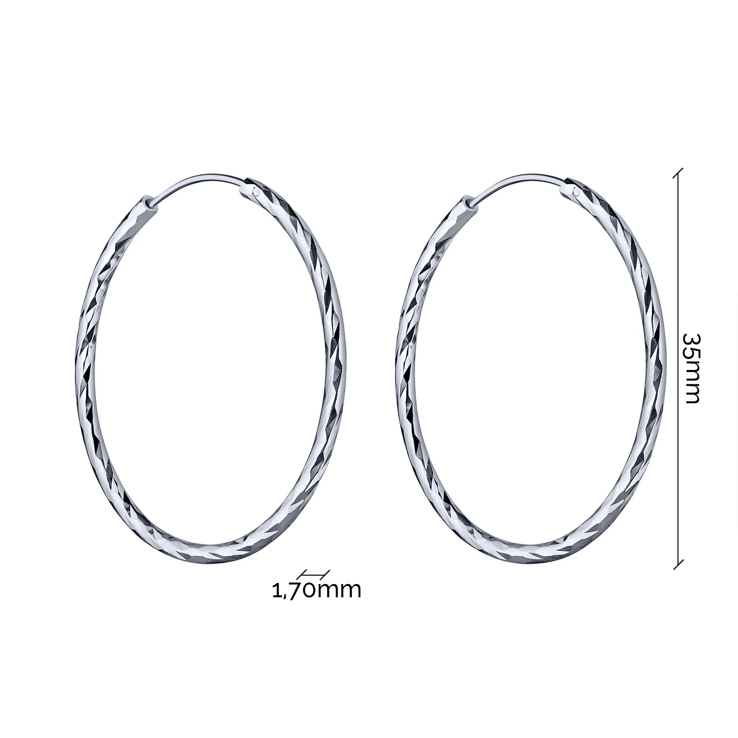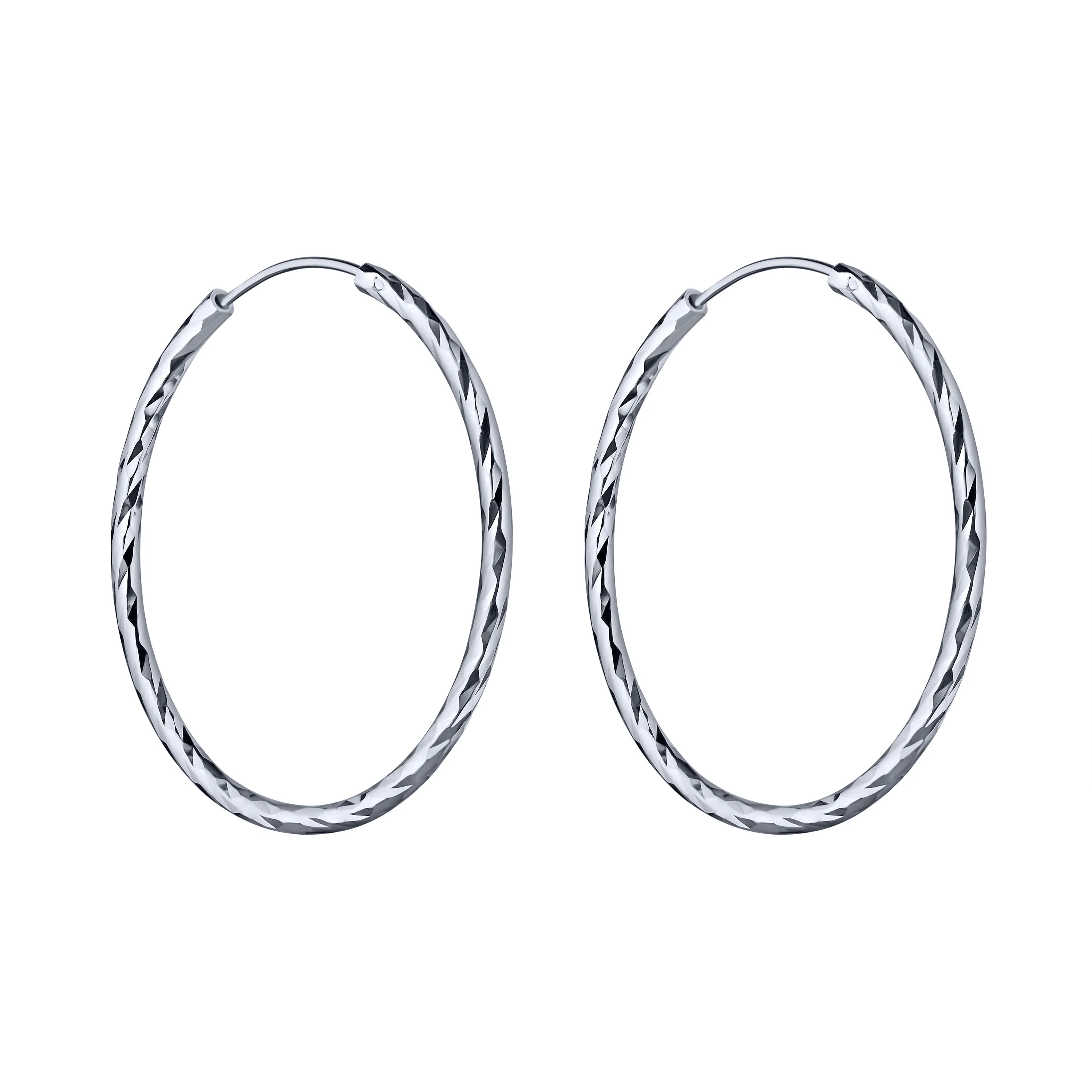 Серьги-кольца в серебре, в которых хочется жить, творить, мечтать и просто радоваться жизни. Женщины, имея такое украшение, не могут унывать: они лучезарны, как бриллиант. И хоть наши серьги в классическом стиле и без камней, их невероятно изысканная фактура определяет всю ценность и уникальность. Украшение легкое по весу, в меру объемное, элегантно смотрится с разными стилями одежды.