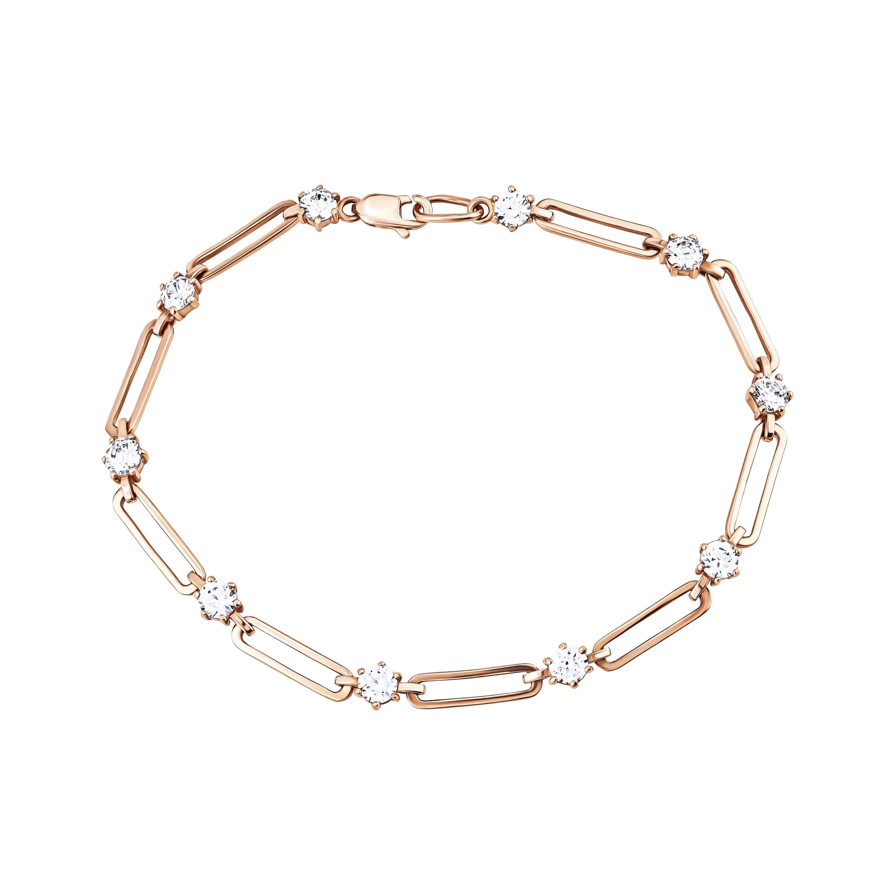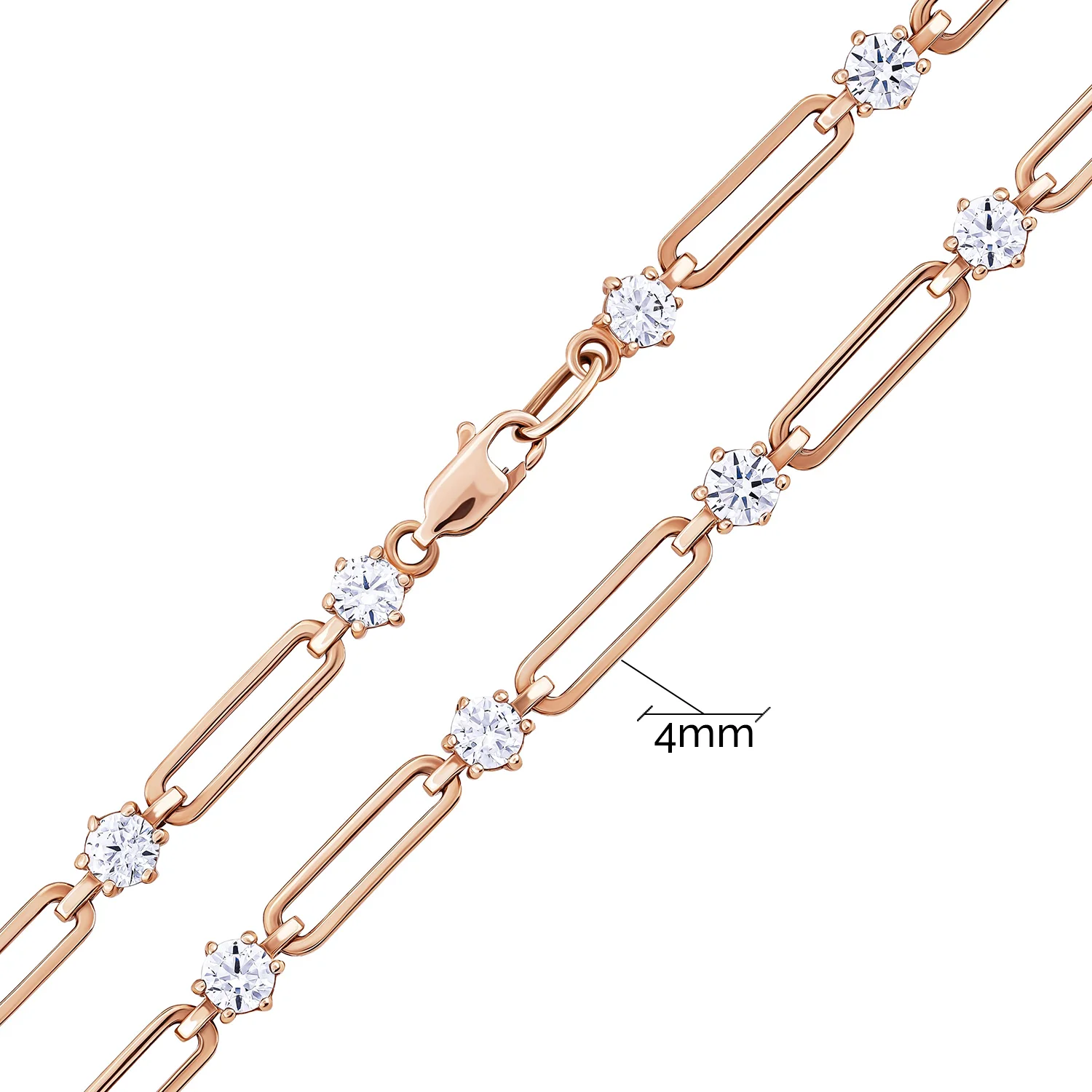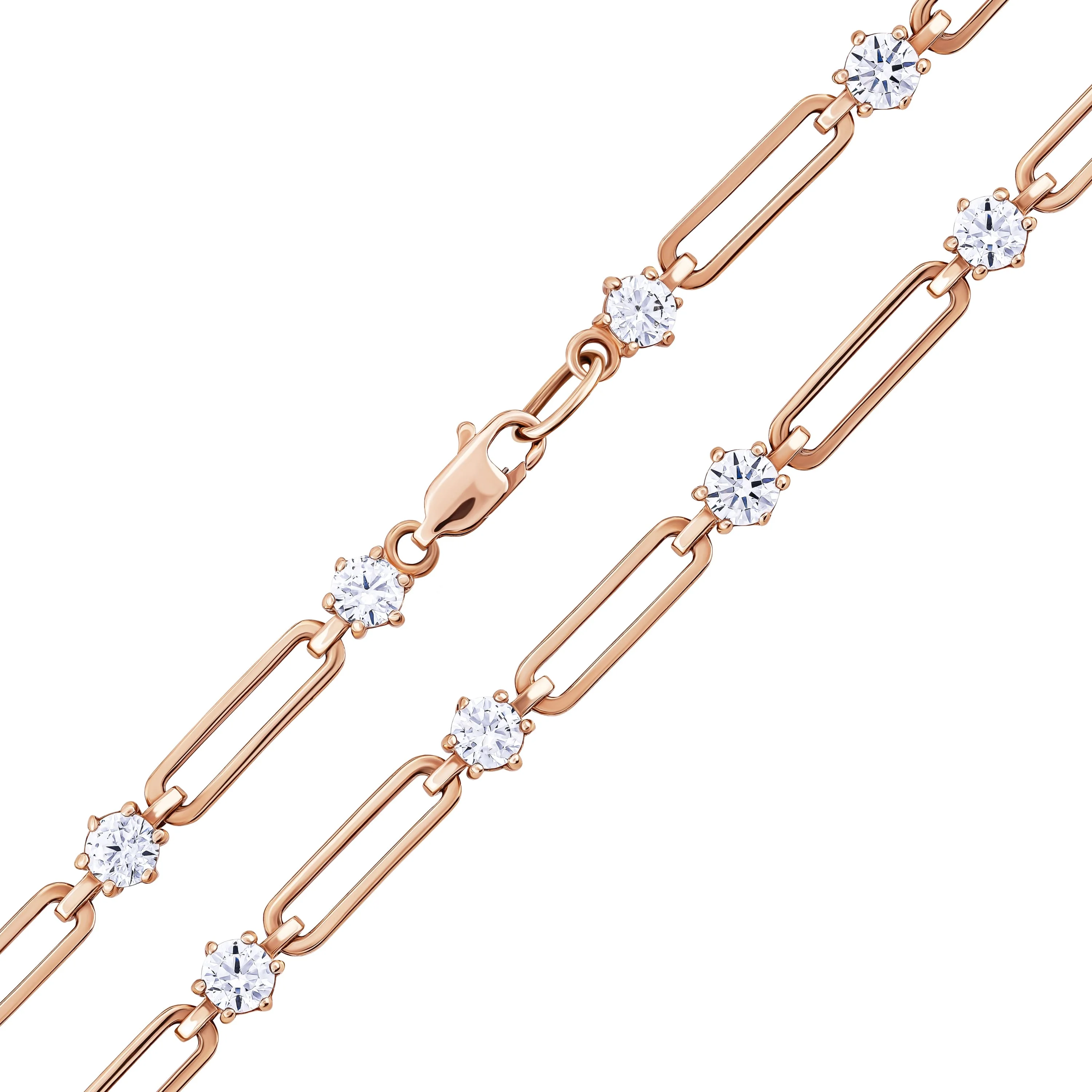 Стильный браслет с фианитами в красном золоте и плетением якорь - 1969381