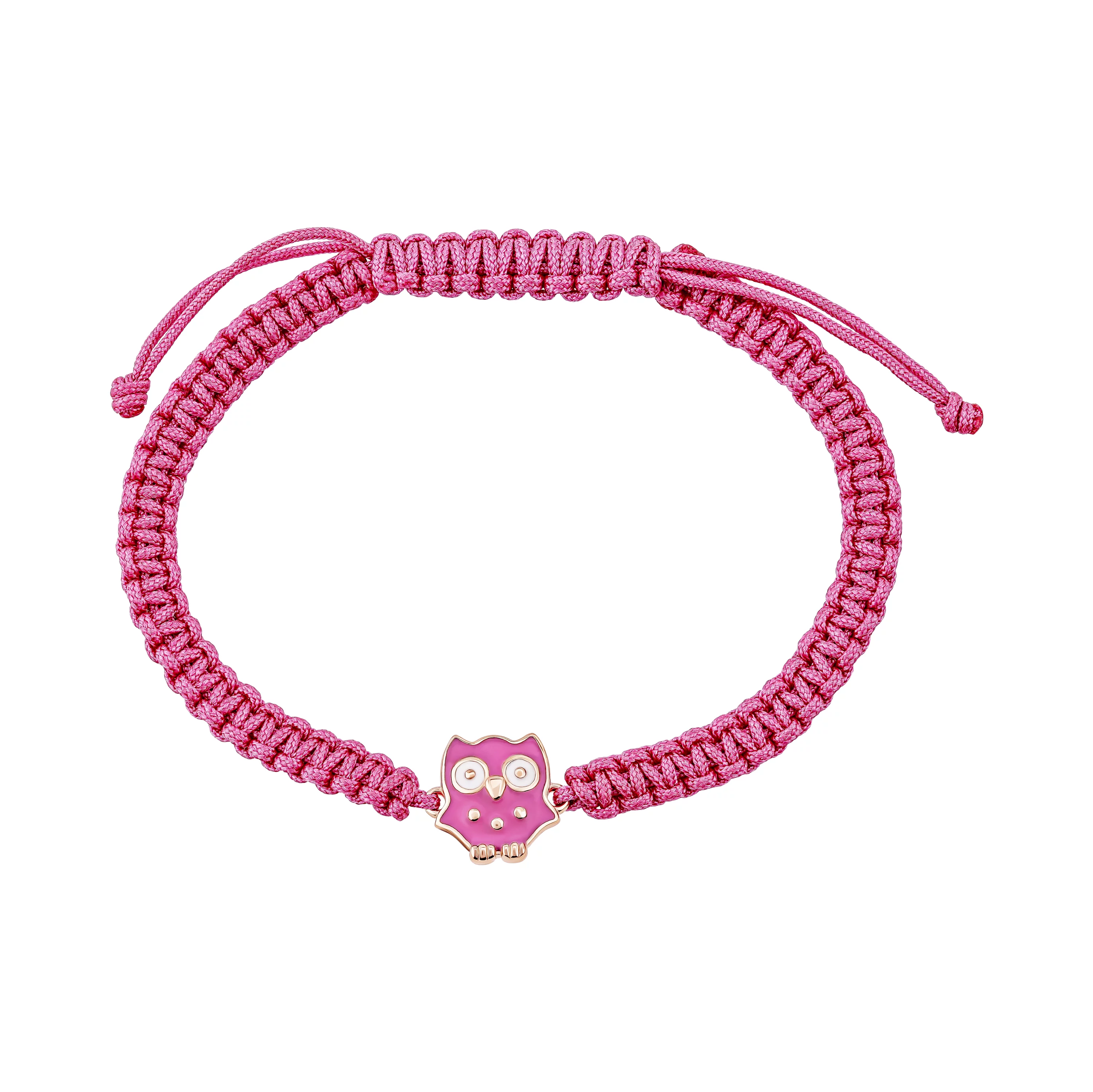 Детский шелковый браслет с подвесом "Птичка" из красного золота, фианитом и эмалью - 1965099