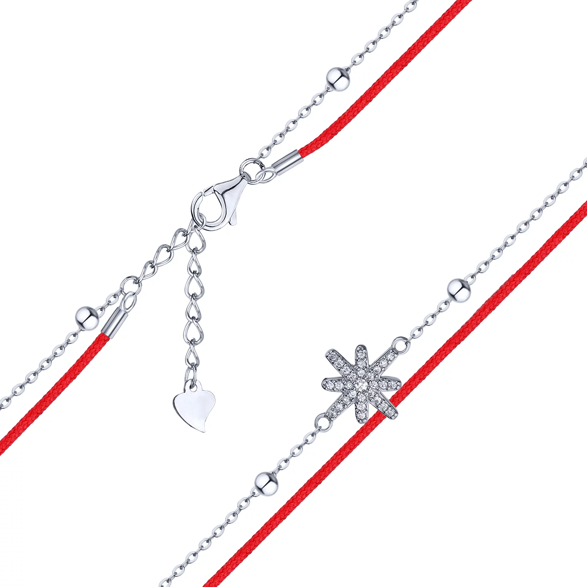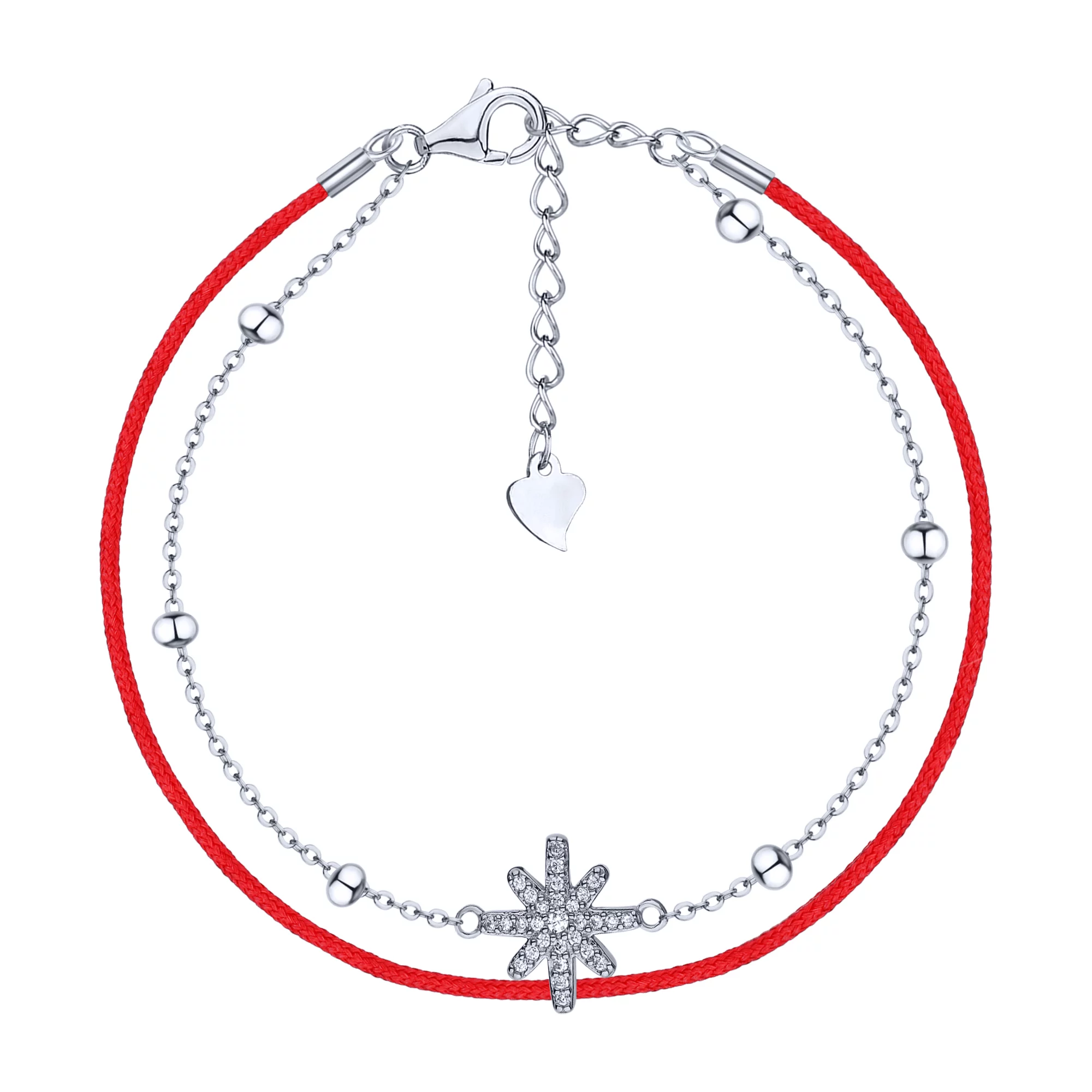 Двойной шелковый браслет с серебром и фианитом плетение якорное - 1714533