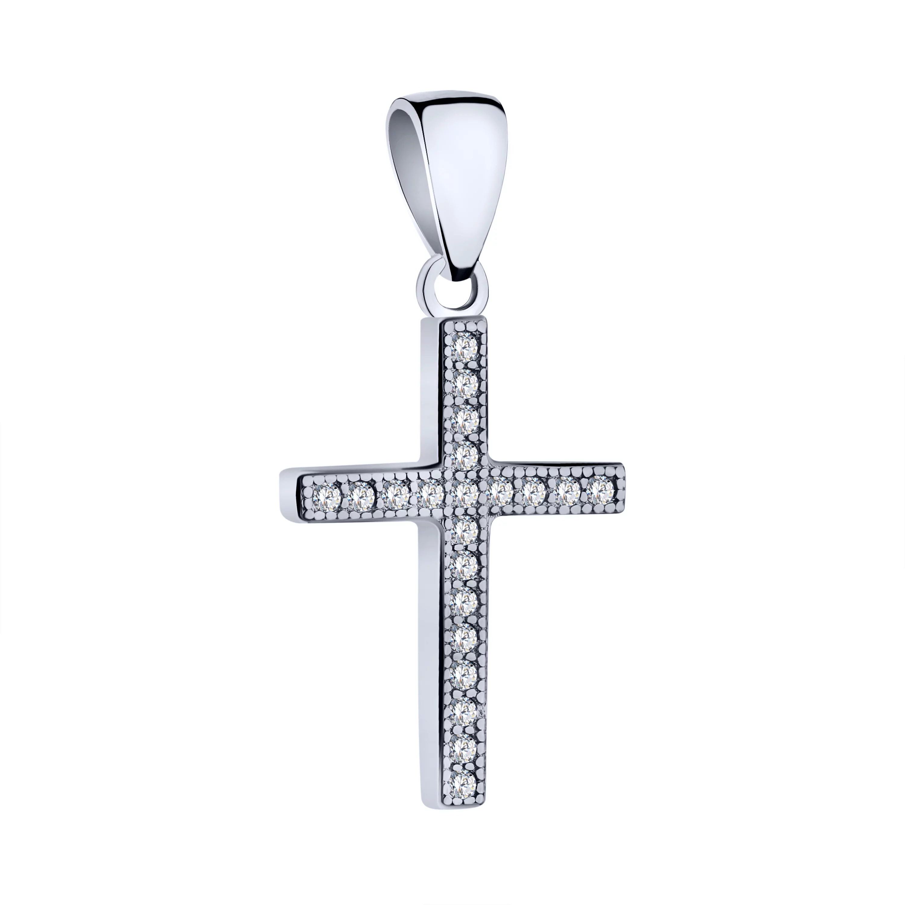 Стильный серебряный декортивный крестик с фианитами - 1957292