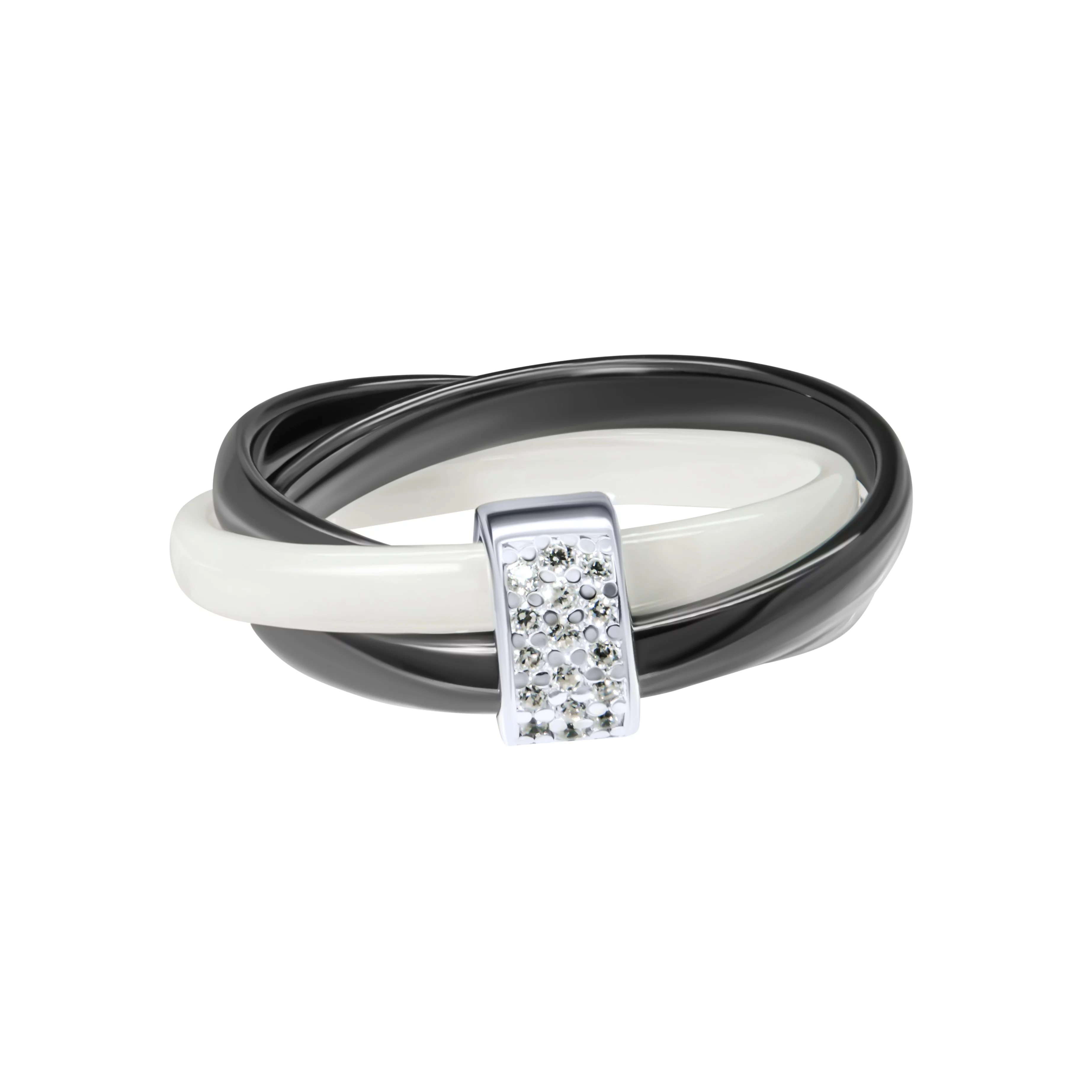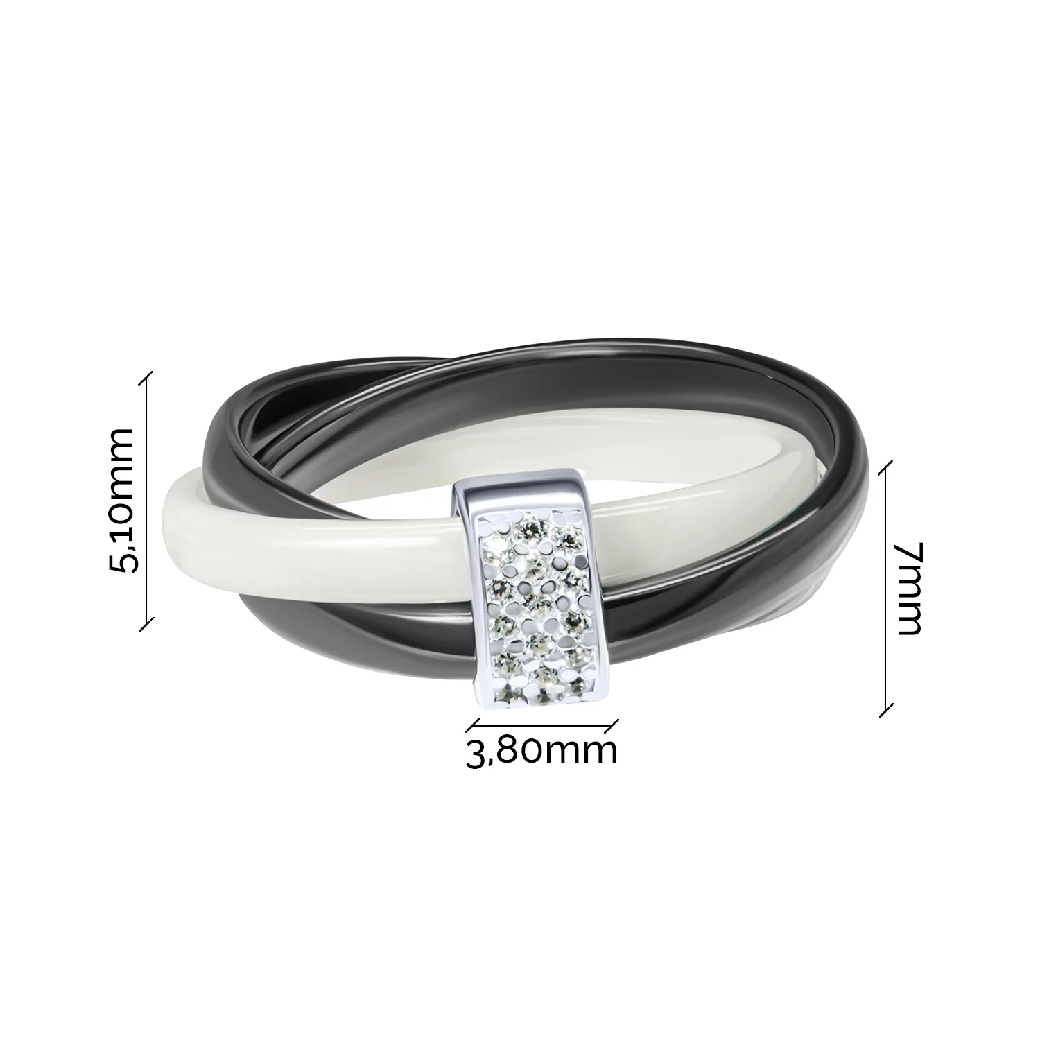 Тройное кольцо "Переплетение" из серебра с керамикой и фианитами - 1815064