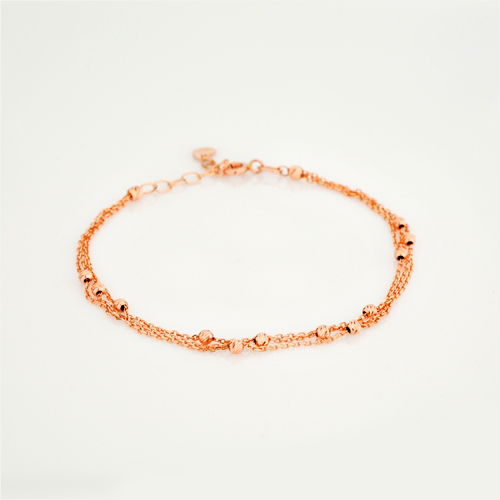 Тройной браслет из красного золота "Шарики" плетение якорь - 1824922