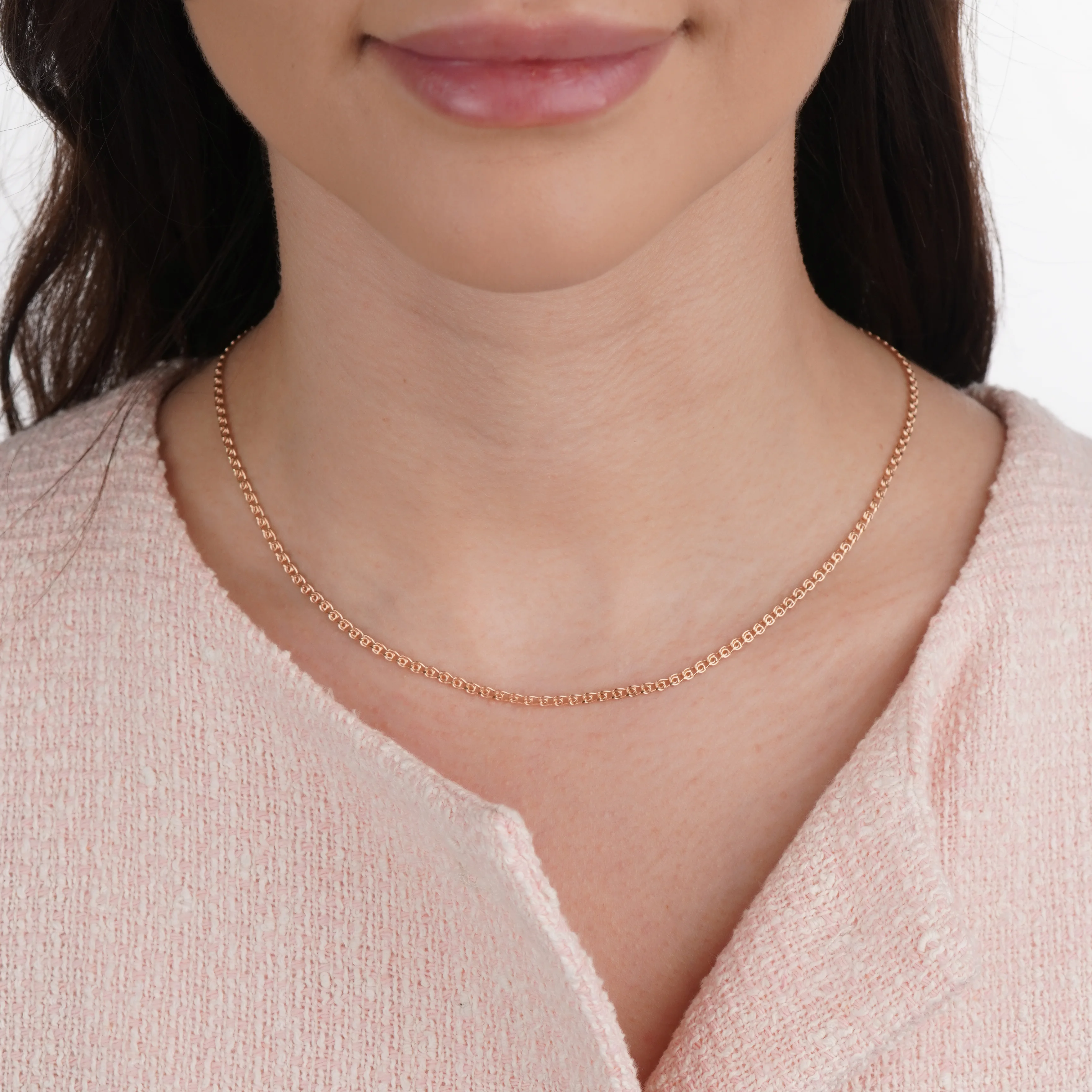 Цепочка, выполненная в фантазийной технике «Love» – элегантное нежное украшение, звенья которого по форме напоминают сердечки. Идеальное решение для романтического подарка нежной и утонченной натуре. Красное золото 585 пробы с увеличенным содержанием меди обеспечивает повышенную прочность украшения. Сочетание теплого золотого оттенка и хрупкого плетения визуально делают цепочку легкой и нежной. Но драгоценный металл редко деформируется, долгое время не тускнеет. А надежная застежка-карабин исключает самостоятельное расстегивание и последующую потерю ювелирного изделия.