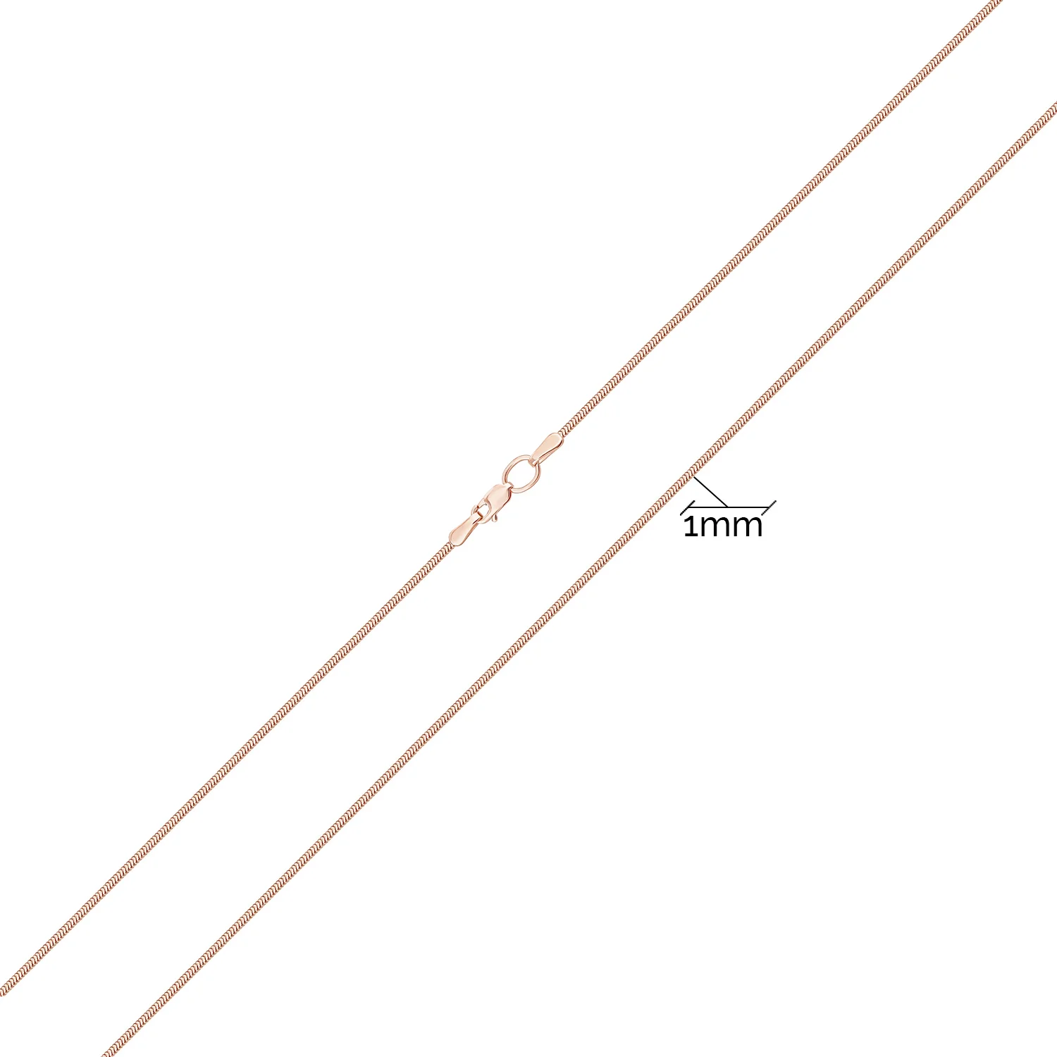 Цепочка с плетением снейк — удобное ювелирное украшение, изящно подчеркивающее линии женской шеи. Золото 585 пробы с добавлением меди при попадании лучей света переливается легкими красными оттенками. Изделие закрепляют с помощью карабина. Замок надежно его фиксирует, исключая вариант случайного расстегивания. Плетение снейк с квадратным сечением визуально напоминает туго скрученную веревку, только здесь вместо волокон — тонкие жгутики из драгоценного металла. Элегантное украшение подходит девушкам и женщинам, им можно дополнить образ в любом предпочитаемом стиле.