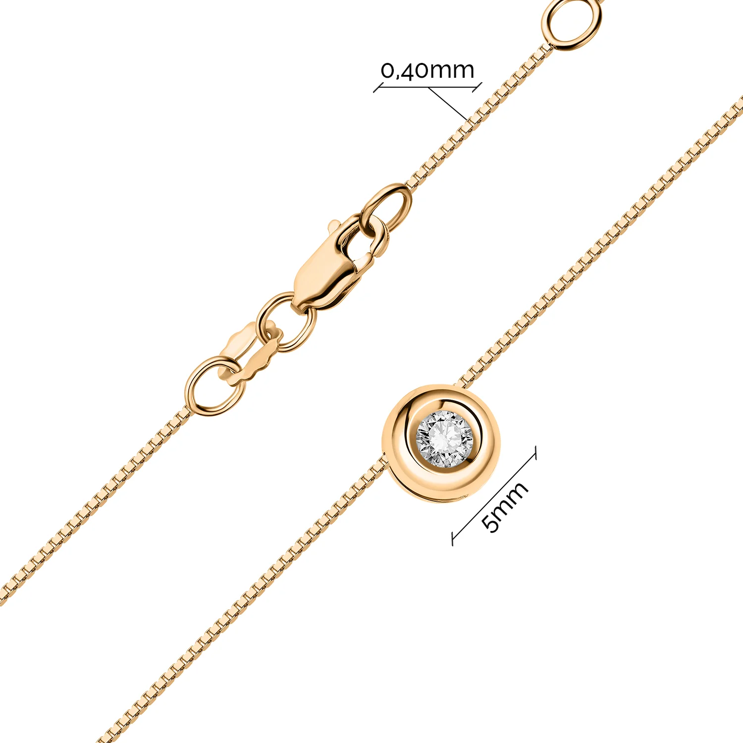 Цепочка из красного золота с подвесом и бриллиантом плетение венецианское - 1778580