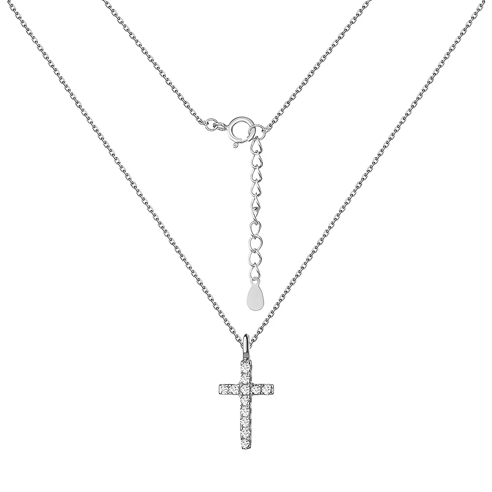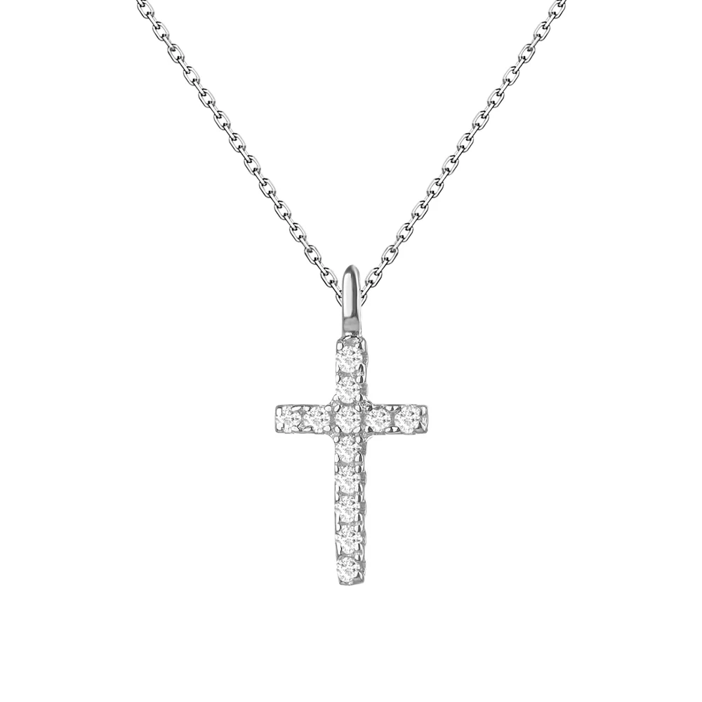 Цепочка из серебра с крестиком и дорожкой фианитов плетение якорь - 1525603