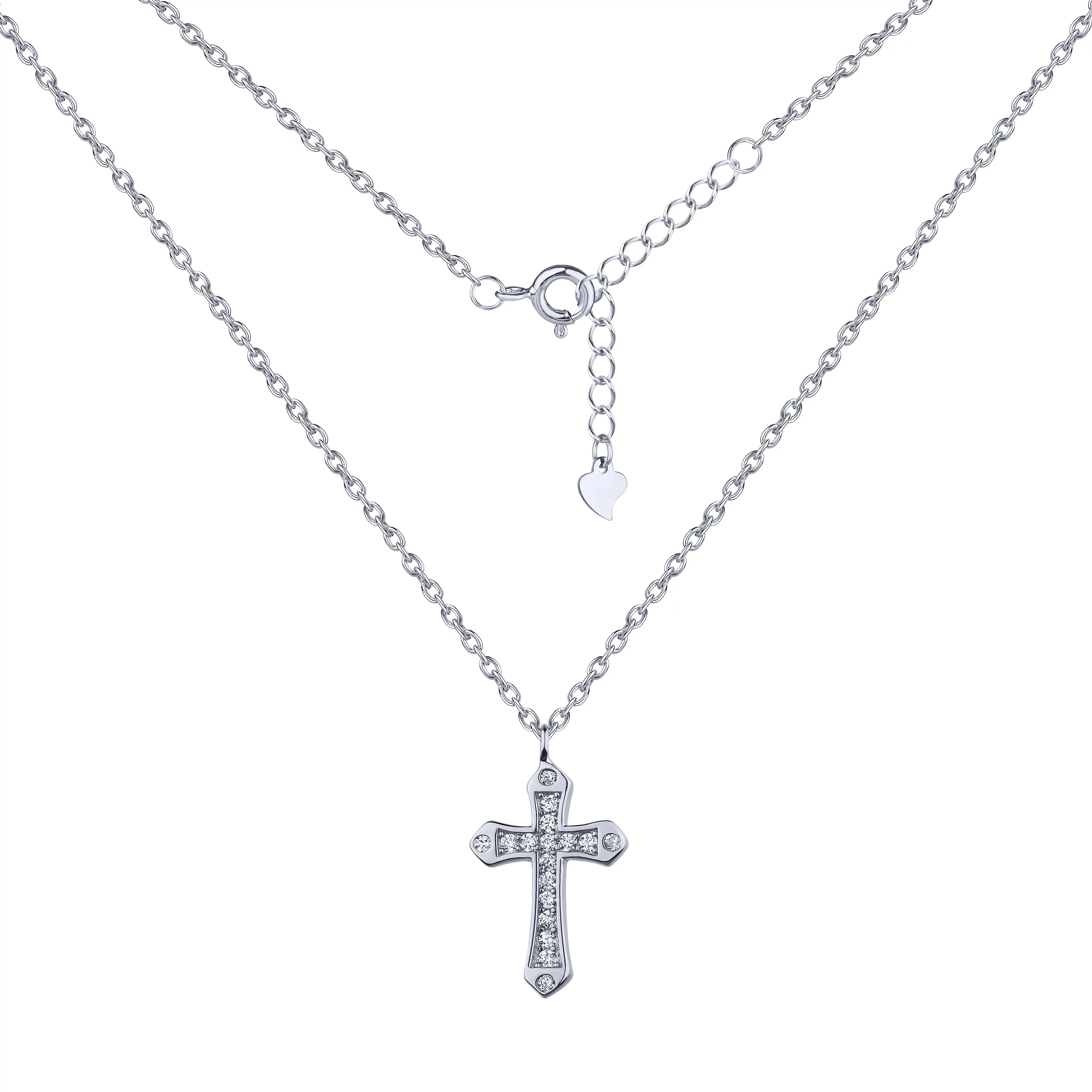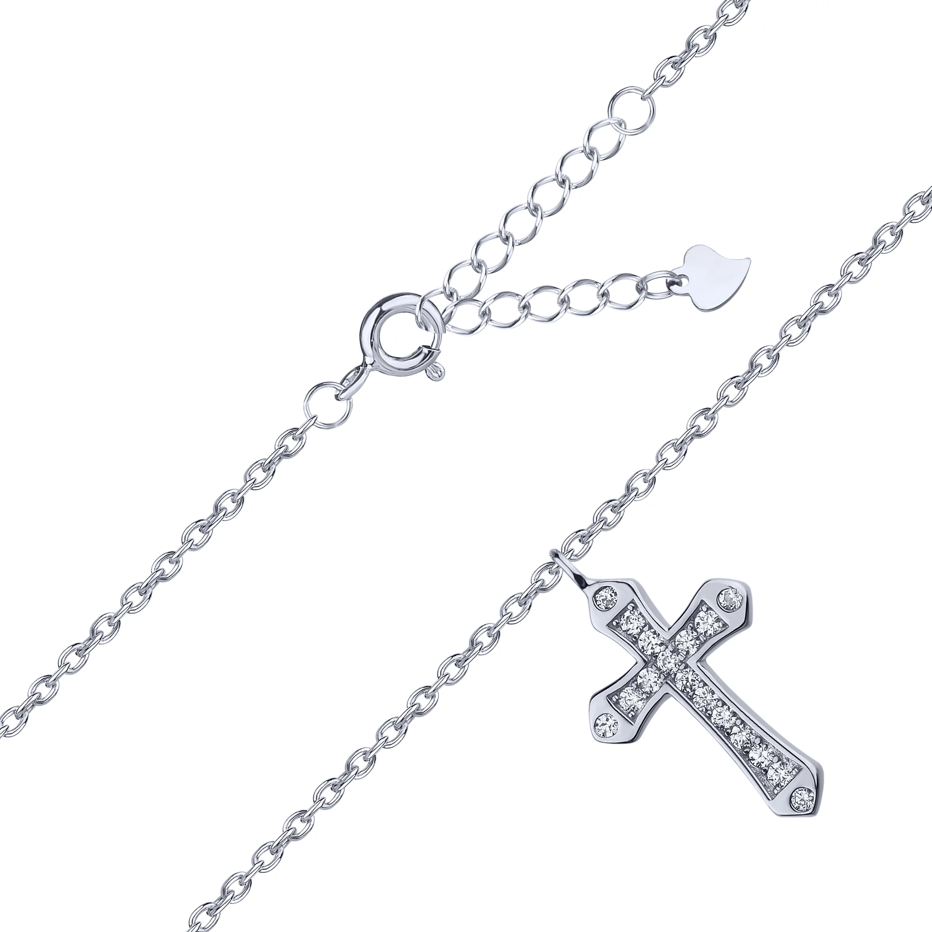 Цепочка серебряная с подвесными сердечком и крестиком с фианитами и перламутром плетение якорь - 1612969