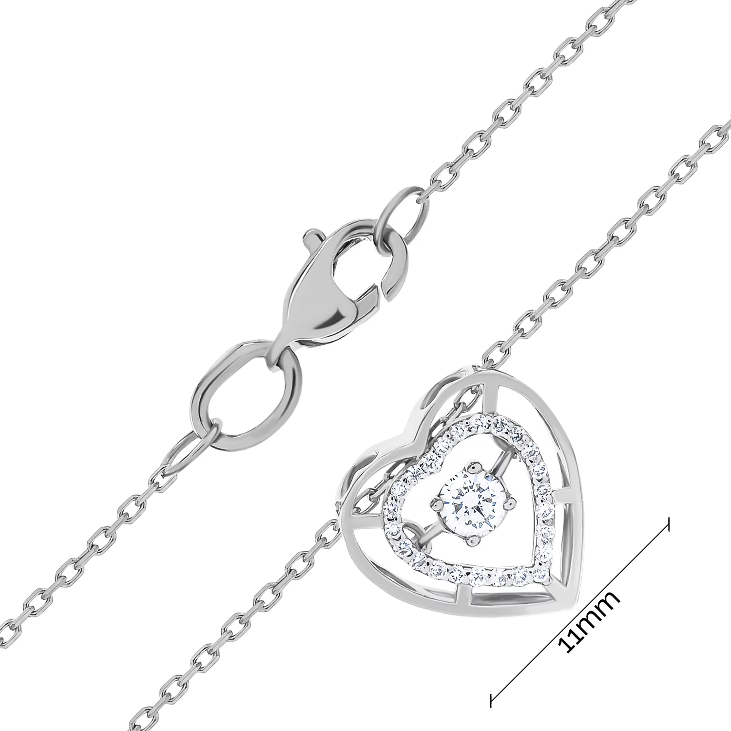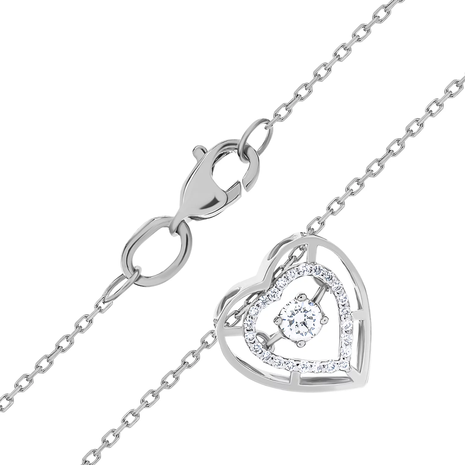 Цепочка с подвесом "Сердце" с "танцующим" бриллиантом плетение якорь - 1488296