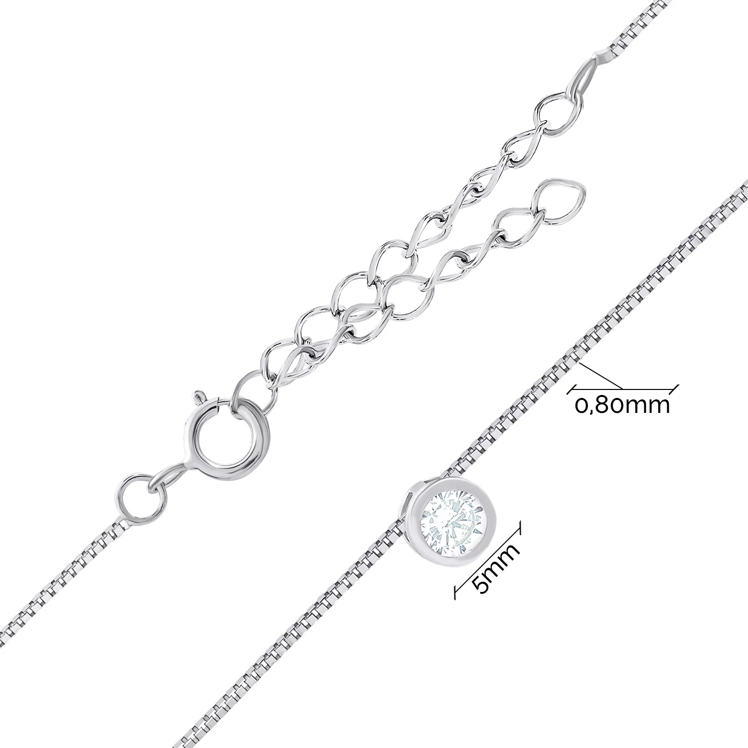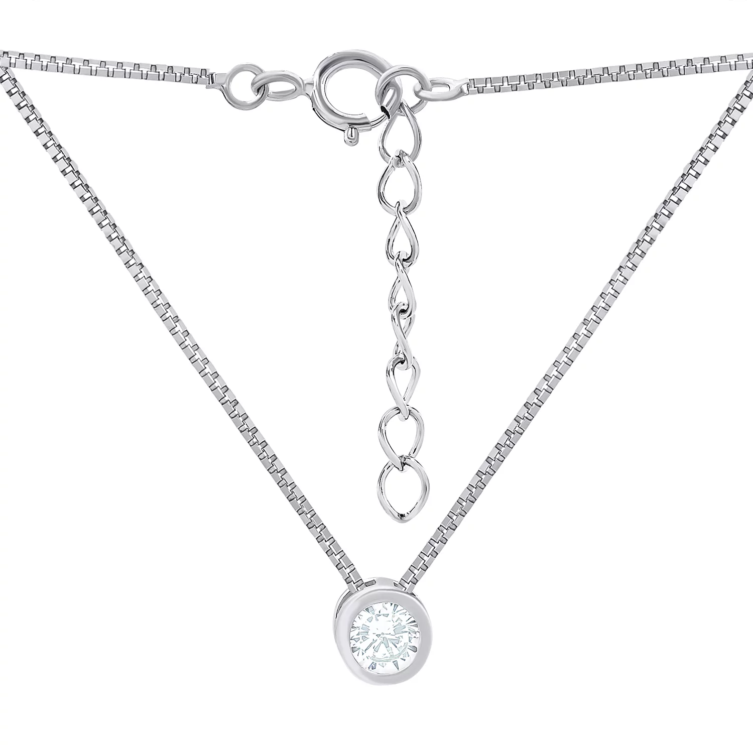 Цепочка с подвесом из белого золота с фианитом якорное плетение - 1688575