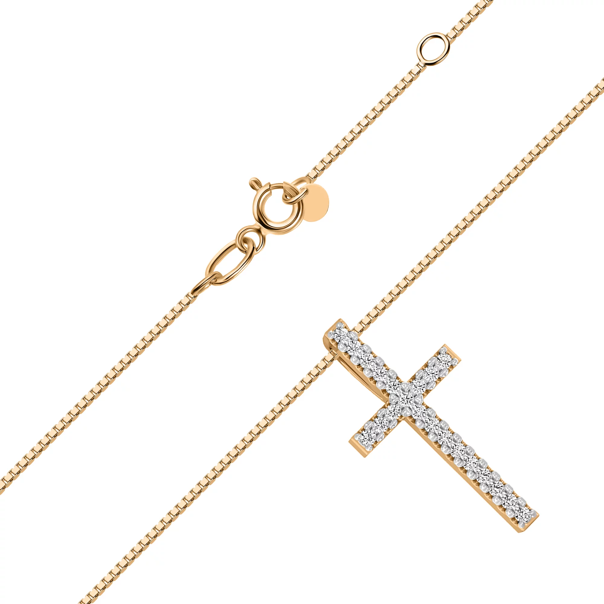 Цепочка в белом золоте с крестиком и бриллиантами плетение венецианское - 1728231
