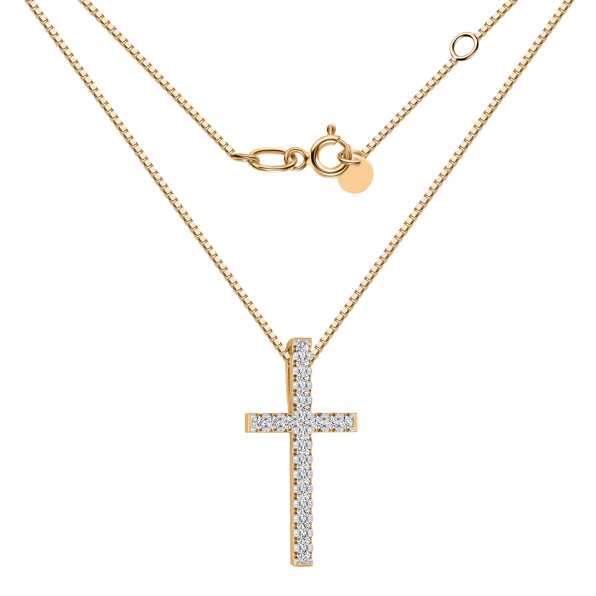 Цепочка из желтого золота с подвесом "Крестик" и фианитами с якорным плетением - 1688851