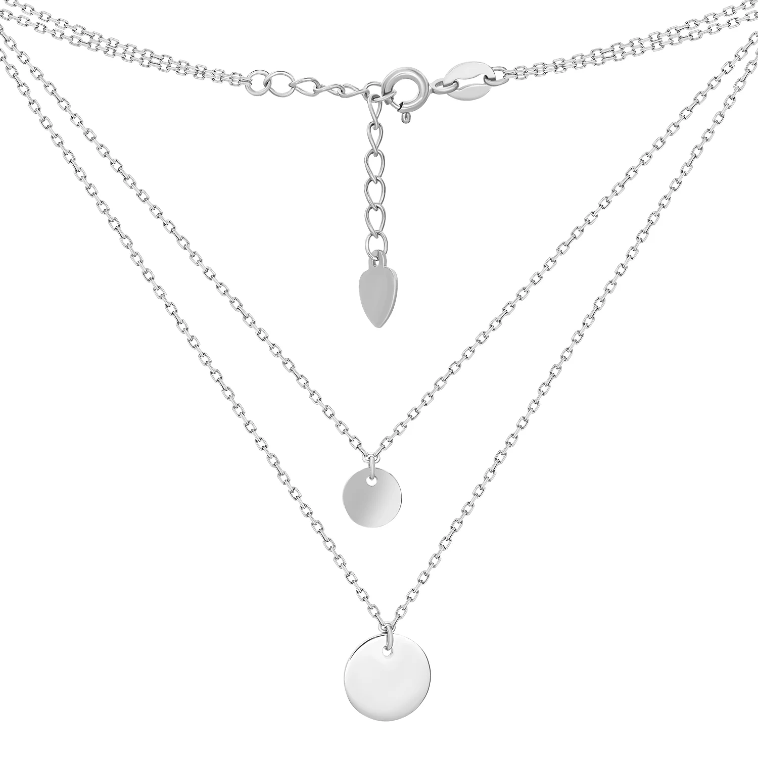 Колье двойное серебряное с подвесными монетами плетение якорь и венецианское - 1547735
