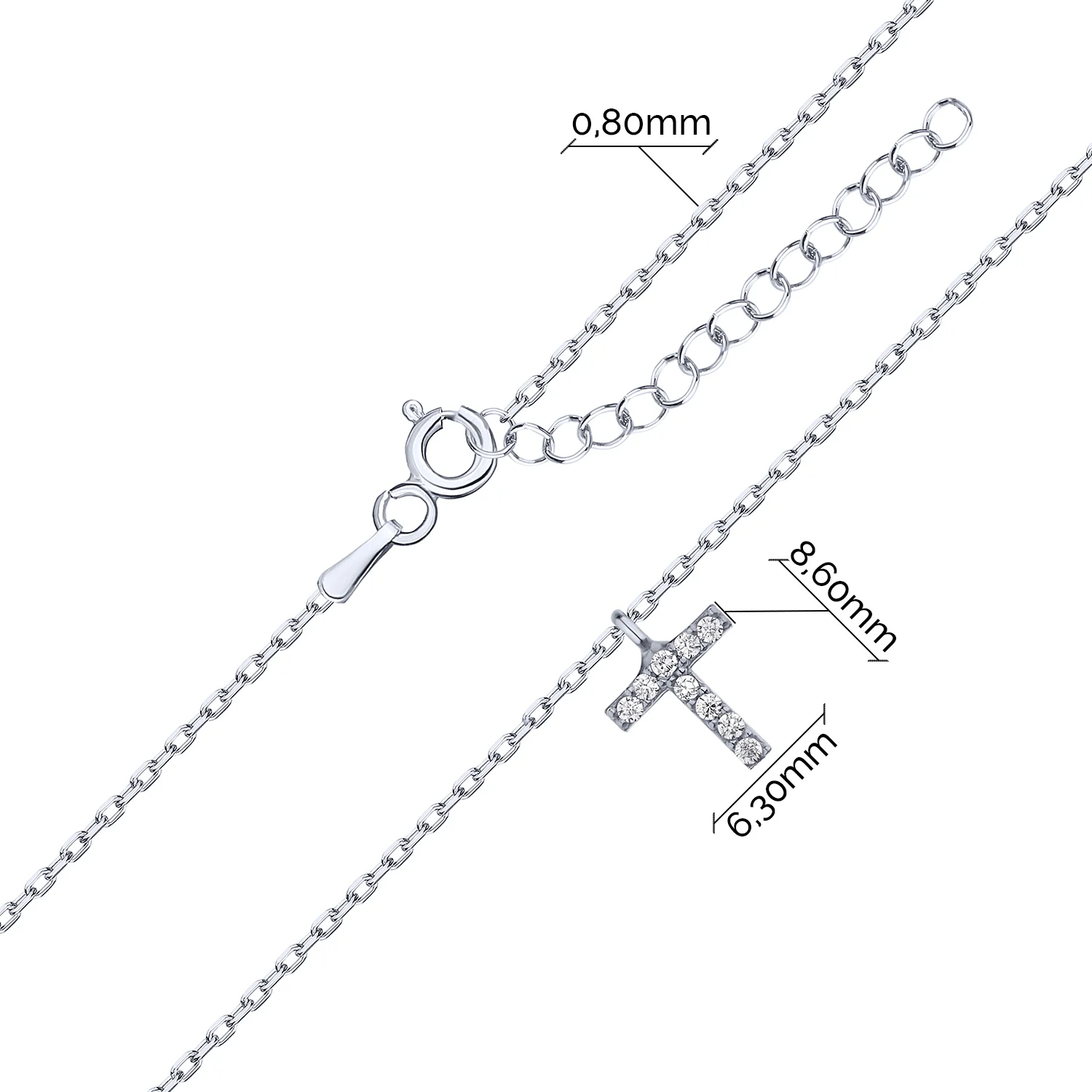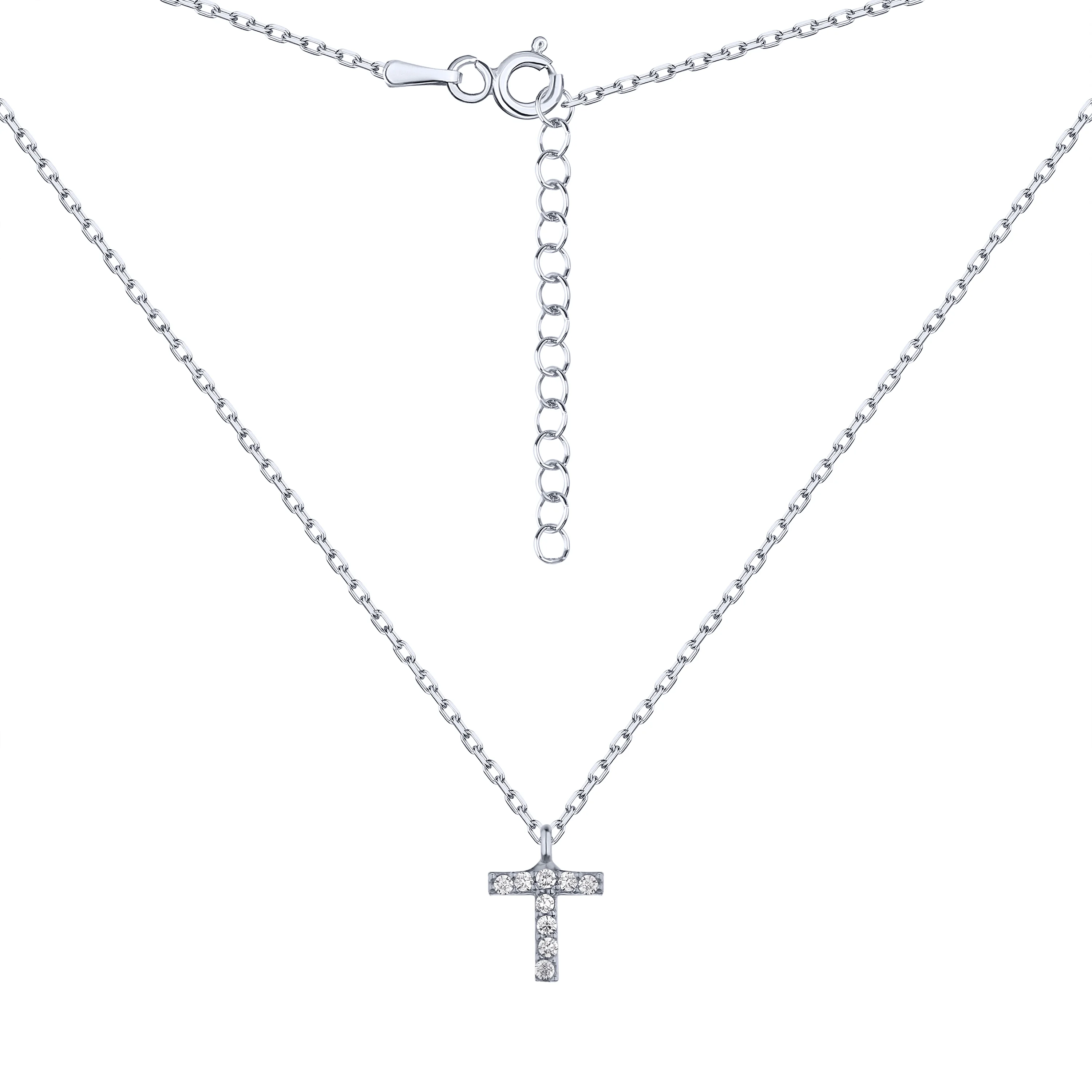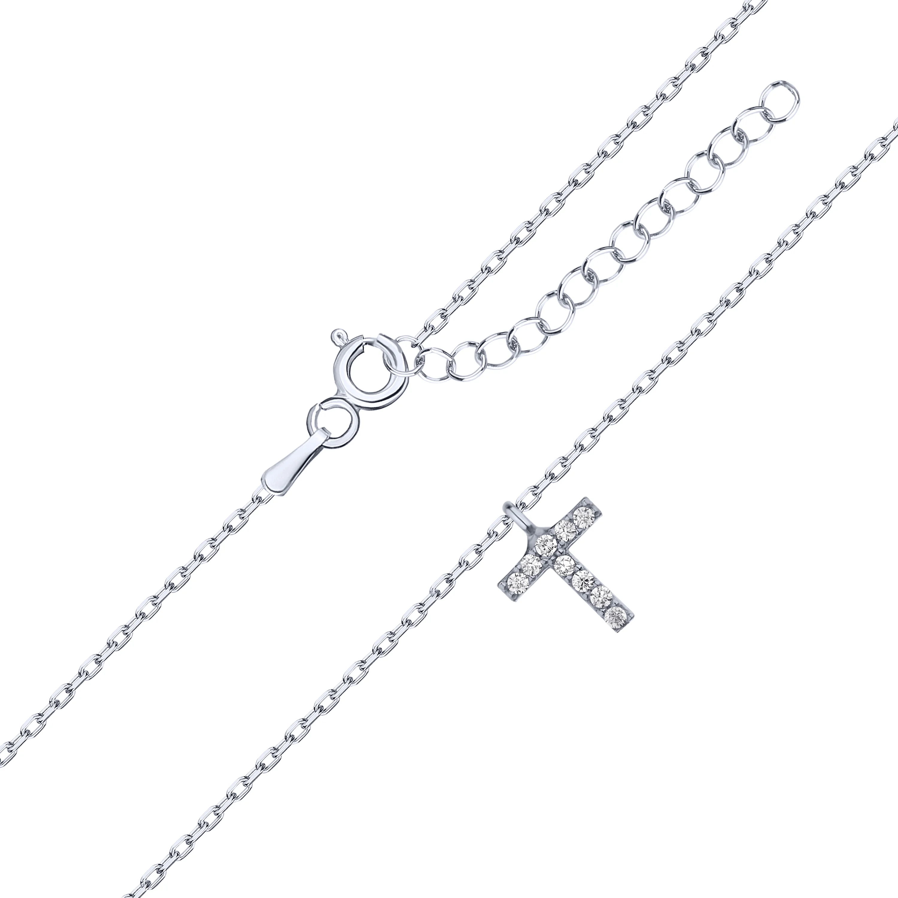 Цепочка с подвесом "Буква Т" с фианитами в якорном плетение - 2129649