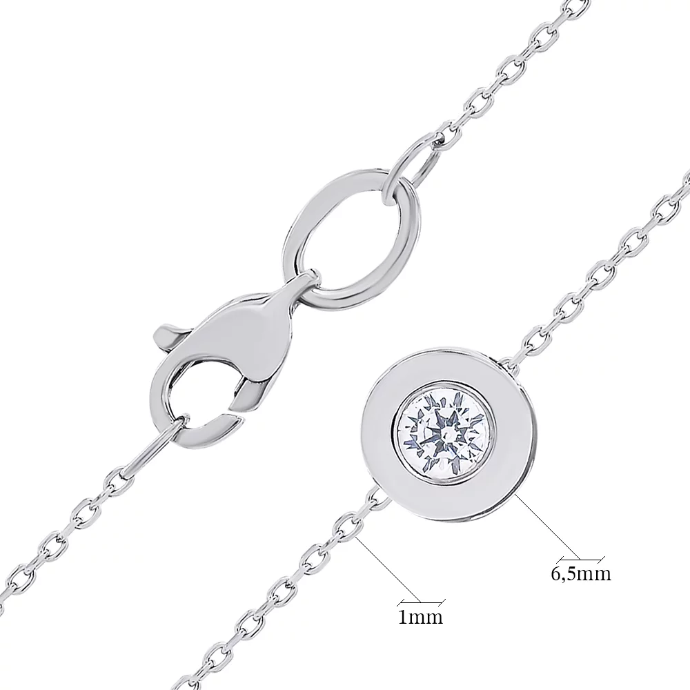 Цепочка с подвесом из белого золота с фианитом якорное плетение - 1688575