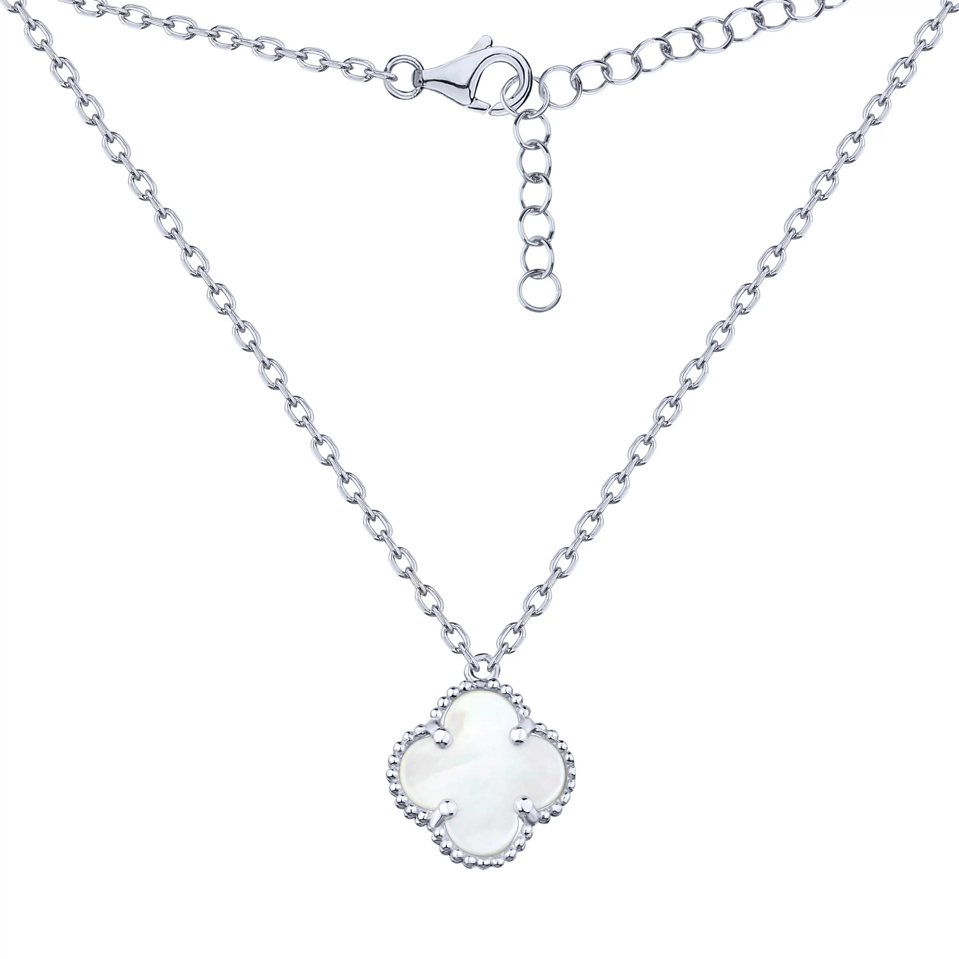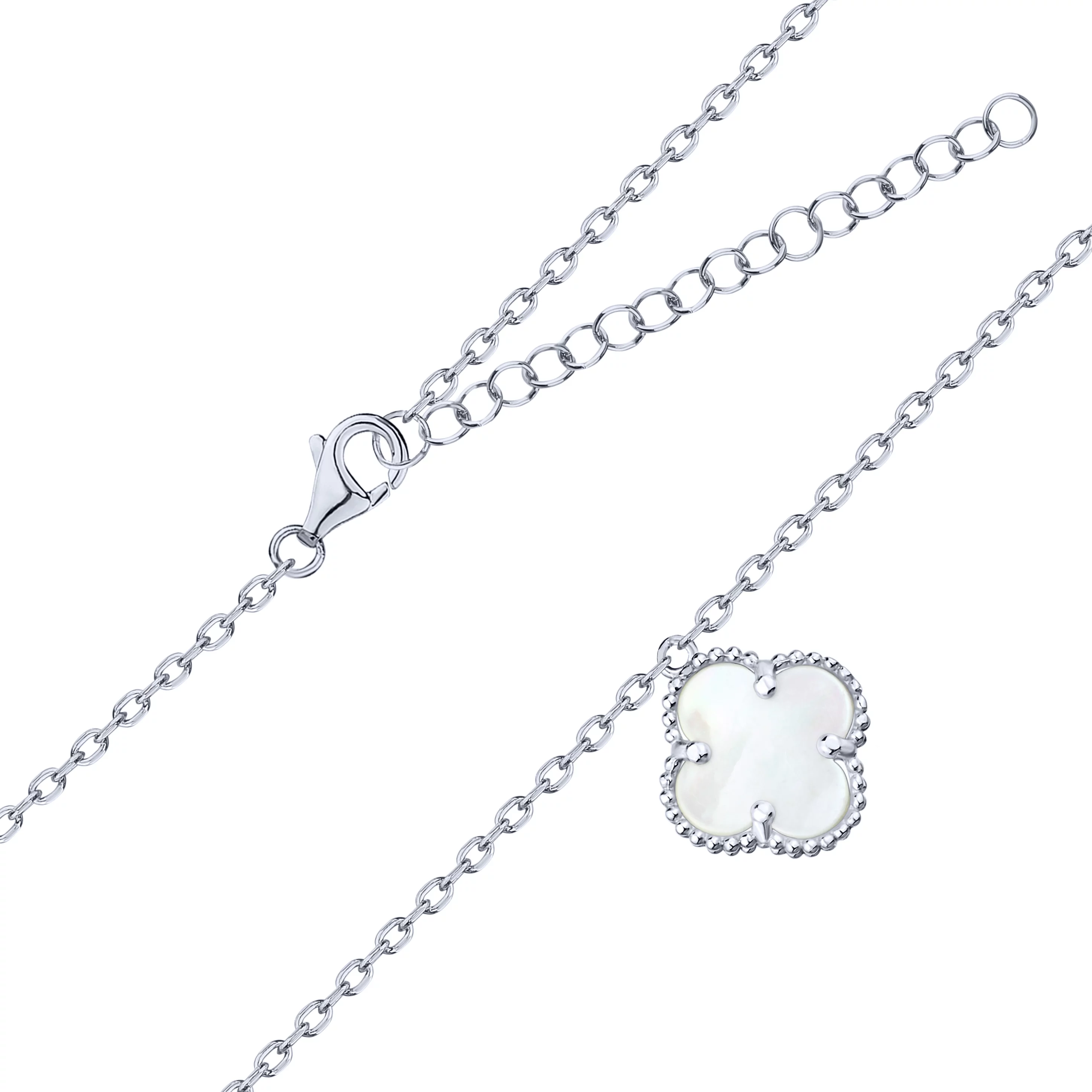 Цепочка с подвесом из серебра "Клевер" с перламутром плетение якорь - 1822879