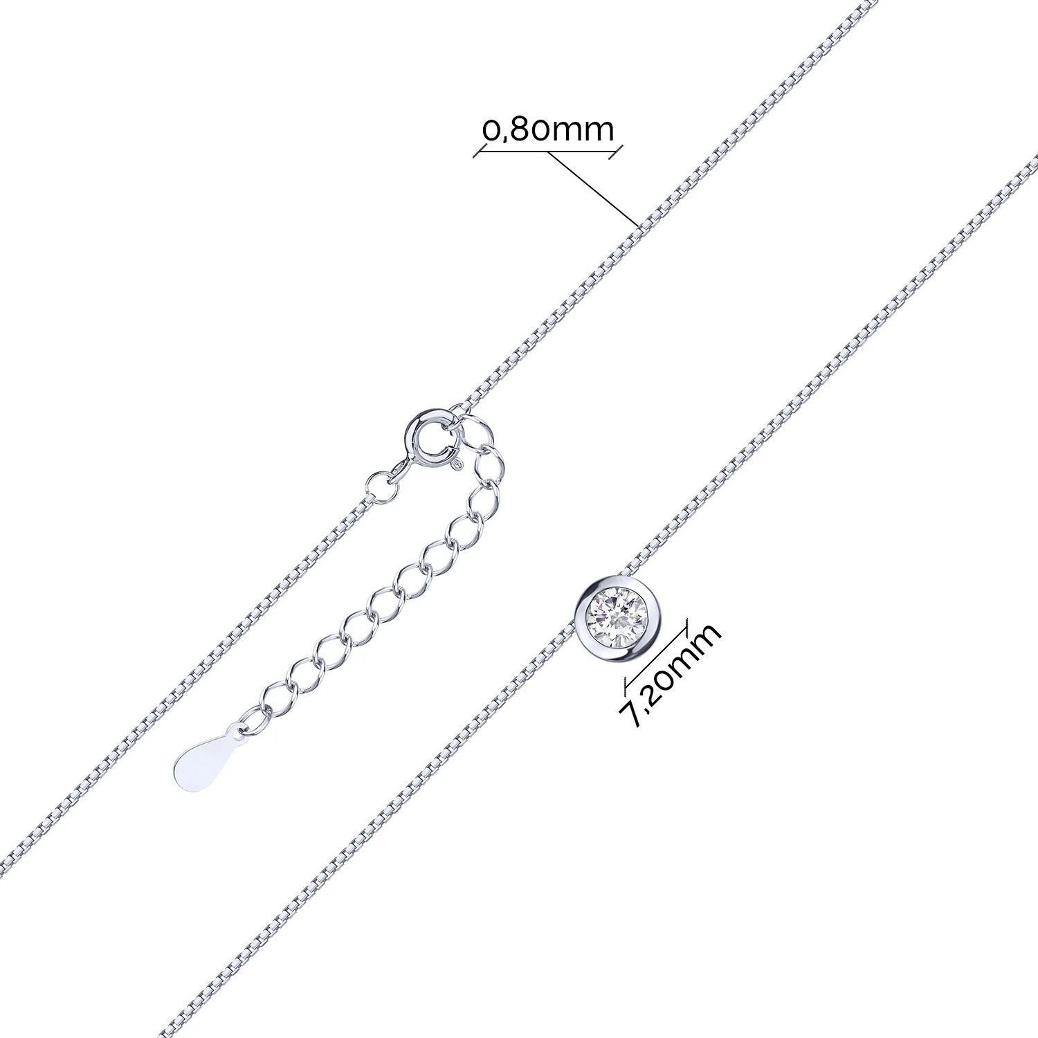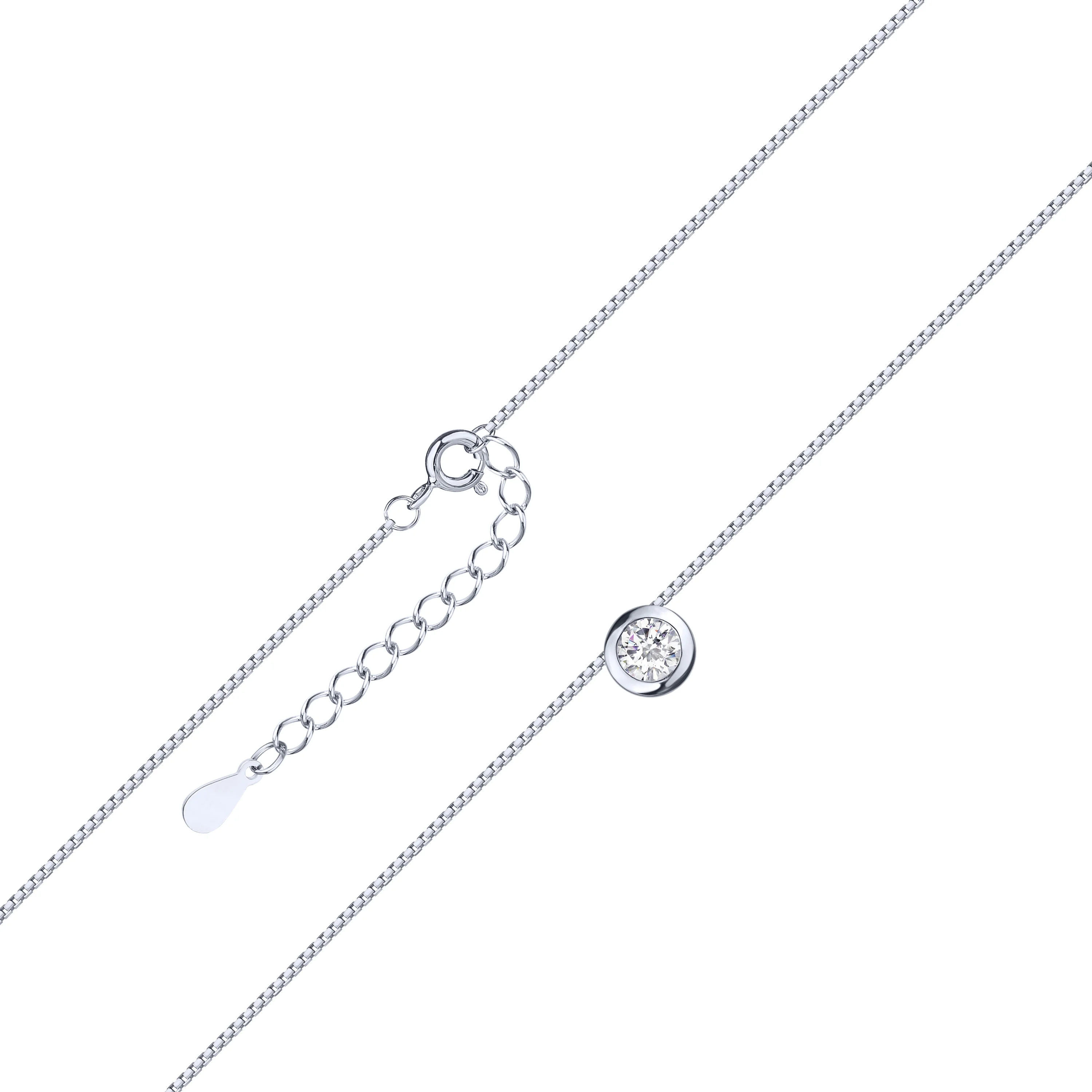 Цепочка с подвесом из серебра с фианитом венецианское плетение - 2199152