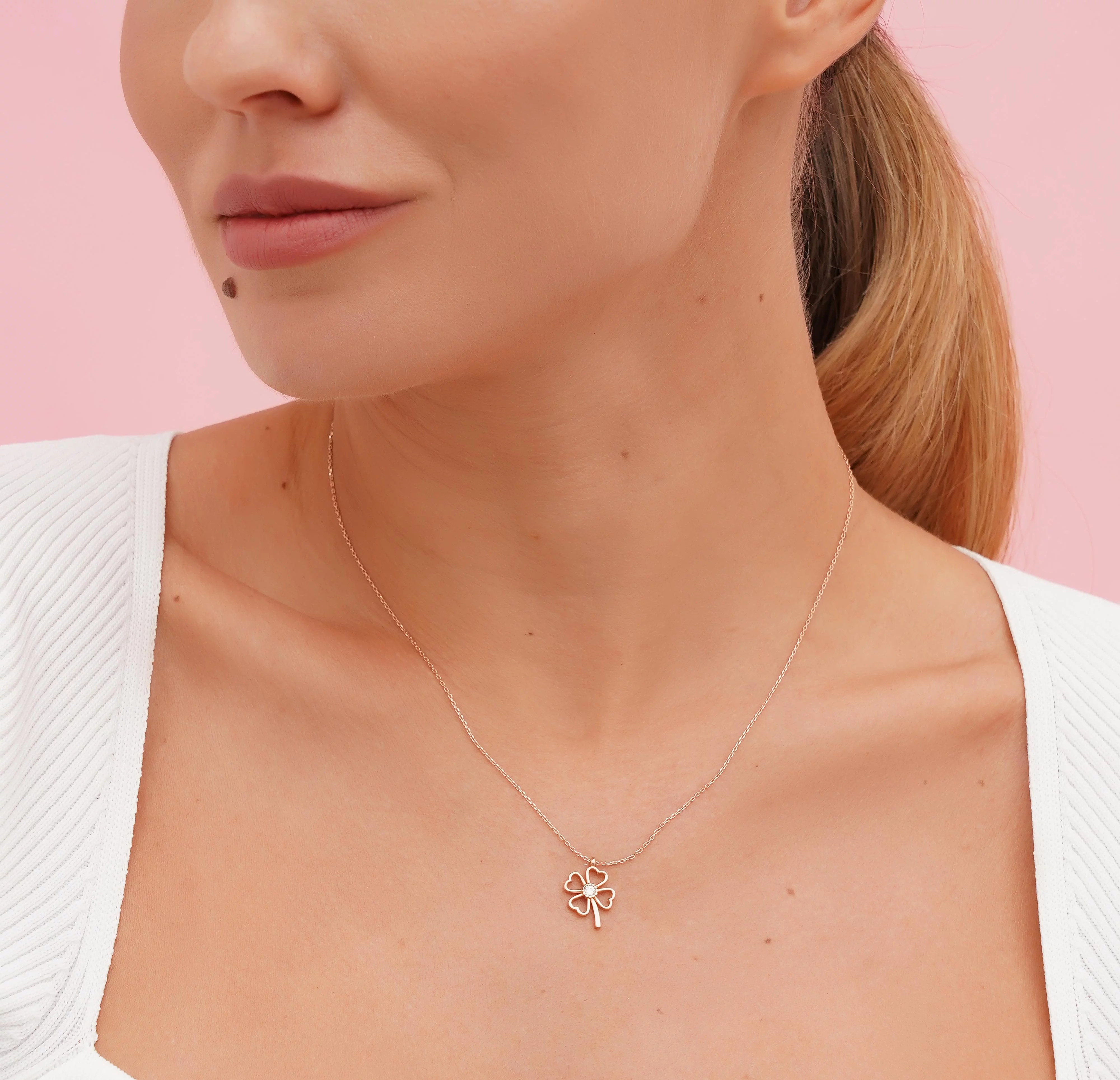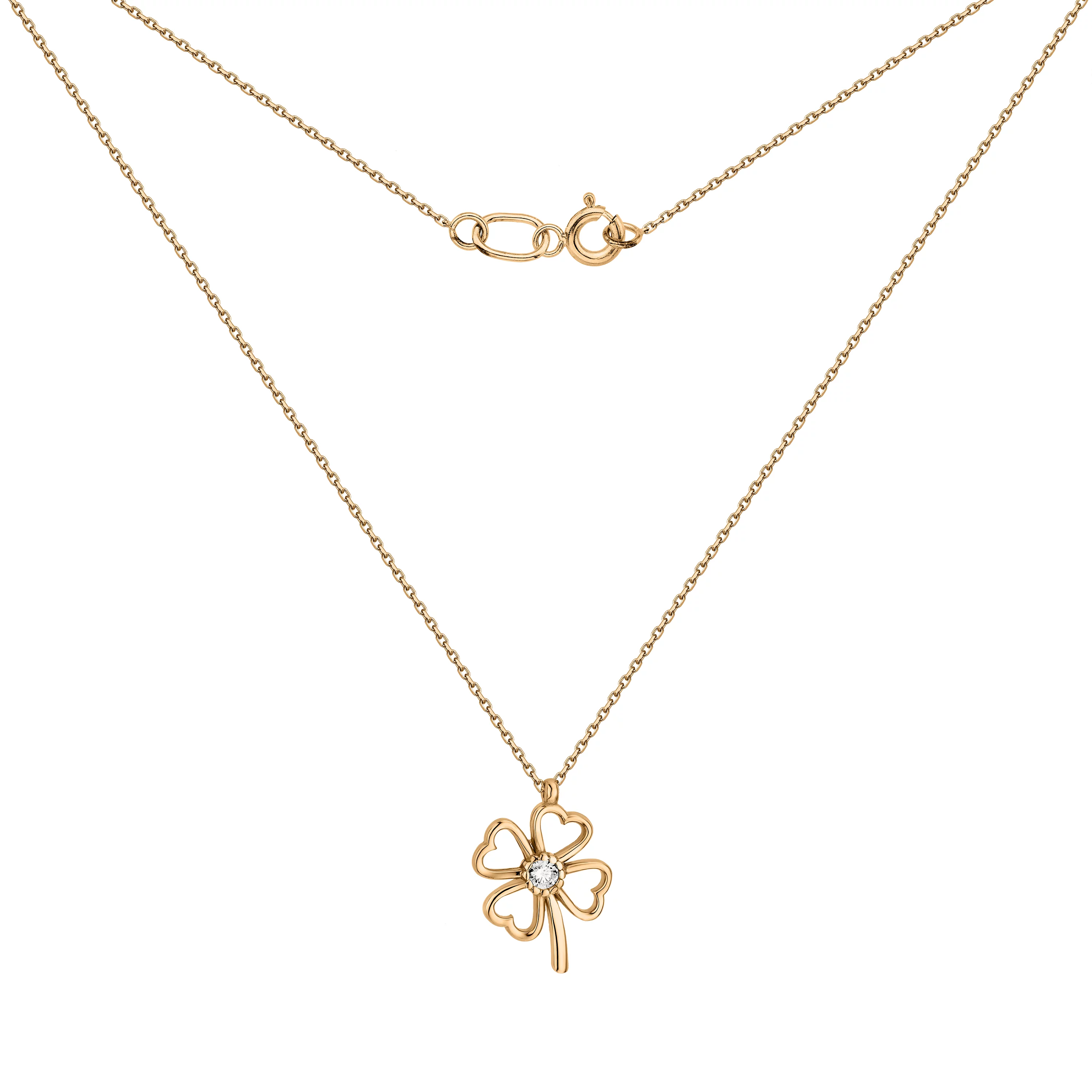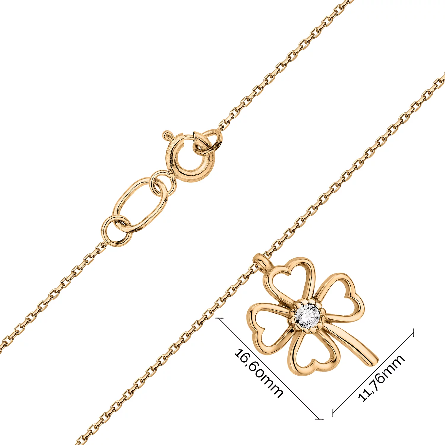 Модное колье с подвесом "Клевер" из красного золота с фианитами и якорнім плетением - 1918231