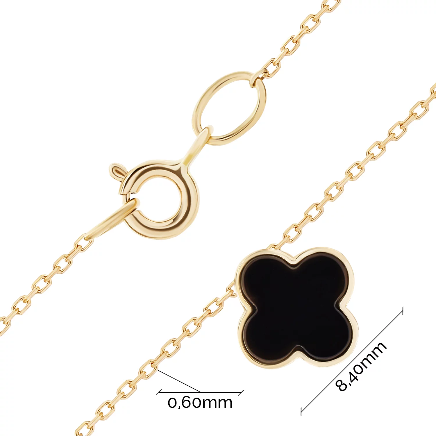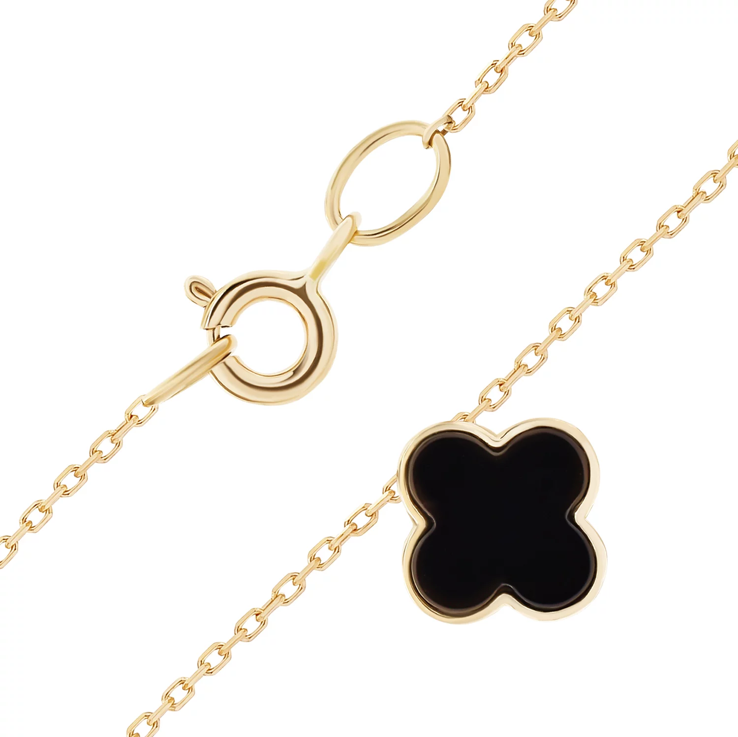 Колье с подвесом "Клевер" из красного золота с ониксом якорное плетение - 1824374