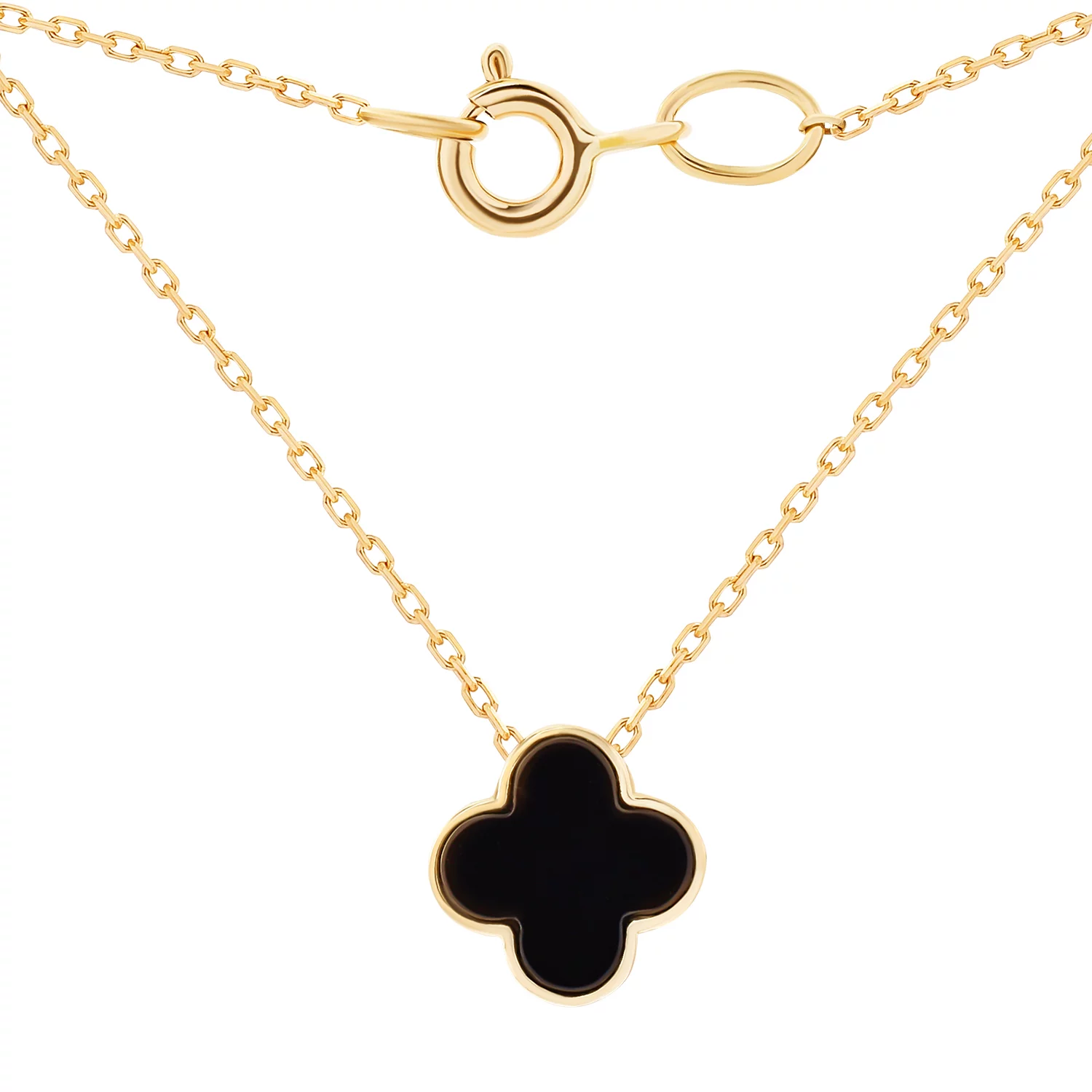 Колье из красного золота с подвесом "Клевер" с ониксом якорное плетение - 1747531