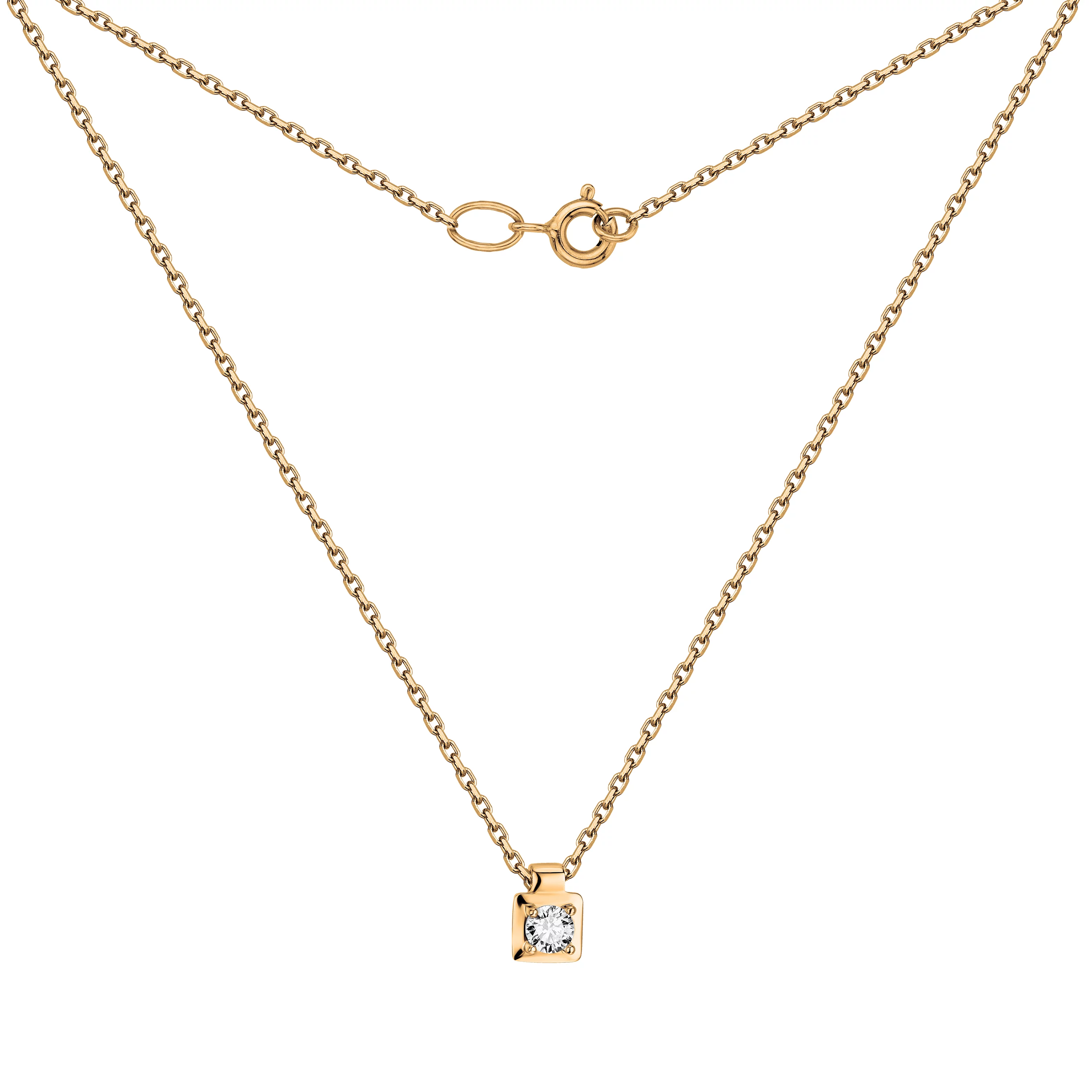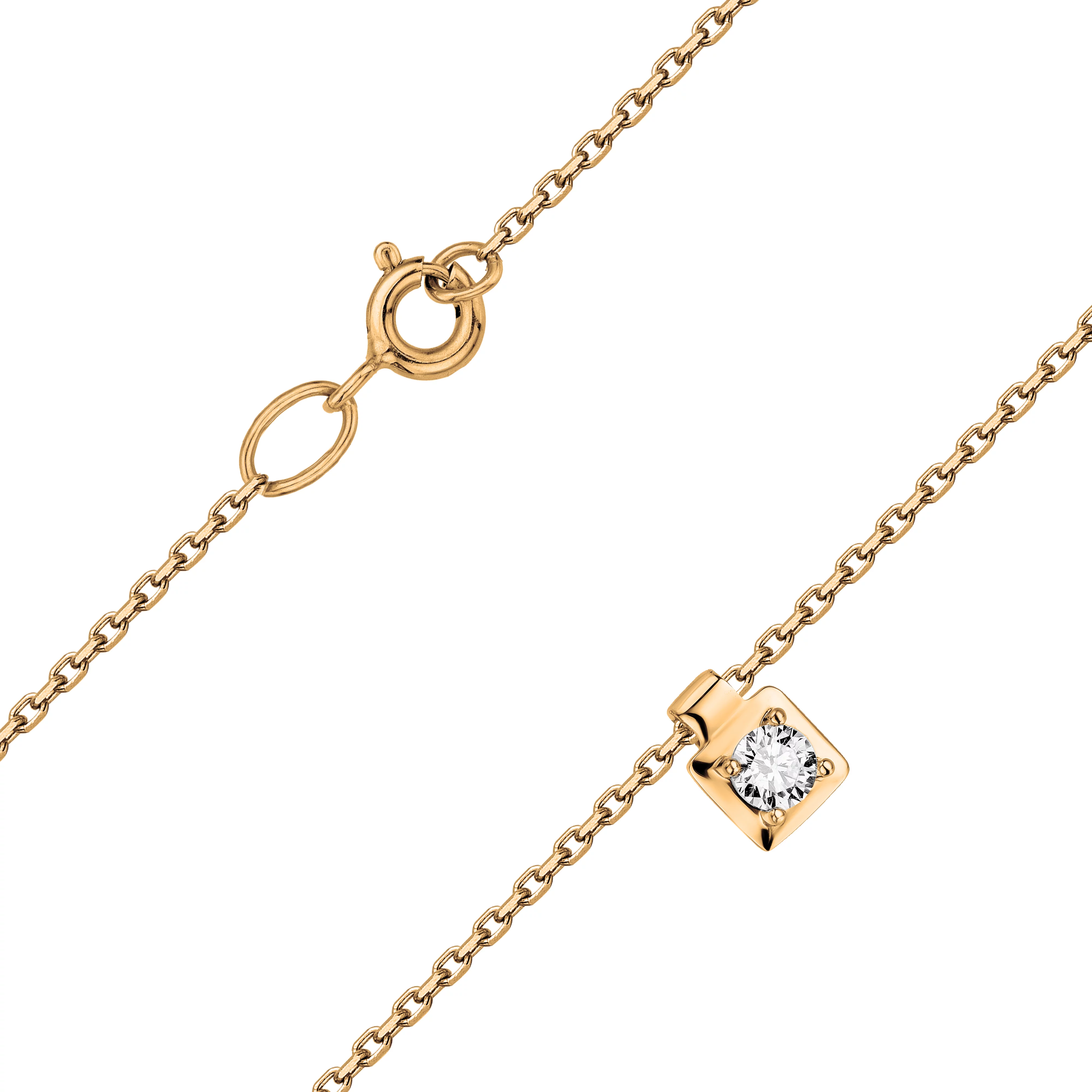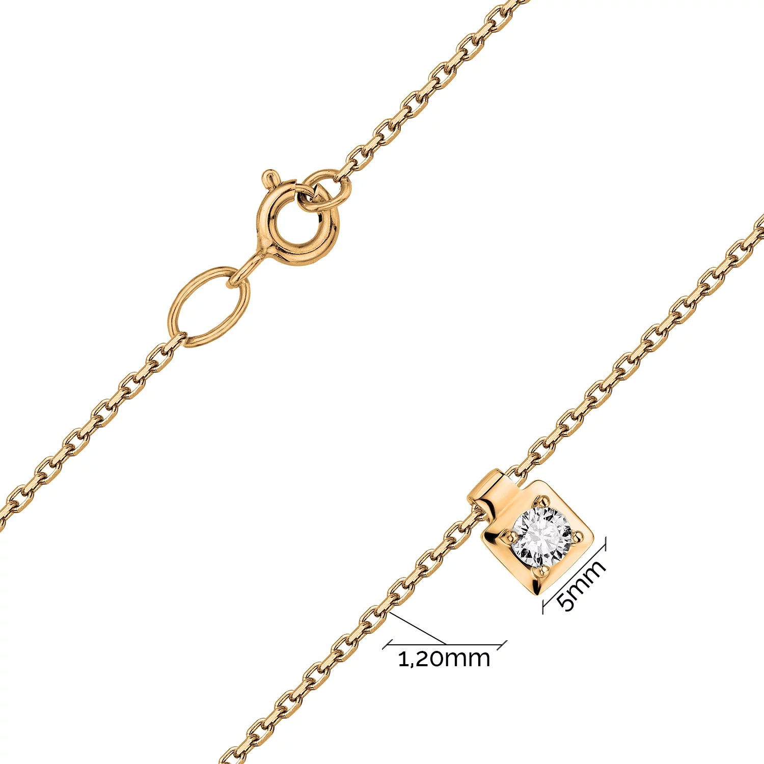 Цепочка с подвесом из красного золота "Куб" с фианитом якорного плетения - 1614087