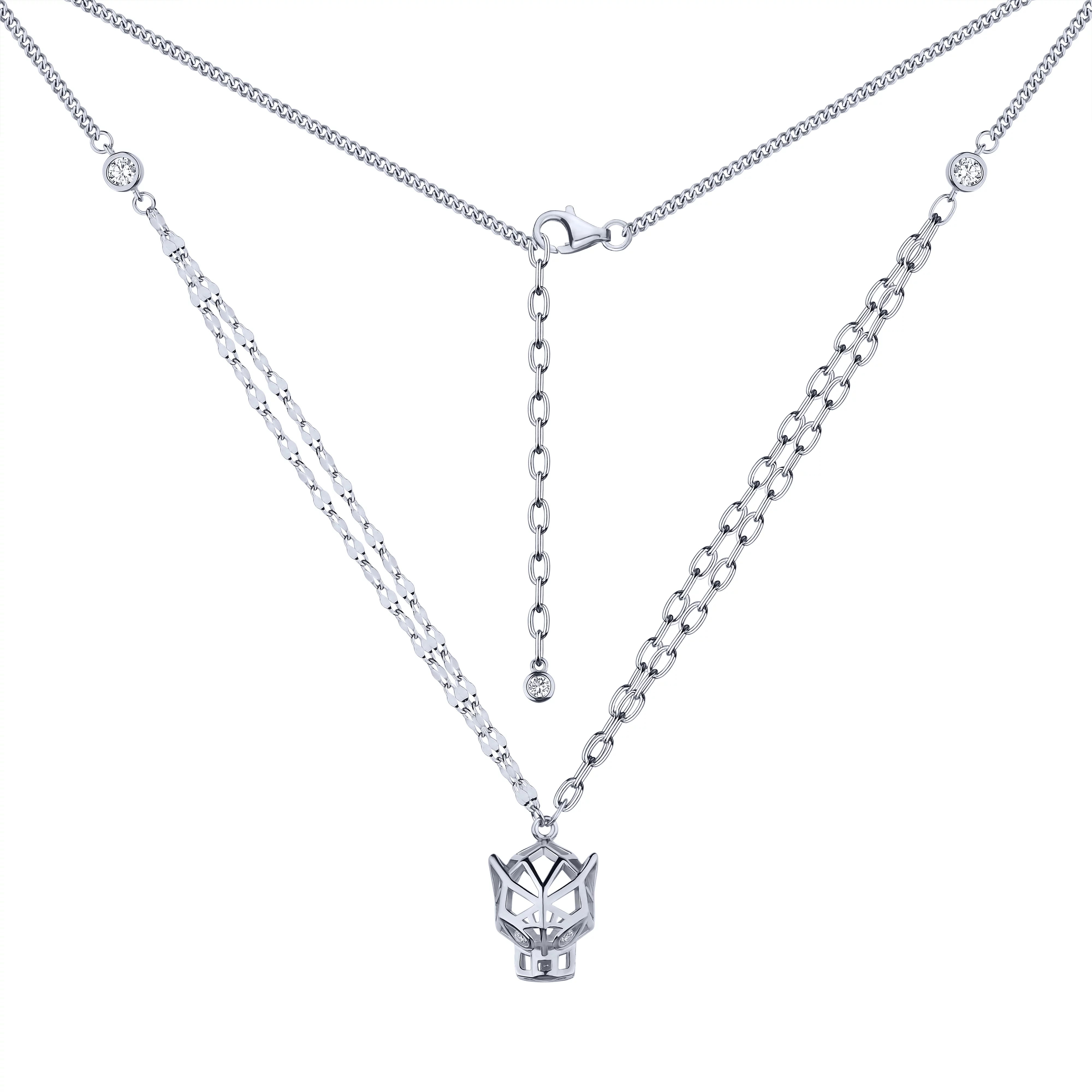 Стильная цепочка с подвесом "Пантера" в комбинированном золте с якорным плетением и фианитами - 1954436