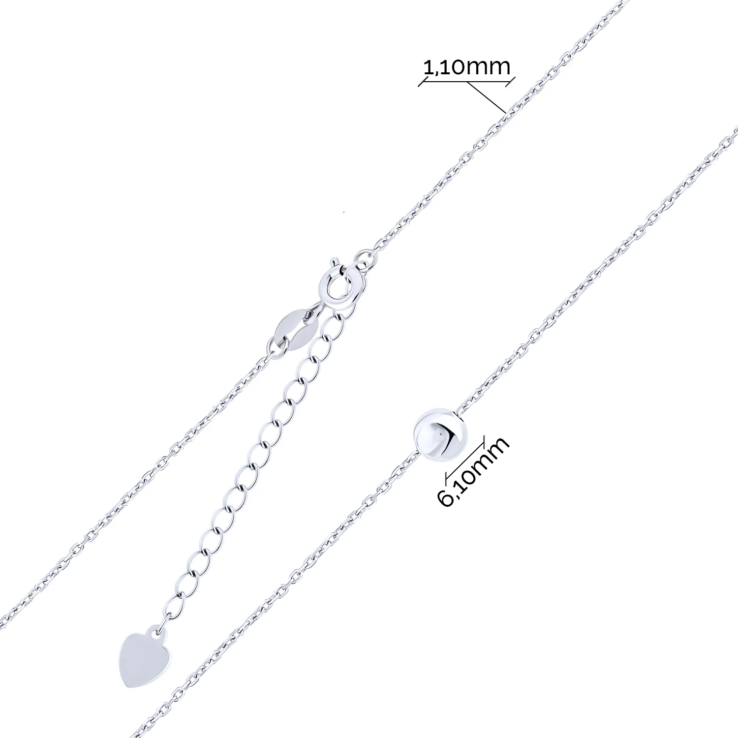 Цепочка с подвесом "Шарик" из серебра в якорном плетение - 2122353