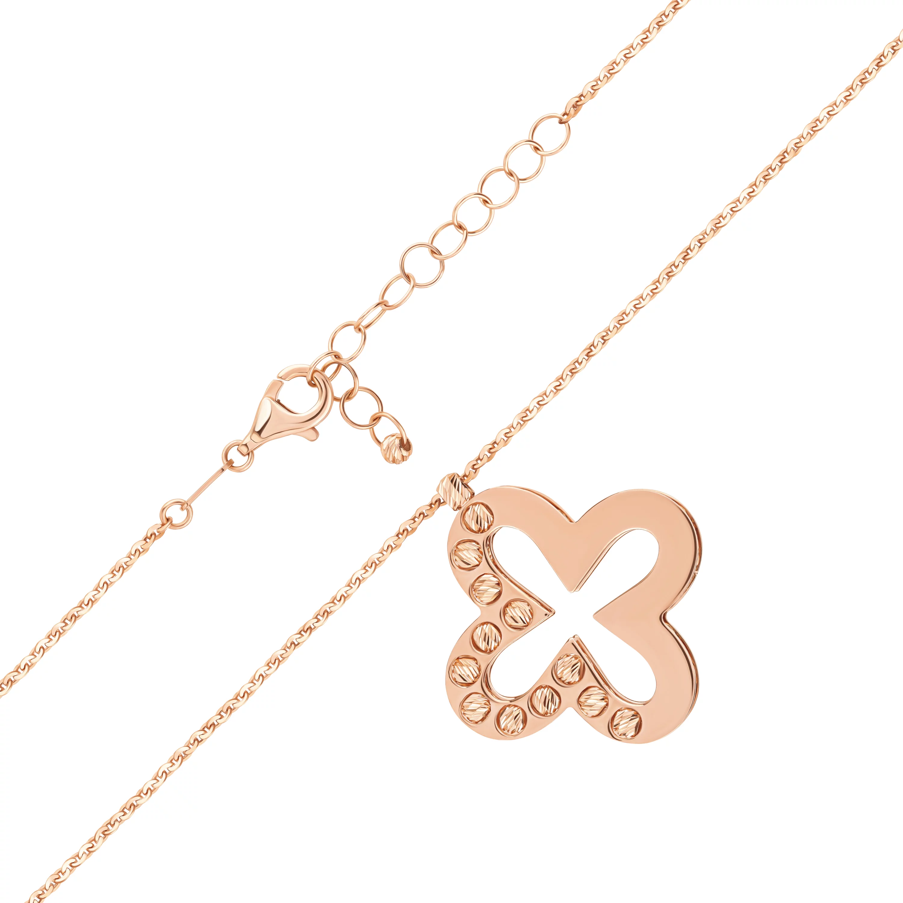 Элегантная цепочка с подвесом "Цветок" из желтого золота с фианитом и якорным плетением - 1951623