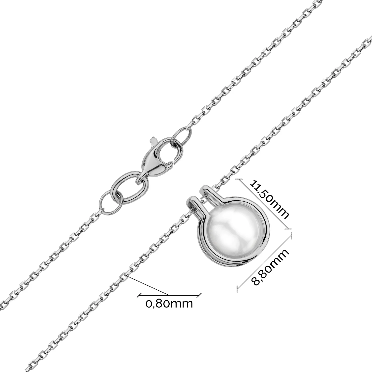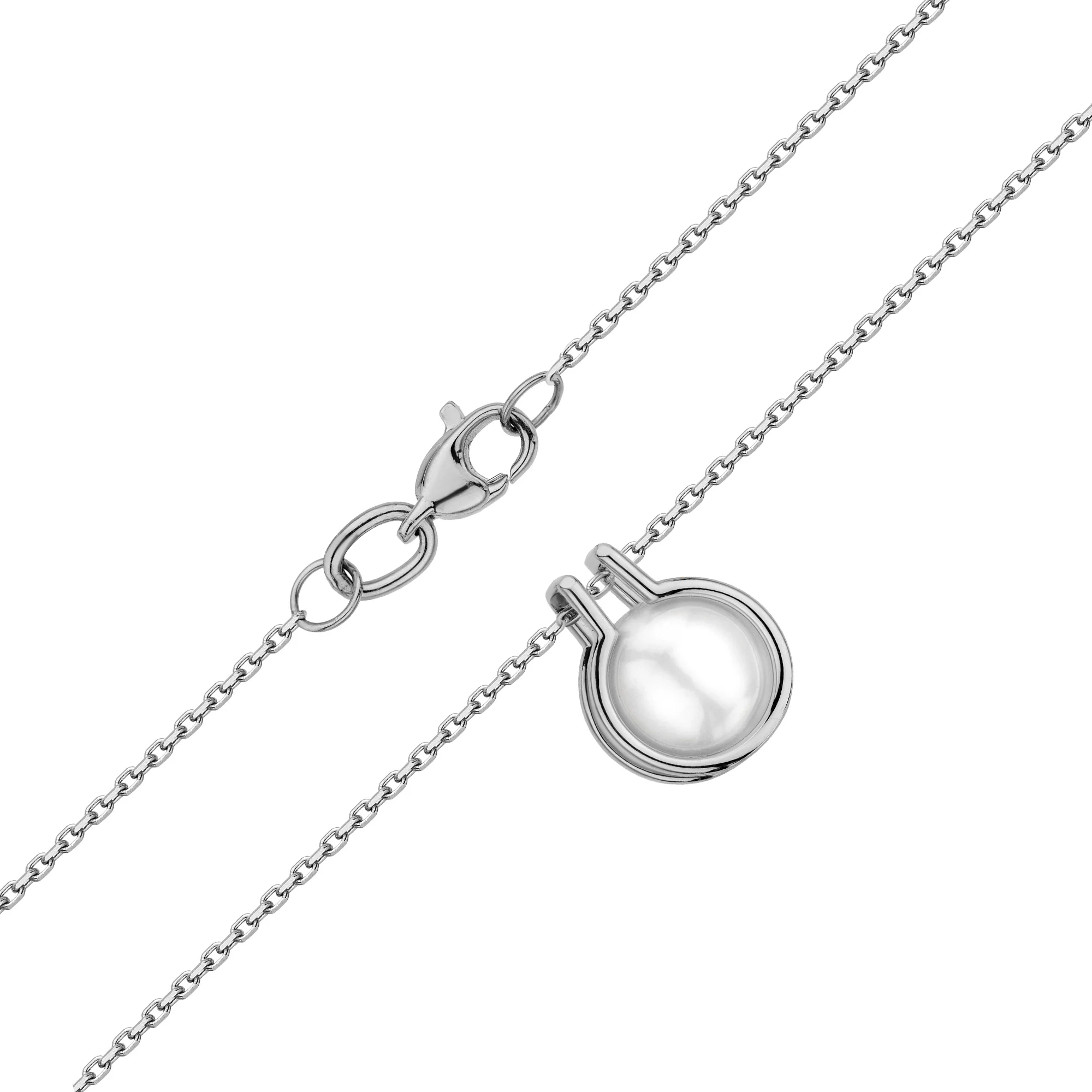 Цепочка с подвесом в белом золоте с жемчужиной и плетением якорь - 1984654