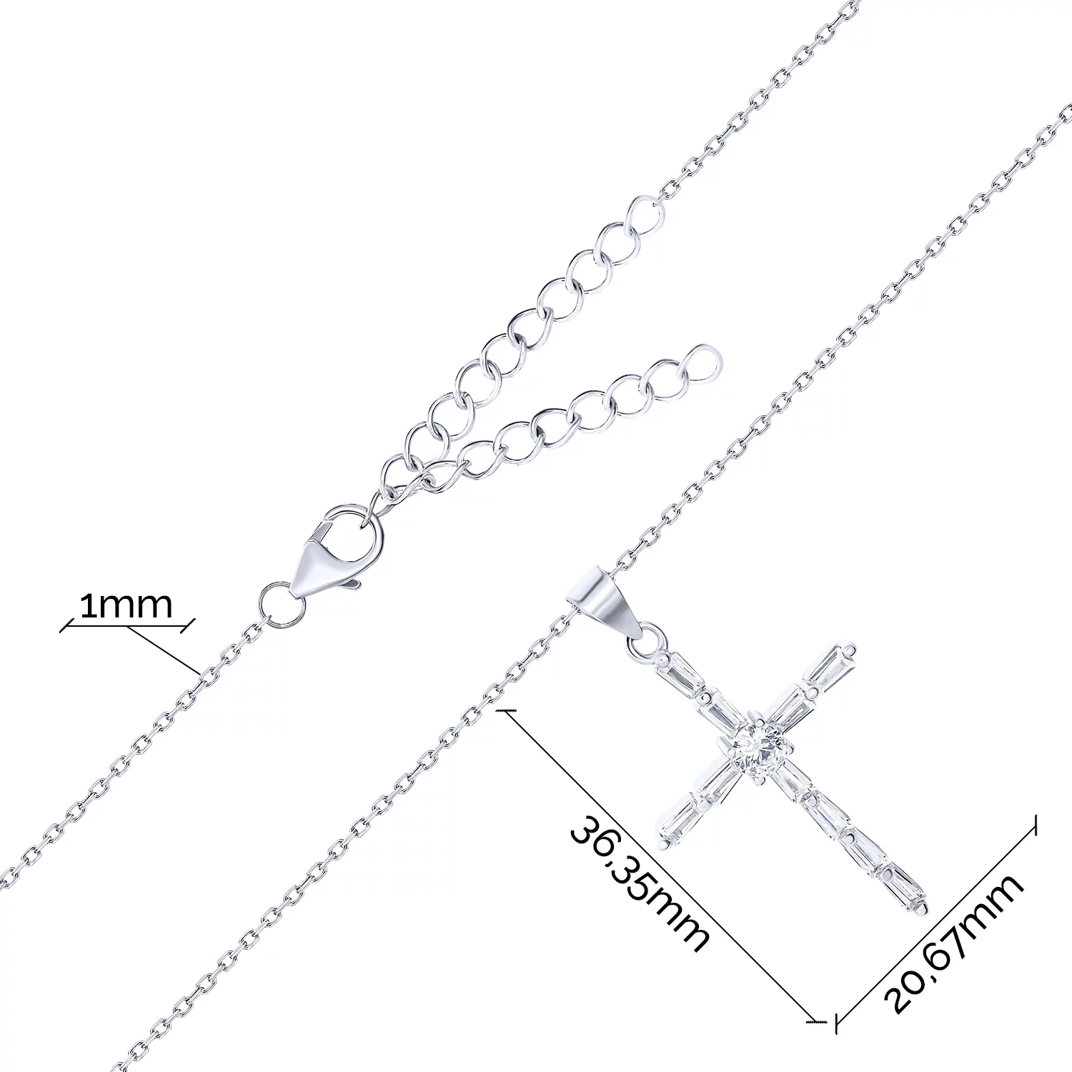 Цепочка с подвесом "Крестик" из красного золота с фианитами и якорным плетением - 1858826