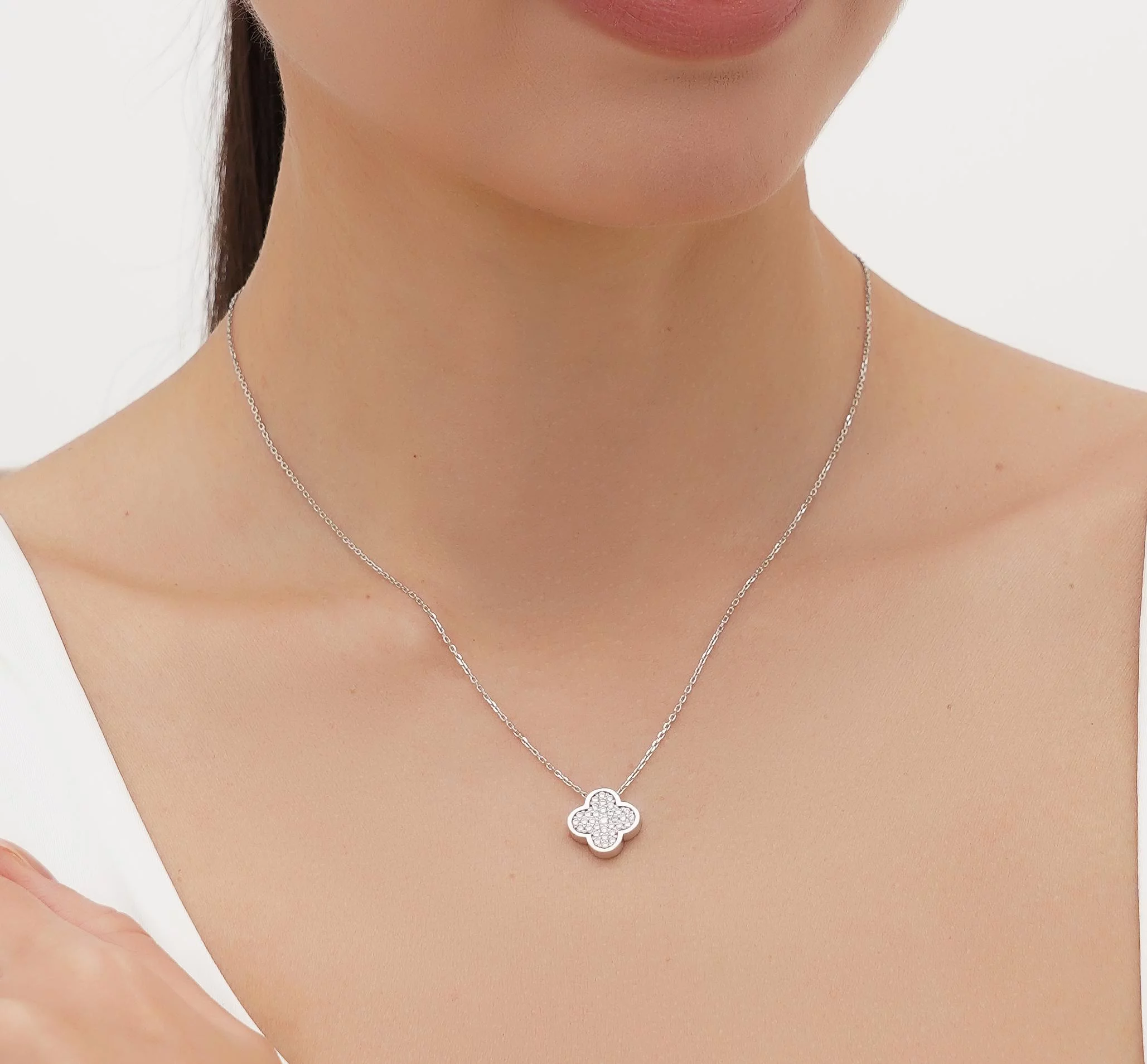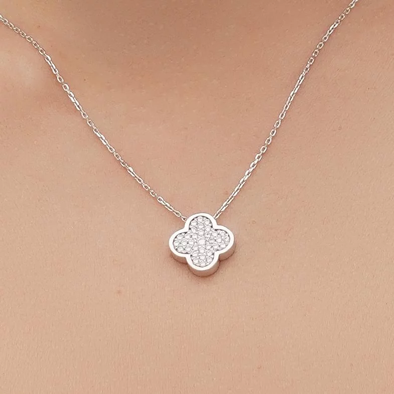 Модное колье с подвесом "Клевер" из красного золота с фианитами и якорным плетением - 1918231