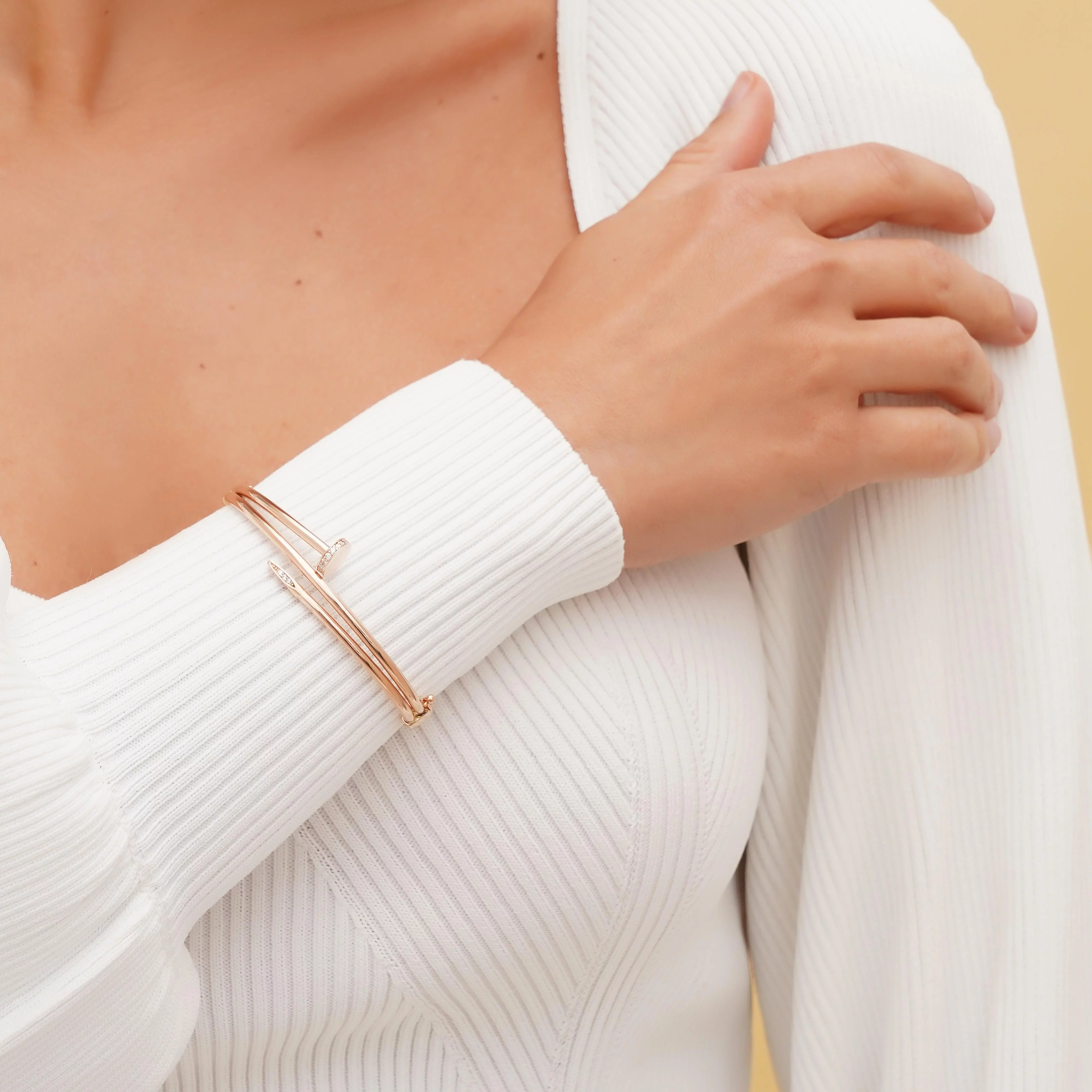 Жесткий браслет "Змея" из красного золота с россыпью фианитов - 1855986