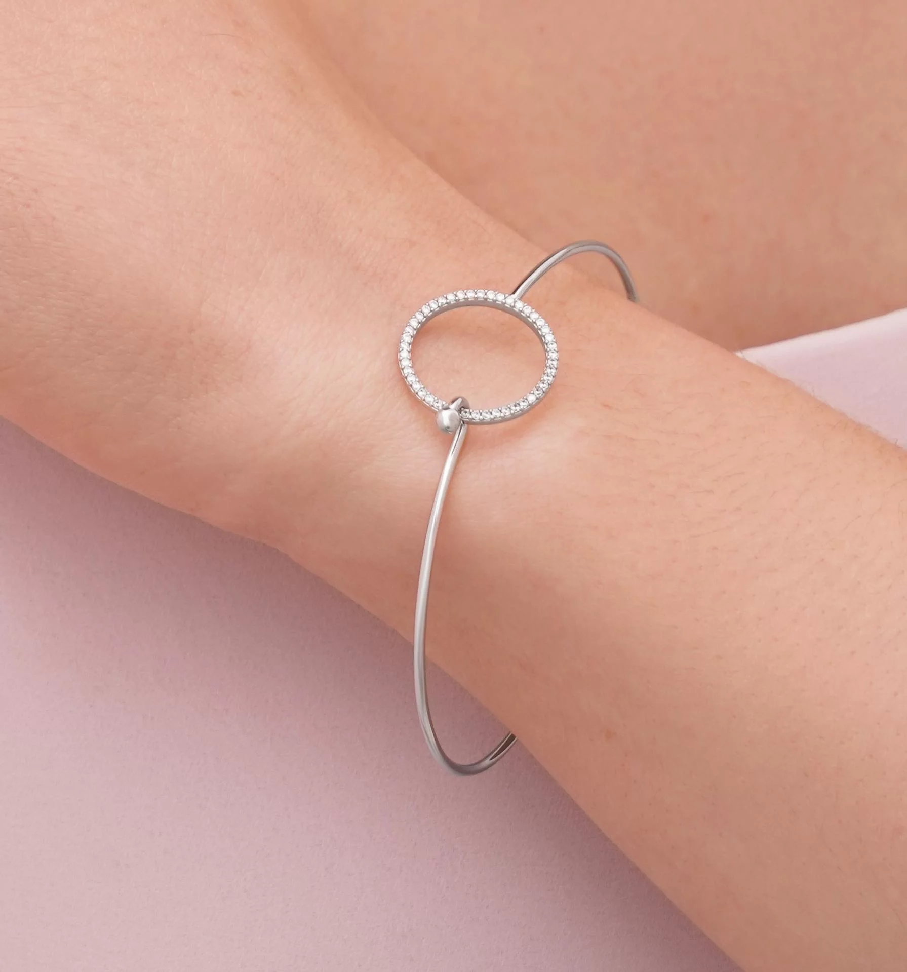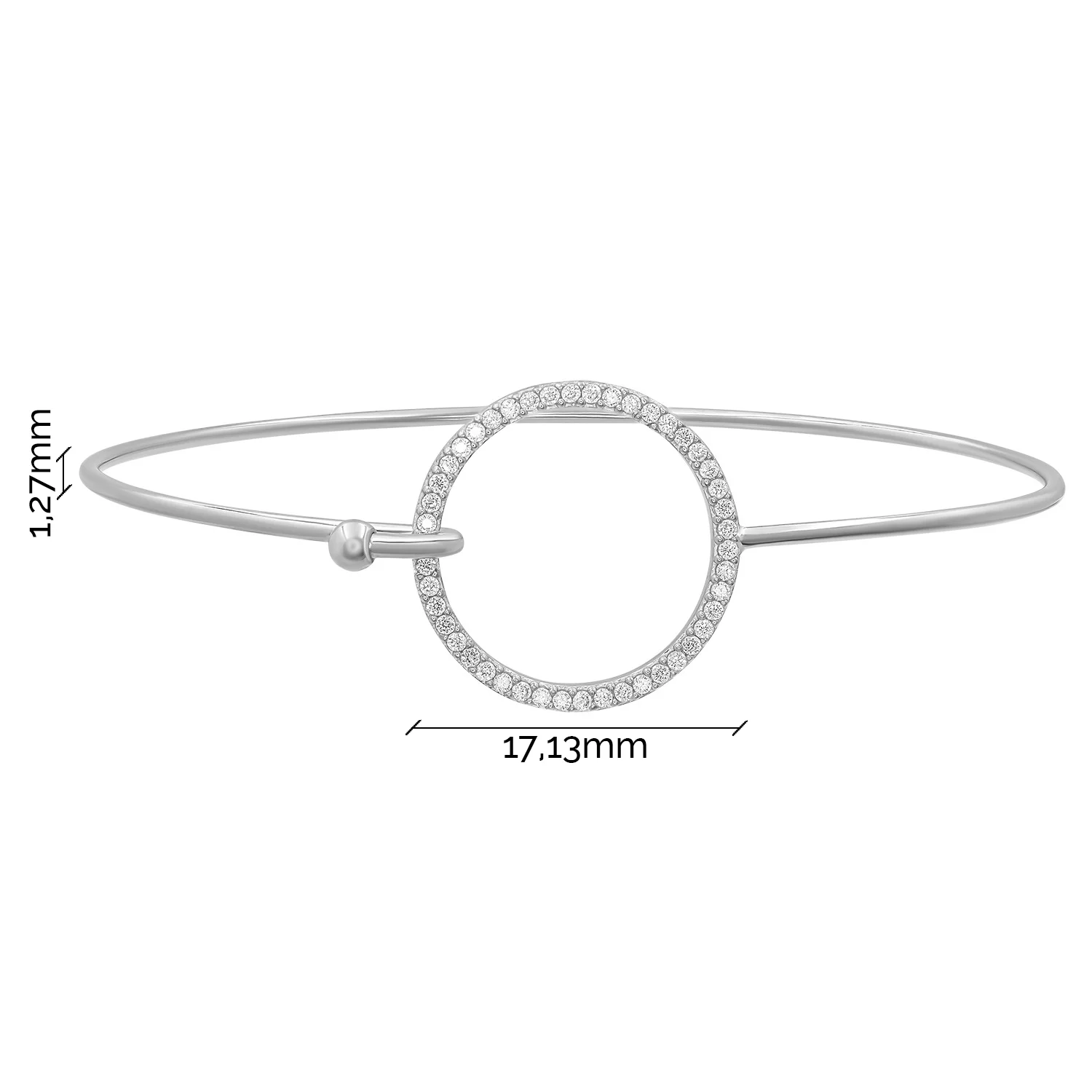 Современный жесткий браслет "Love" из белого золота с дорожкой из фианитов - 1859445