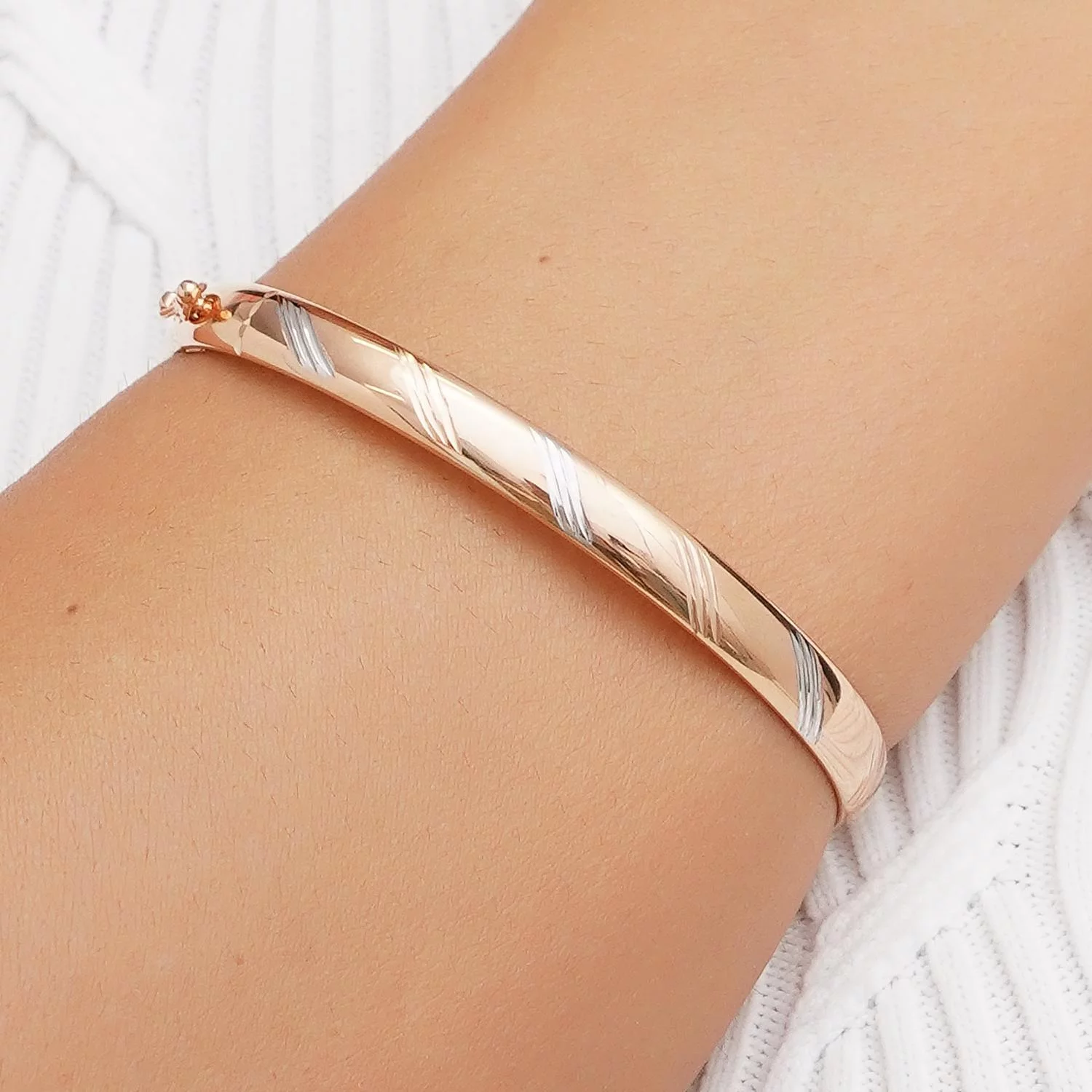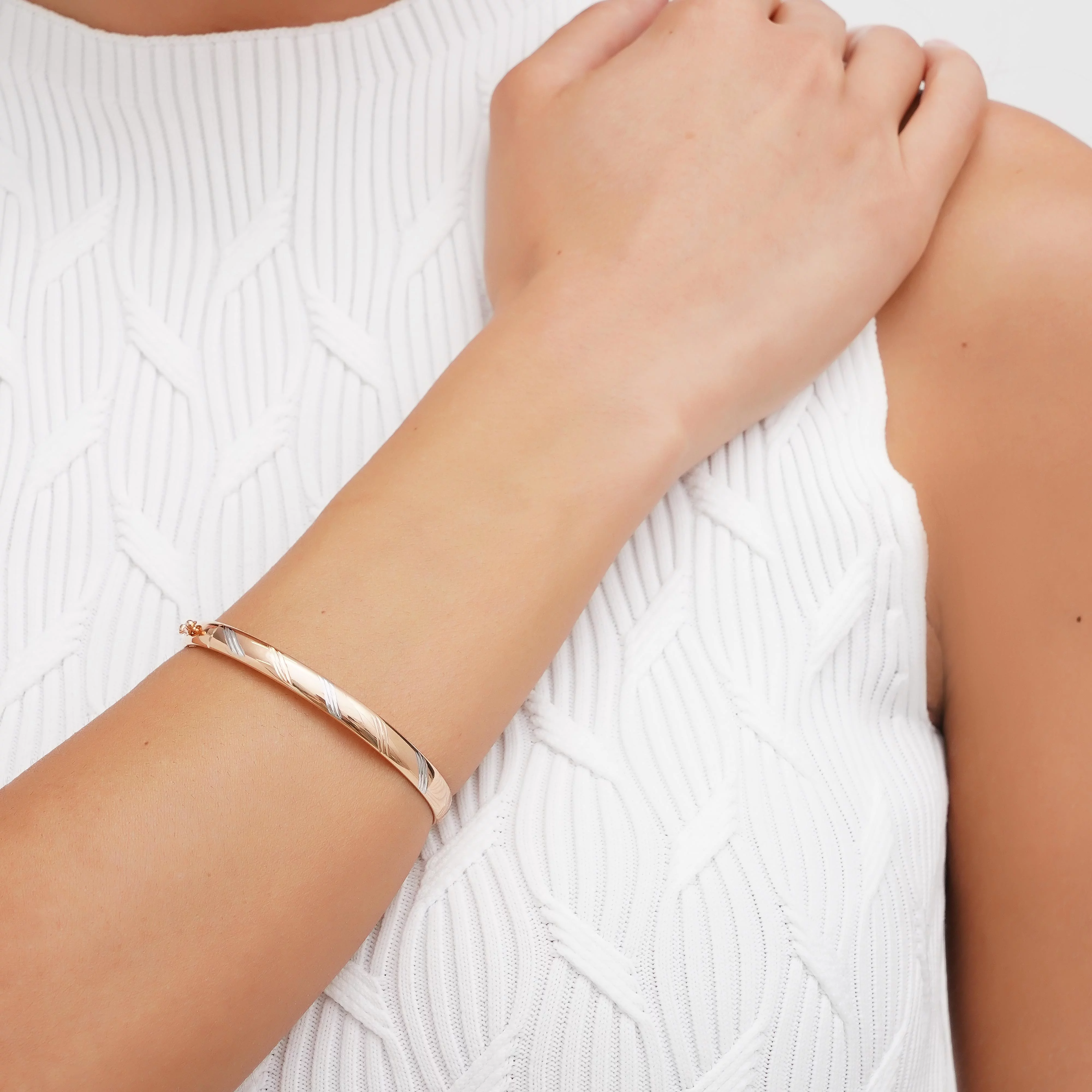 Жесткий браслет из комбинированного золота с алмазной гранью - 1810515