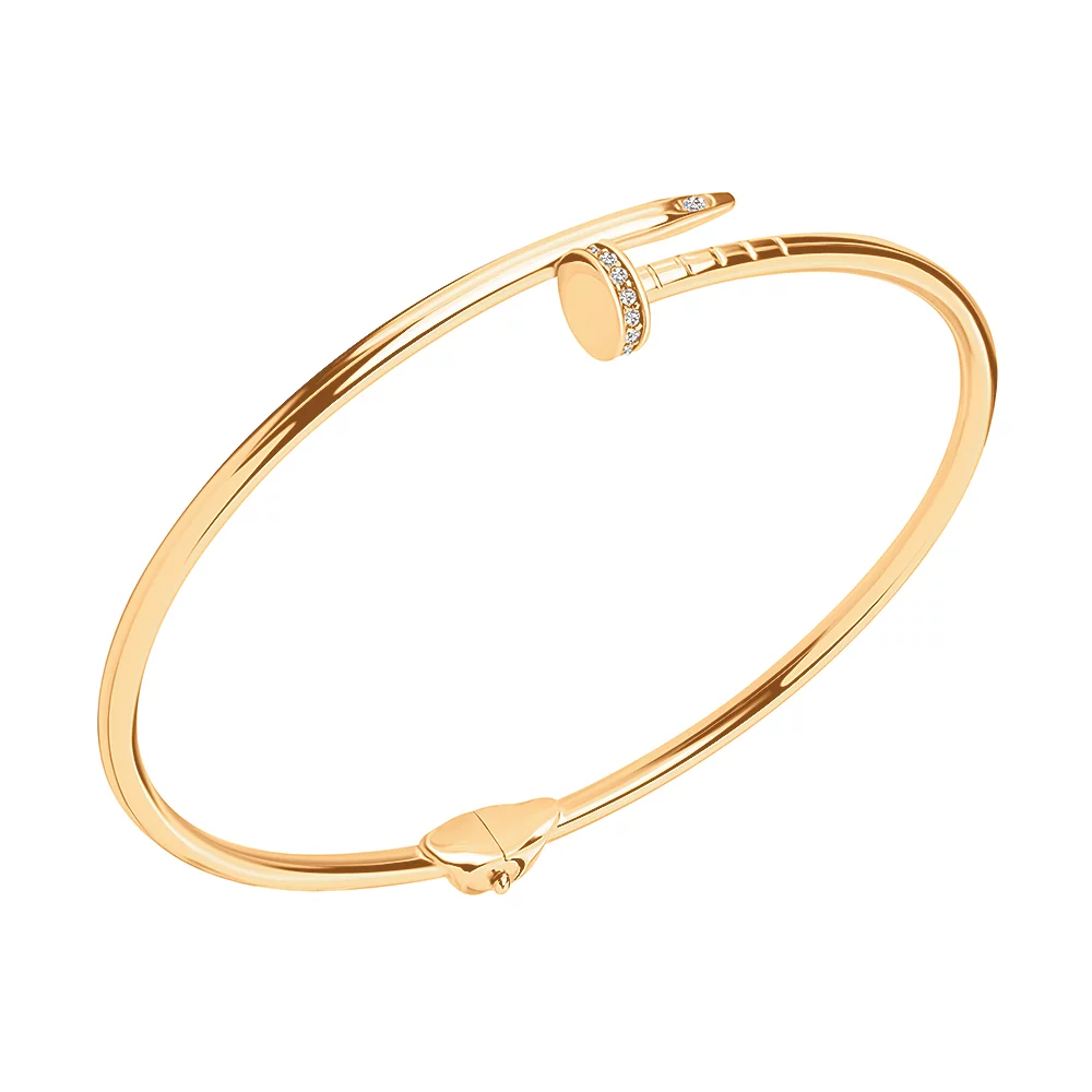 Жесткий браслет из красного золота с фианитом "Гвоздь" - 1478626