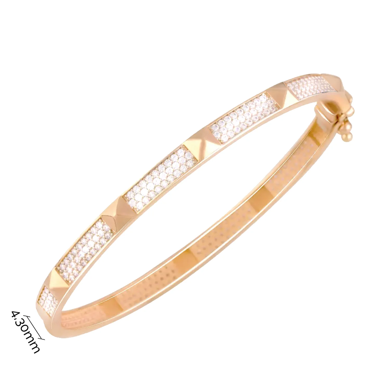 Жесткий массивный браслет из красного золота "Змея" с фианитами - 1747750